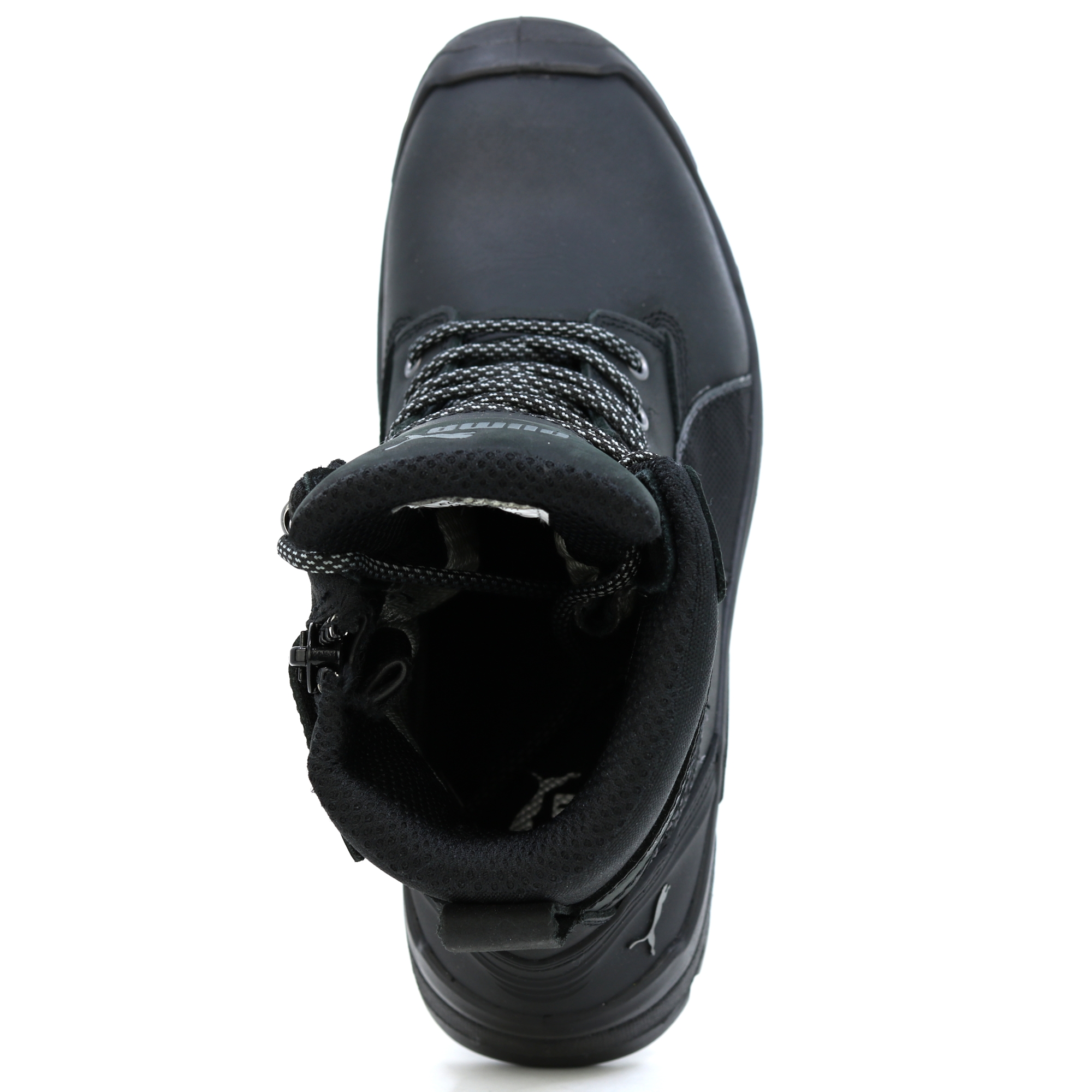 Klasyczny wygląd zewnętrzny połączony z efektywnym zabezpieczeniem. Nowe SCUFF CAPS EVO od PUMA SAFETY mają ochronną końcówkę wykonaną z włókien szklanych i funkcjonalną wyściółkę BreathActive. Cholewka wykonana z wysokiej jakości olejowanej skóry bydlęcej w ponadczasowym czarnym kolorze CONQUEST BLK CTX HIGH zapewnia modny wygląd do użytku komercyjnego. Jest również wyposażony w oddychającą i wodoodporną membranę COA.TEX. Gumowa podeszwa SCUFF CAPS EVO pozostaje odporna na ciepło do 300 ° C i jest antypoślizgowa nawet na nieutwardzonych powierzchniach. BUTY OCHRONNE EN ISO: 20345