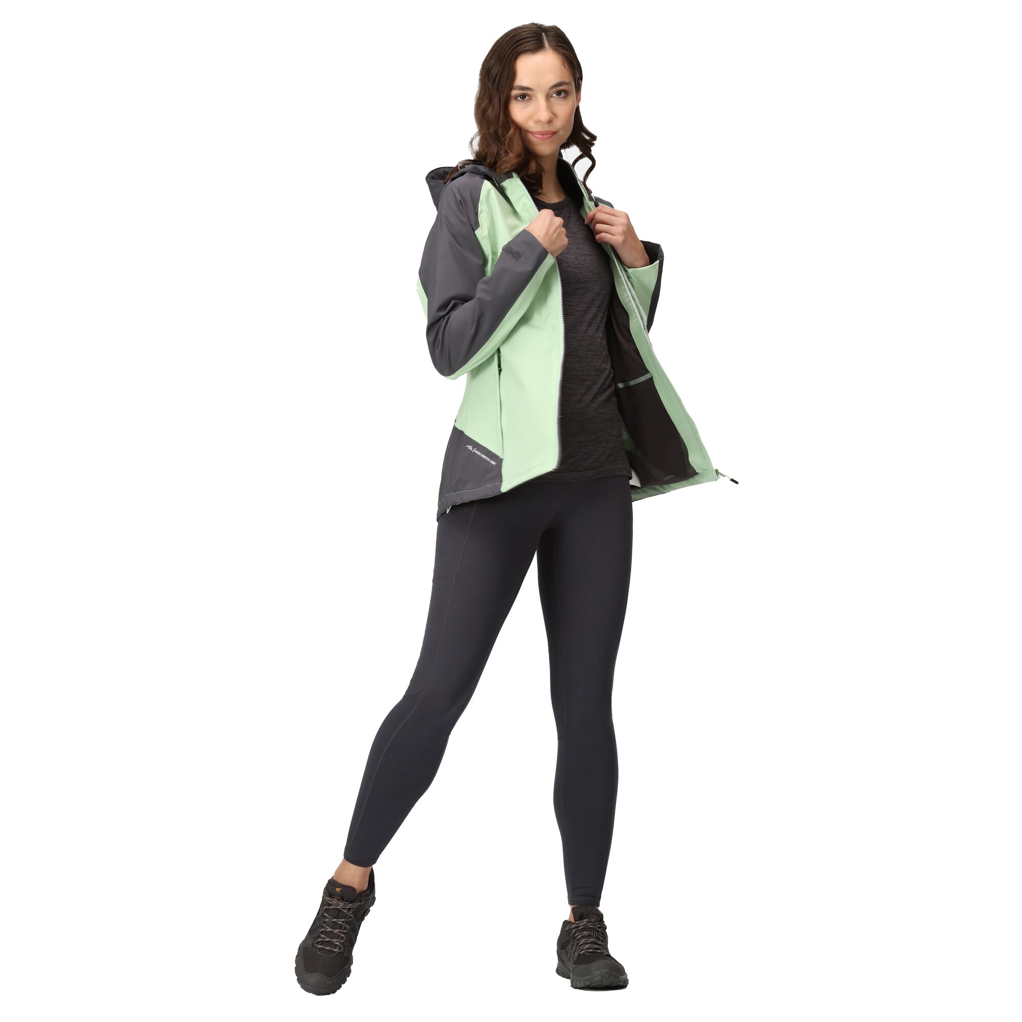 Kurtka damska Regatta Birchdale jest zapinana na zamek błyskawiczny na całej długości, a zamek główny pod szyją ma osłonę zapobiegającą zarysowaniu podbródka. Dodatkowo kurtka posiada stały kaptur z regulowanym daszkiem. Rękawy i dół kurtki są regulowane. Przegubowe rękawy zapewniają jeszcze większą swobodę ruchów, w pełni podklejone szwy zapobiegają przedostawaniu się wody do wnętrza kurtki. Podszewka składa się z siateczki, która zapobiega poceniu się i pomaga odprowadzać wilgoć ciała na powierzchnię materiału. Z przodu znajdują się dwie główne kieszenie zapinane na zamek, jedna kieszeń na piersi. Wewnątrz kurtki znajduje się mała kieszonka na drobne przedmioty, która również jest zapinana na zamek. Model ten został zaprojektowany z myślą o osobach aktywnych, lubiących aktywność na świeżym powietrzu niezależnie od pogody.
