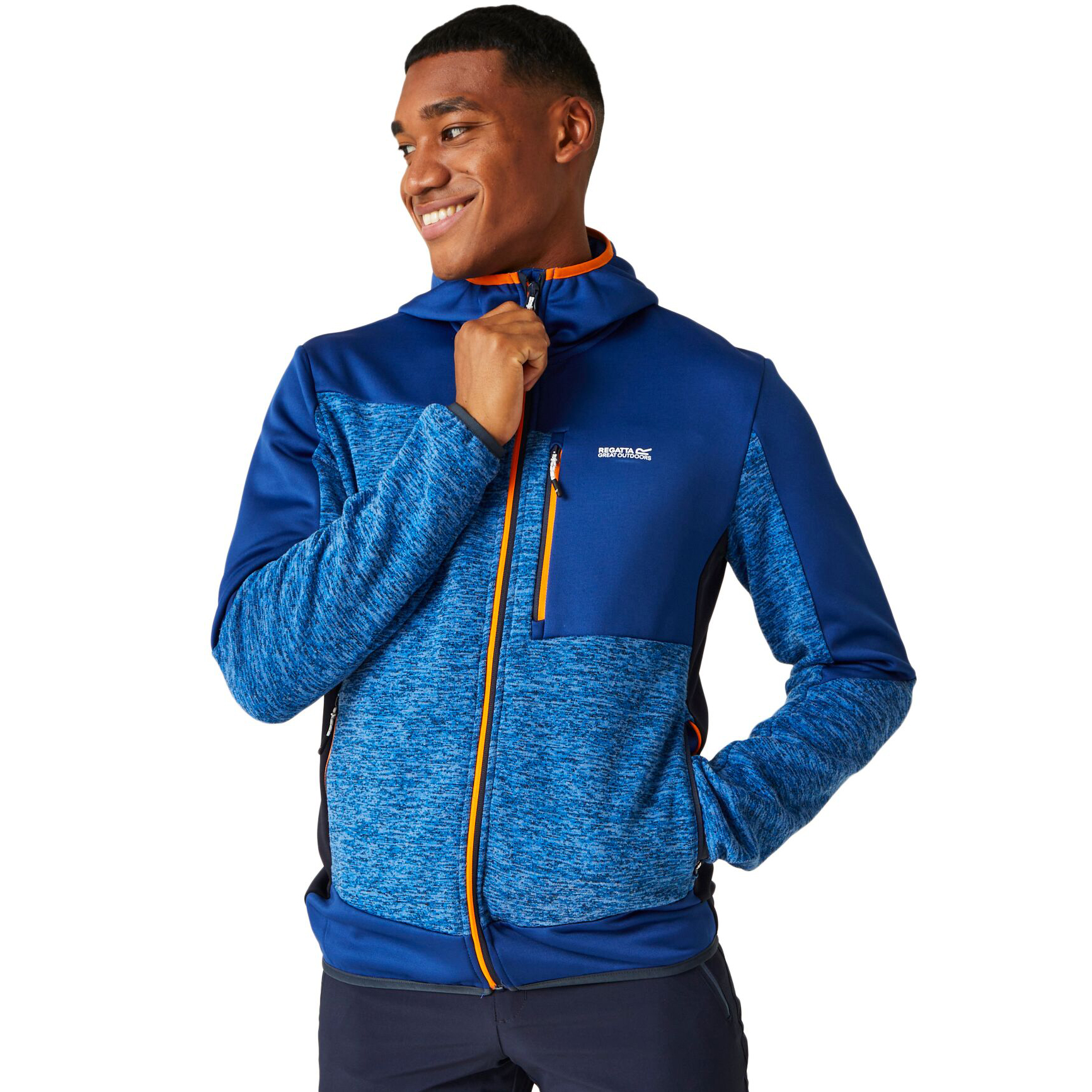 Męska bluza polarowa z kapturem Cadford VI firmy Regatta jest wykonana ze stylowej dzianiny marglowej i elastycznych, elastycznych paneli, dzięki czemu stanowi idealną warstwę środkową do noszenia w drodze. Dzięki ciepłemu i wygodnemu polarowi idealnie nadaje się na spacery i wycieczki na łono natury. Efekt marglowej dzianiny nadaje mu stylu. W chłodniejszym klimacie możesz nosić ten polar pod kurtką bez nieporęcznych części. Elastyczne wykończenia przy mankietach, kapturze i u dołu zapobiegają przedostawaniu się wilgoci. Skład materiału: 85% Poliester, 13% Wiskoza/sztuczny jedwab, 2% Elastan