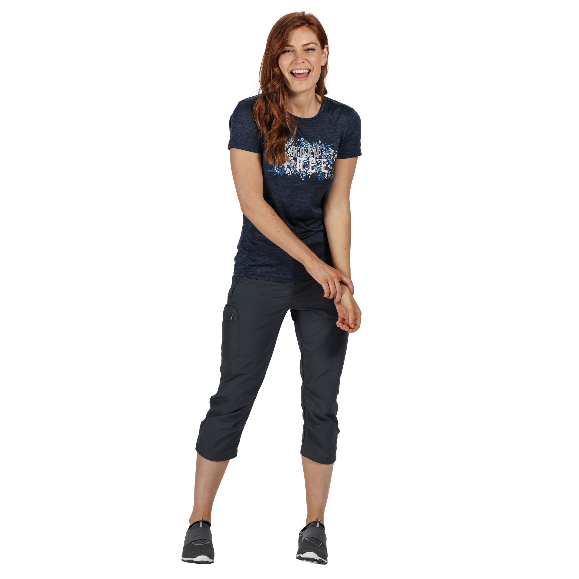 Dámské 3/4 kalhoty Regatta Chaska Capri II mají čistý design a stylový střih, můžete je tak využít jak na outdoorové aktivity tak běžné nošení. Jsou vyrobeny z odolného materiálu s povrchovou vodoodpudivou úpravu DWR (Durable Water Resistance) a ochranou proti UV záření 40+ UPF. Tkanina je také příjemná na dotek a je rychleschnoucí. Kalhoty sbalíte do malých rozměrů a díky nemačkavému materiálu se nemusíte bát, že by po vybalení byly zmuchlané. Pas je částečně elastický a vybaven poutky na opasek. K dispozici jsou 2 přední a 2 zadní. Konce nohavic lze nastavit stahovadlem.