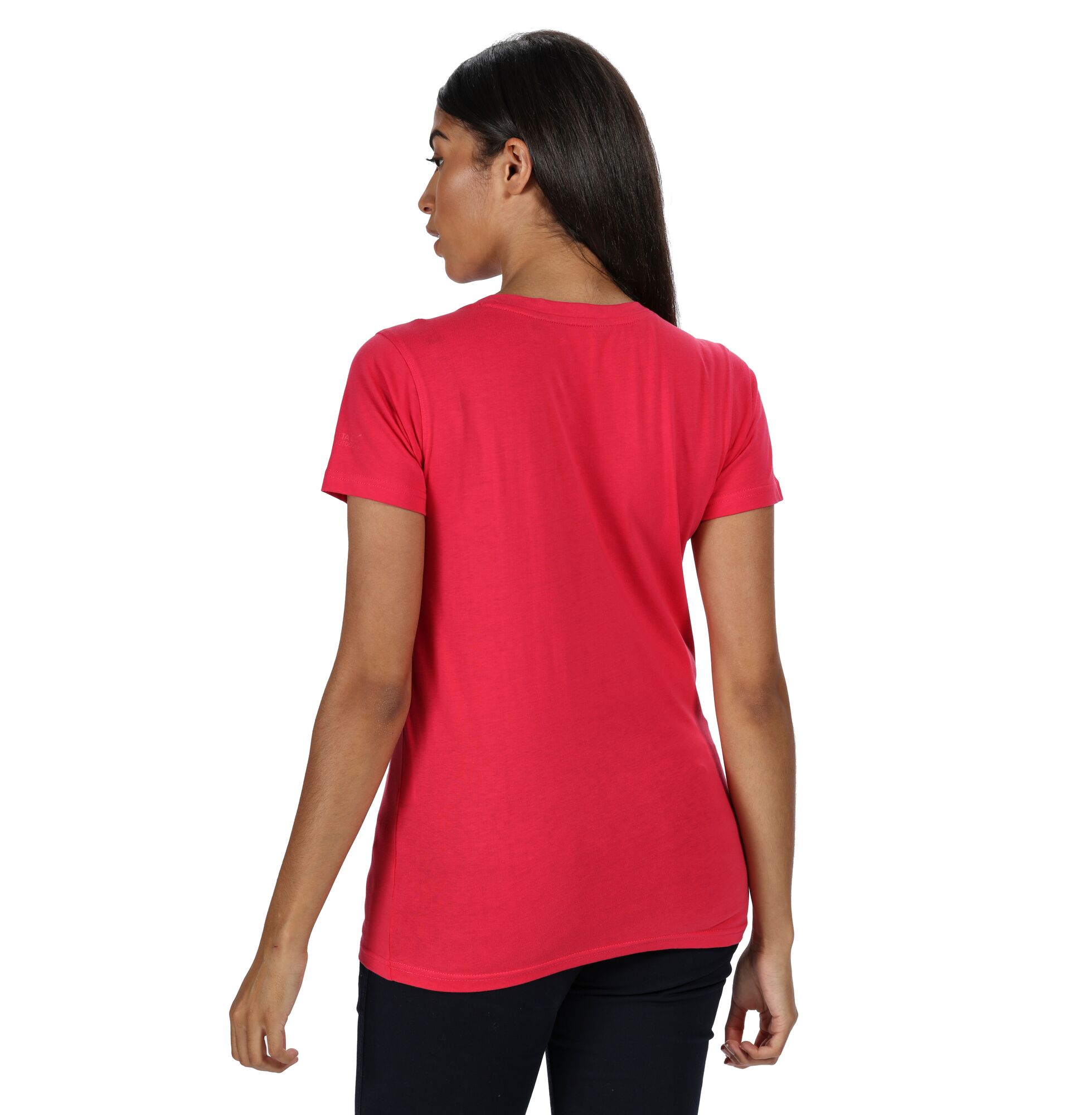 Dámské tričko s krátkým rukávem Regatta Filandra IV. Technologie Coolweave s chladícím účinkem. Bavlněná vlákna mají zcela přirozený chladicí účinek přímo na kůži. Potisk na přední straně. Materiál: 100% bavlna.