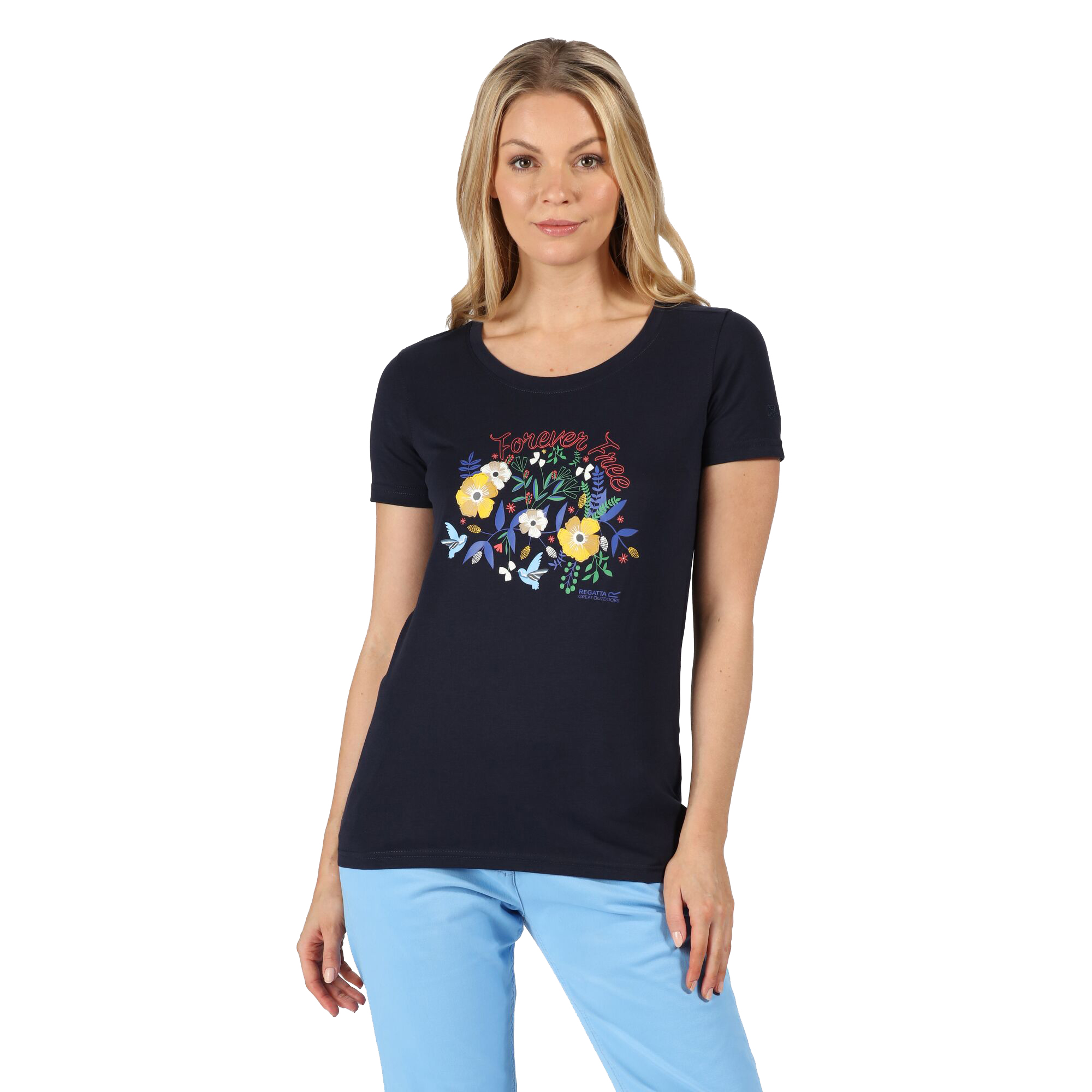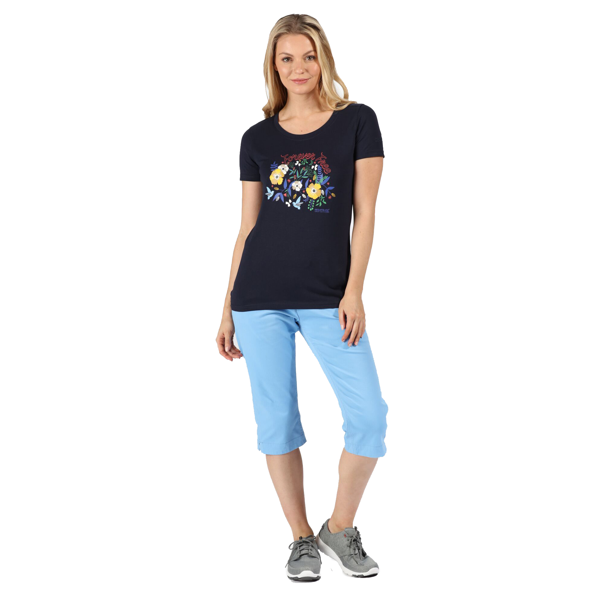 Dámské tričko s krátkým rukávem Regatta Filandra IV. Technologie Coolweave s chladícím účinkem. Bavlněná vlákna mají zcela přirozený chladicí účinek přímo na kůži. Potisk na přední straně. Materiál: 100% bavlna.