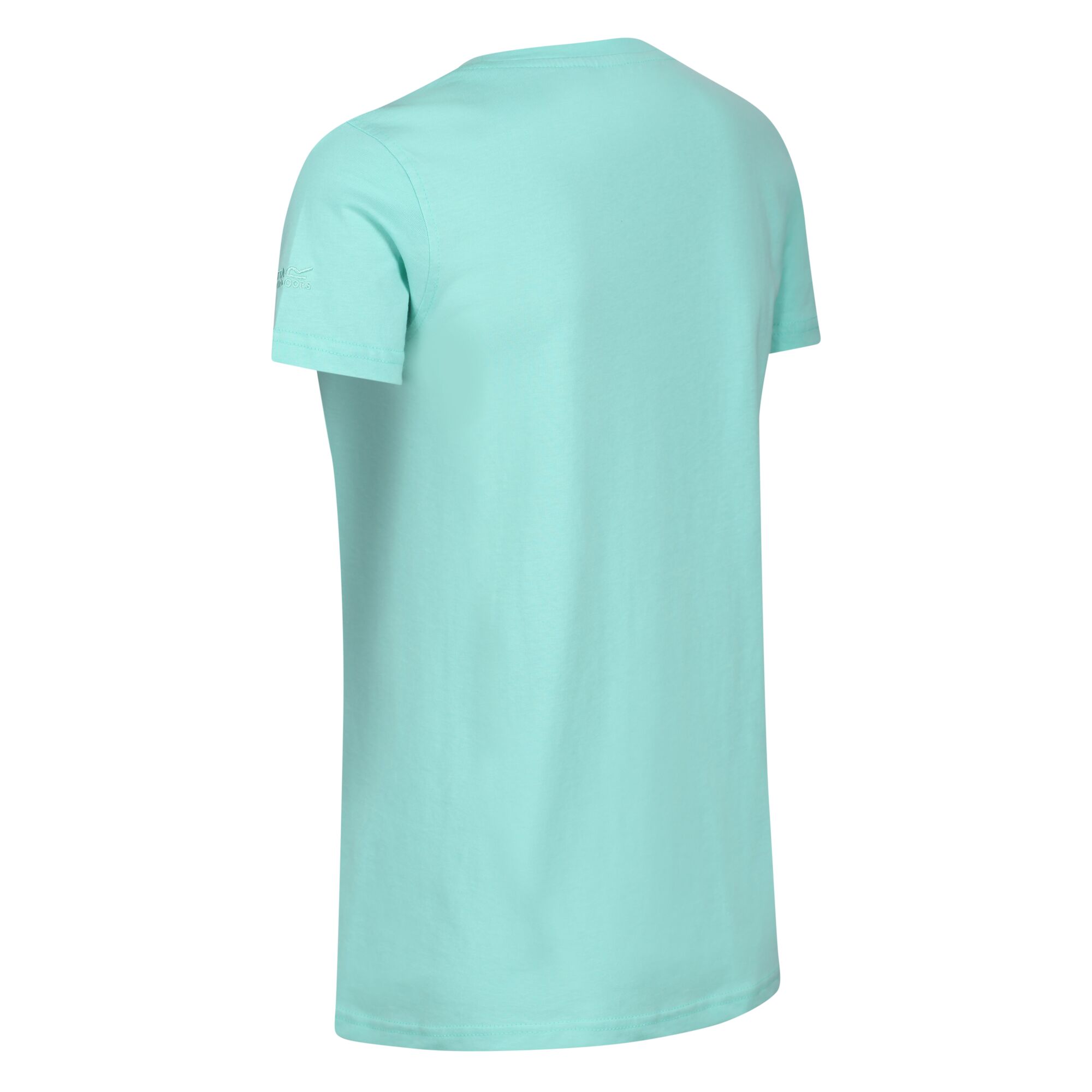 Koszulka damska z krótkim rękawem Regatta Filandra III. Technologia Coolweave z efektem chłodzenia. Włókna bawełniane mają całkowicie naturalny efekt chłodzący bezpośrednio na skórze. Nadruk z przodu. Materiał: 100% bawełna.