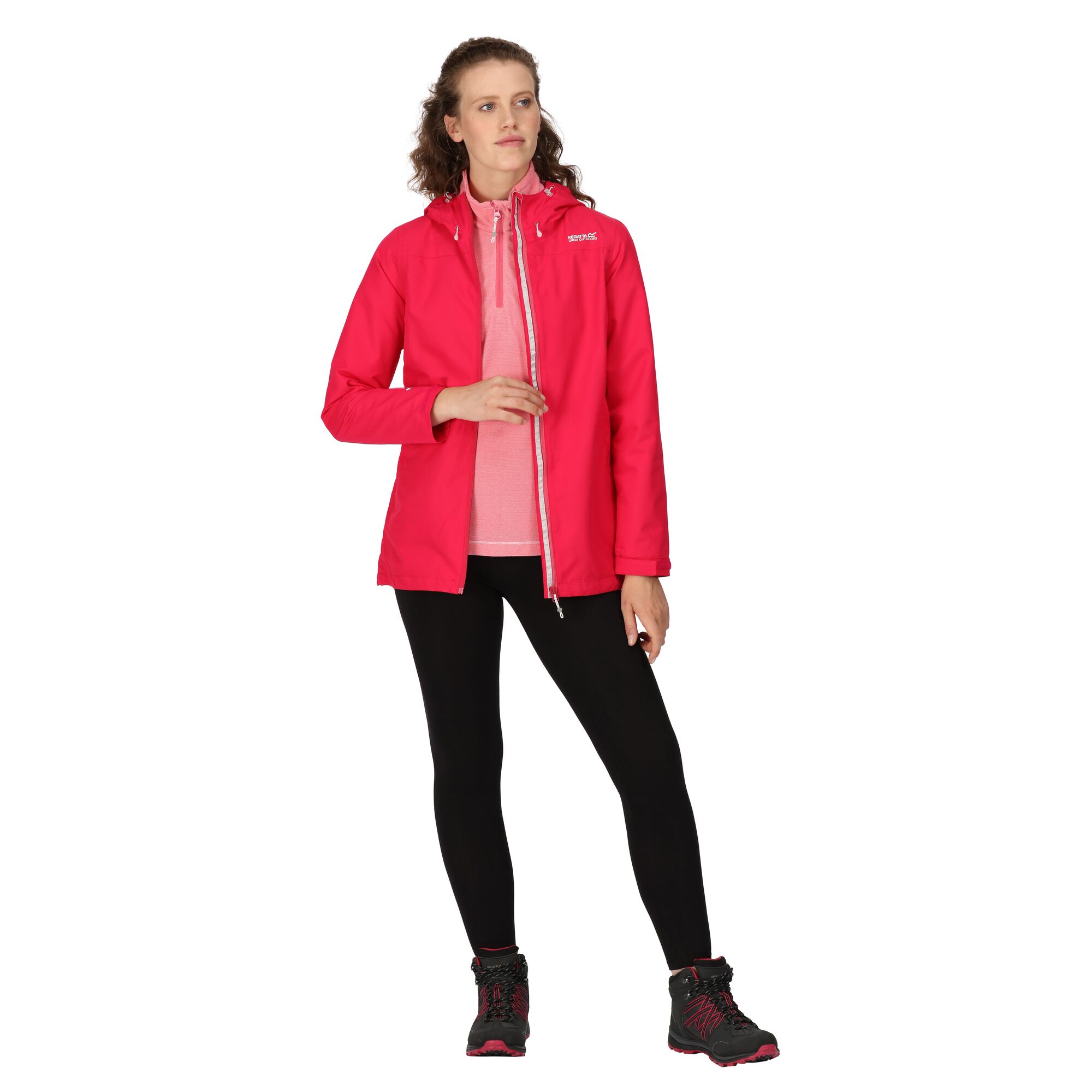 Damska kurtka techniczna Hamara III firmy Regatta ze sprawdzonymi technologiami na wszystkie Twoje przygody. Kurtka wykonana jest z lekko teksturowanej tkaniny poliamidowej Isotex 5000 z wykończeniem DWR i całkowicie podklejonymi szwami dla doskonałej ochrony przed deszczem. Wysokiej jakości kaptur z daszkiem z technicznego drutu i dwukierunkową regulacją zapewnia optymalną widoczność, a wewnętrzna klapa i osłona podbródka zapobiegają przedostawaniu się wody. Dla zwiększenia komfortu termicznego zastosowano miękką siateczkową podszewkę z nadrukiem. Kurtka posiada również 2 dolne kieszenie zapinane na zamek, regulowane mankiety i regulowany dół ze sznurkiem. Ta opływowa kurtka do chodzenia wygodnie przesuwa się po warstwach, umożliwiając noszenie przez cały rok, łącząc przycięty krój z ochroną przed warunkami atmosferycznymi.
