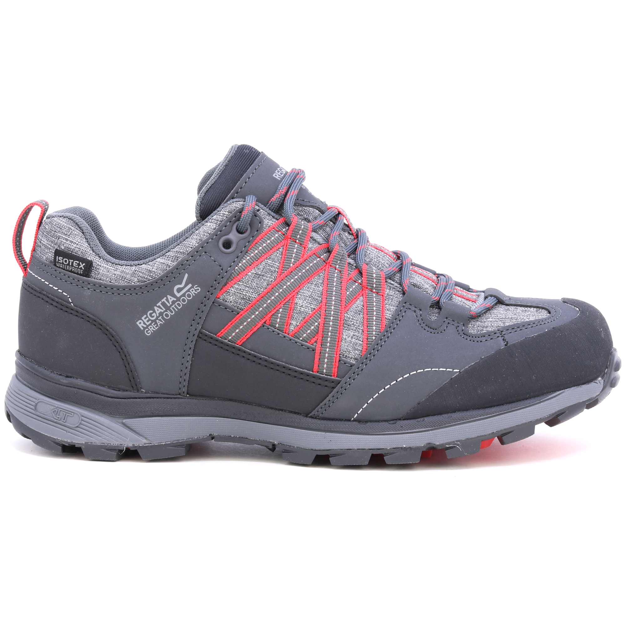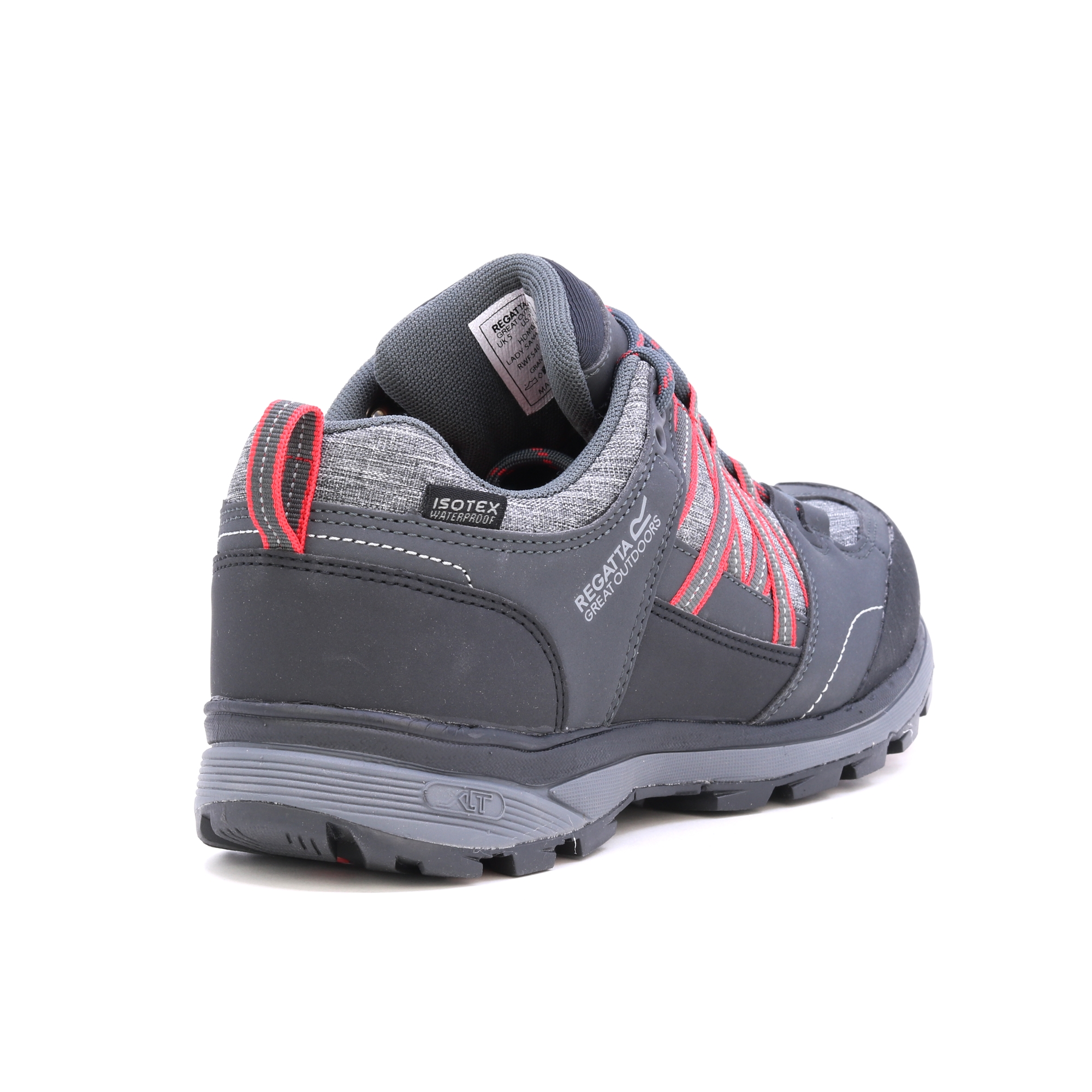 Niskie buty turystyczne Regatta Samaris są wykonane z wytrzymałej siatki z dodatkową przestrzenią wokół palców, aby umożliwić naturalny ruch podczas wspinaczki i nierównego terenu. Technologia Hydropel skutecznie odprowadza wodę i błoto, a wodoodporna, oddychająca membrana Isotex utrzymuje stopy w suchości. Podeszwa XLT o niezawodnym działaniu, odporna na warunki atmosferyczne, zapewniająca długotrwały komfort w górach. Technologia podeszwy XLT zmniejsza wagę i zapewnia doskonałą przyczepność i amortyzację na szlaku i poza nim.