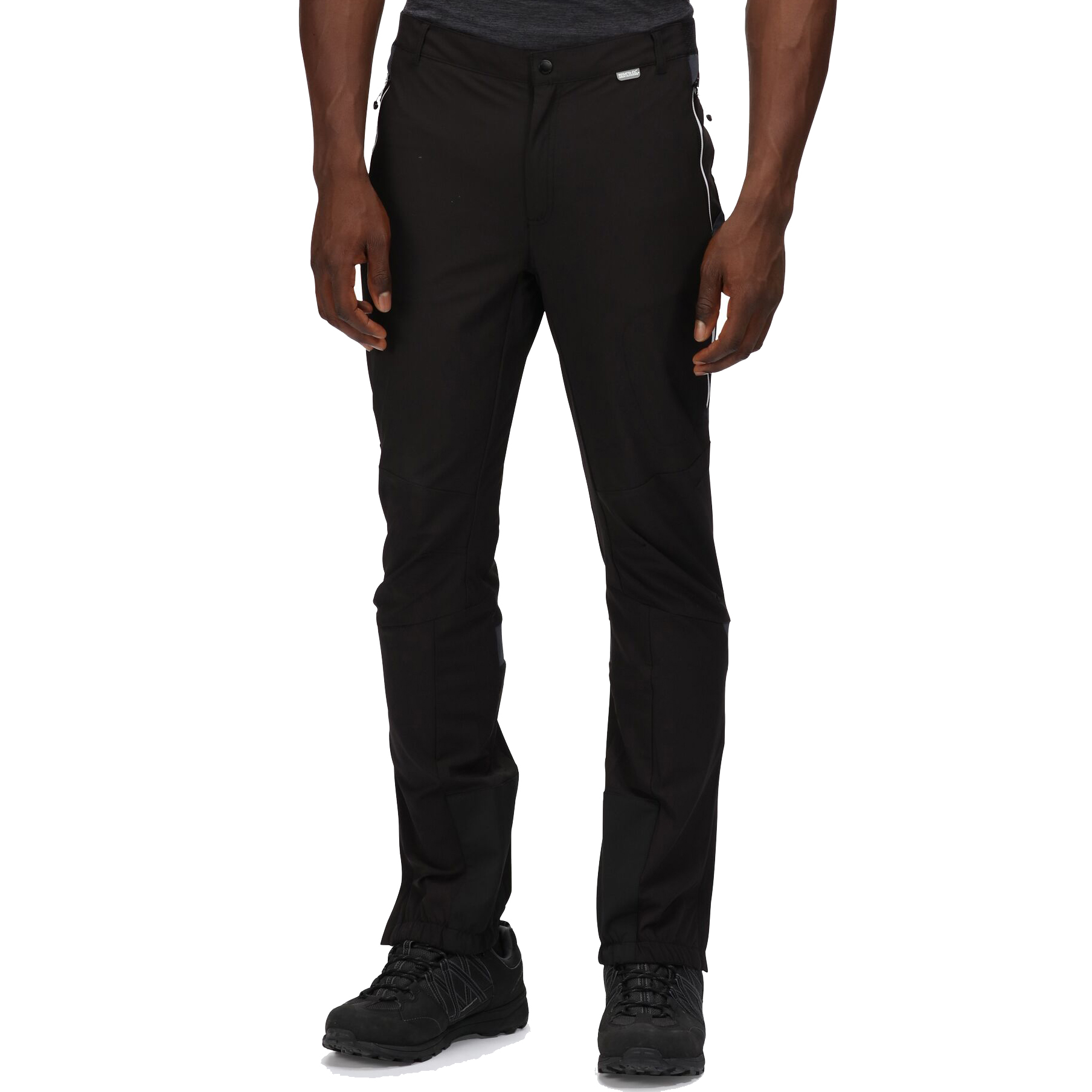 Męskie spodnie rozciągliwe Regatta Mountain Trs III zapewniają doskonałą trwałość, mobilność i ochronę przed warunkami atmosferycznymi. Te spodnie są wykonane z szybkoschnącego, elastycznego materiału z wykończeniem DWR i przetarciami Cordury w obszarach narażonych na zużycie. Mają smukły, ergonomiczny kształt i przegub w kolanie, co zapewnia doskonałą mobilność. Pasek jest wycięty wyżej z tyłu, aby zapewnić pokrycie na długich dystansach, i jest częściowo elastyczny, aby zapewnić wygodne dopasowanie i swobodę ruchów. Zamki błyskawiczne z taśmą ułatwiającą ściąganie i dokładne dopasowanie do butów. Odblaskowe lamówki są również oczywistością. ISOFLEX - aktywny materiał rozciągliwy - 90% poliamid / 10% elastan