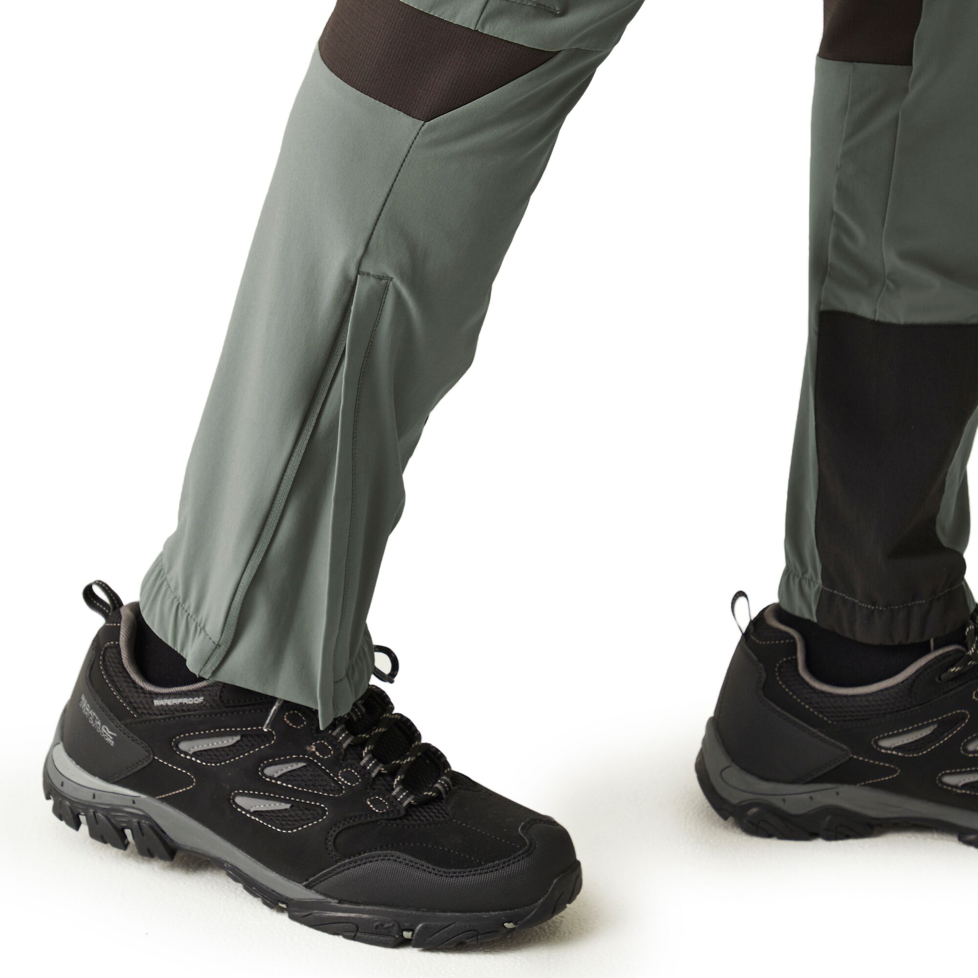 Męskie spodnie rozciągliwe Regatta Mountain Trs III zapewniają doskonałą trwałość, mobilność i ochronę przed warunkami atmosferycznymi. Te spodnie są wykonane z szybkoschnącego, elastycznego materiału z wykończeniem DWR i przetarciami Cordury w obszarach narażonych na zużycie. Mają smukły, ergonomiczny kształt i przegub w kolanie, co zapewnia doskonałą mobilność. Pasek jest wycięty wyżej z tyłu, aby zapewnić pokrycie na długich dystansach, i jest częściowo elastyczny, aby zapewnić wygodne dopasowanie i swobodę ruchów. Zamki błyskawiczne z taśmą ułatwiającą ściąganie i dokładne dopasowanie do butów. Odblaskowe lamówki są również oczywistością. ISOFLEX - aktywny materiał rozciągliwy - 90% poliamid / 10% elastan