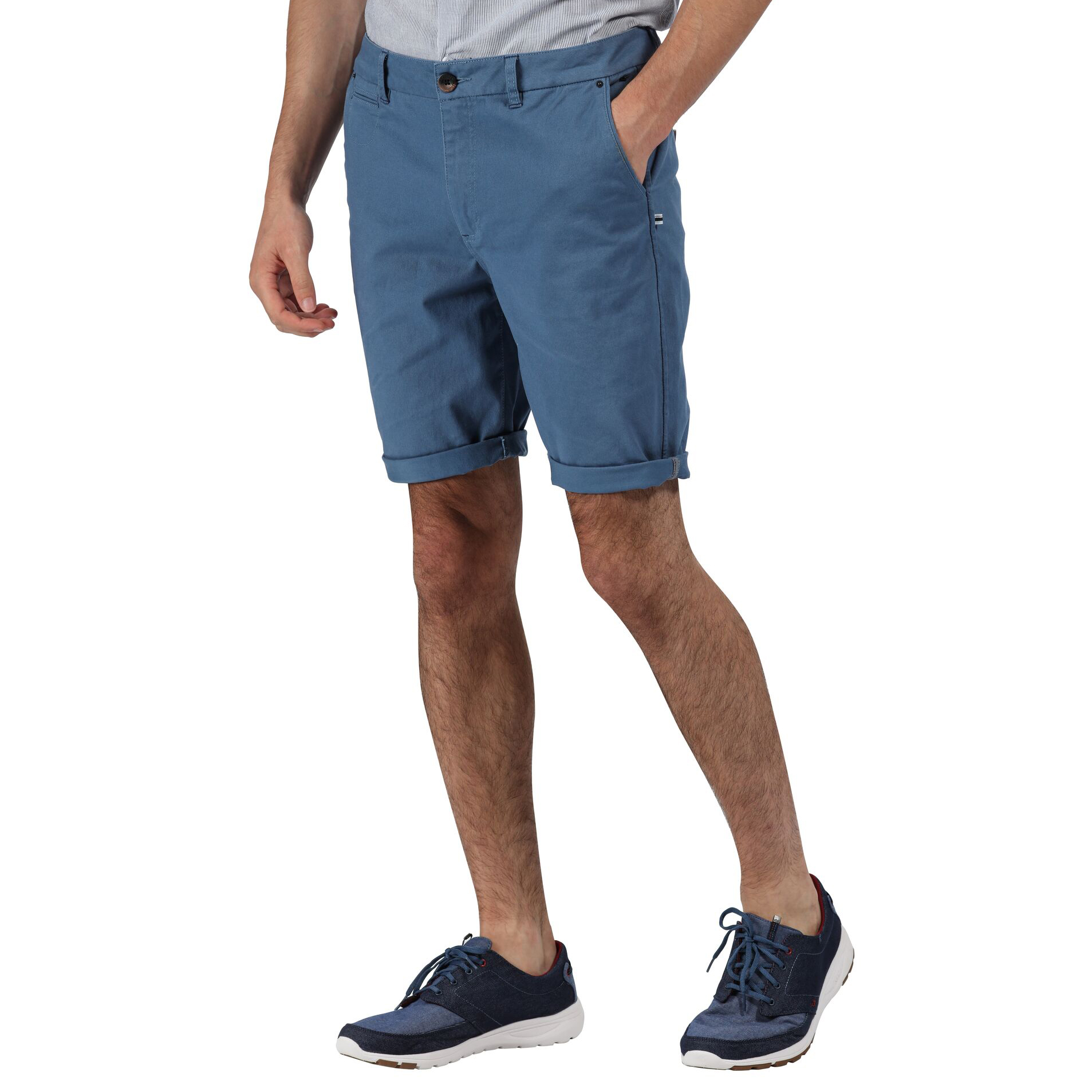 Męskie spodenki Regatta SALVATOR wykonane są z wygodnego, rozciągliwego, wytrzymałego materiału bawełnianego. Spodenki posiadają klasyczne zapięcie na guzik/zamek, szlufki na ewentualny pasek, dwie główne kieszenie z przodu, małą kieszonkę na zegarek. Z tyłu znajdują się dwie kieszenie na guziki. Spodnie zwężają się ku dołowi, długość za kolana, zmiękczenie materiału gwarantuje przyjemniejsze noszenie przez cały dzień. Ten model ma przejrzysty design i dużo miejsca do przechowywania, z którego na pewno będziesz korzystać przy każdej okazji. Materiał: 98% bawełna, 2% elastan