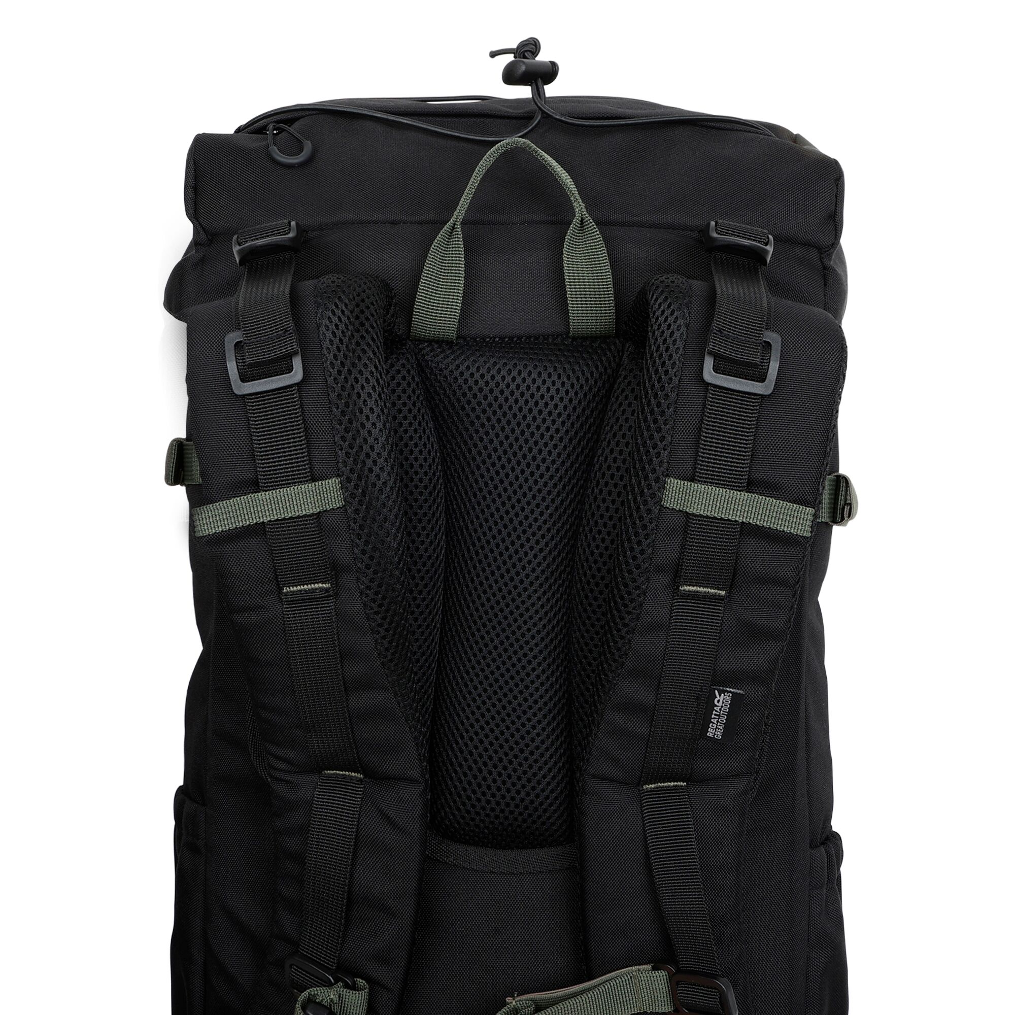 Wszechstronny plecak Regatta Survivor V o pojemności 35 litrów pomieści wszystko, czego potrzebujesz podczas pieszych wędrówek i innych outdoorowych przygód. Wykonany z wytrzymałej, hydrofobowej tkaniny, oferuje pojemną komorę główną z dostępem przez górną klapę wyposażoną w dużą kieszeń zapinaną na zamek. Komfort noszenia zapewniają miękkie, wyściełane szelki, regulowany pas biodrowy oraz pasek piersiowy z wbudowanym gwizdkiem bezpieczeństwa. Dobrze wyprofilowany, grubo wyściełany system nośny pokryty oddychającą siatką Air Mesh skutecznie odprowadza wilgoć i zwiększa wygodę użytkowania. Plecak posiada boczne kieszenie na bidon, wewnętrzny klips na klucze oraz przygotowanie pod bukłak na wodę. Elastyczny system bungee z przodu i na górze umożliwia troczenie dodatkowego sprzętu, boczne paski kompresyjne stabilizują ładunek, a zdejmowany pokrowiec przeciwdeszczowy chroni zawartość w trudnych warunkach pogodowych. Łatwe w obsłudze zamki, elementy odblaskowe oraz praktyczny uchwyt do przenoszenia sprawiają, że Survivor V 35L to niezawodny plecak wykonany z wykorzystaniem materiałów z recyklingu.