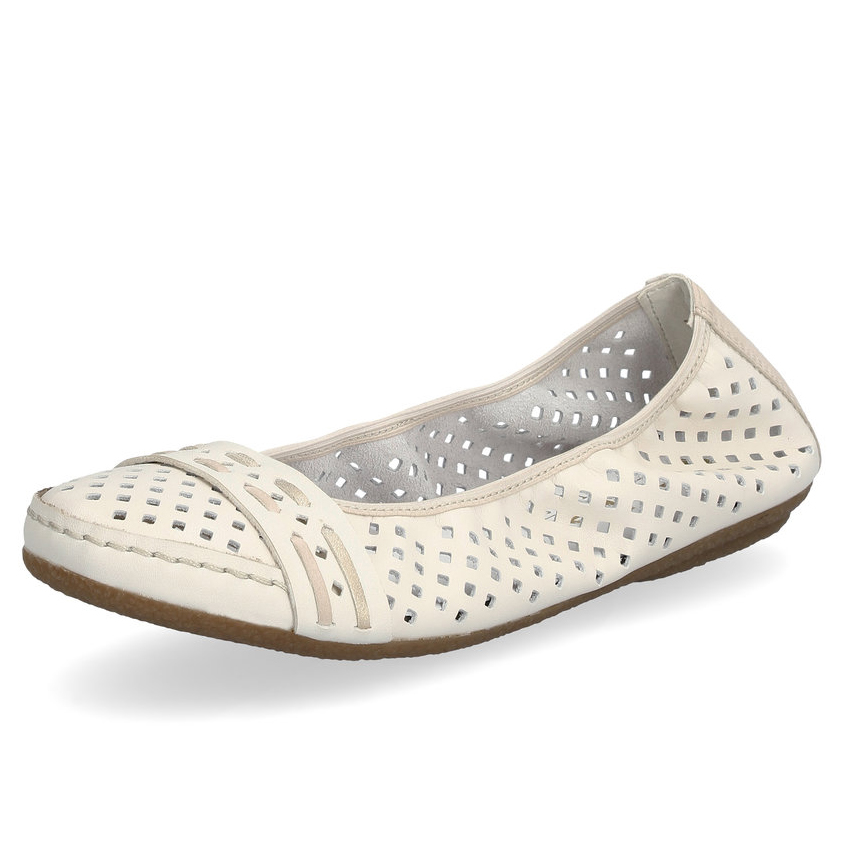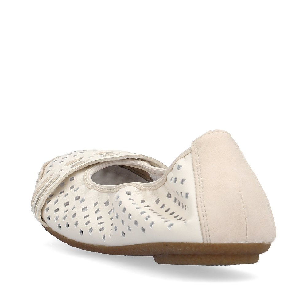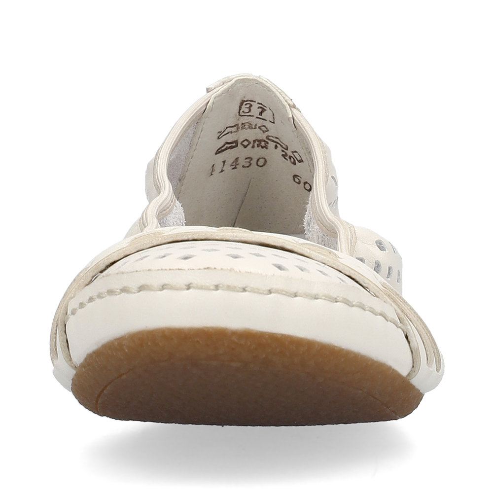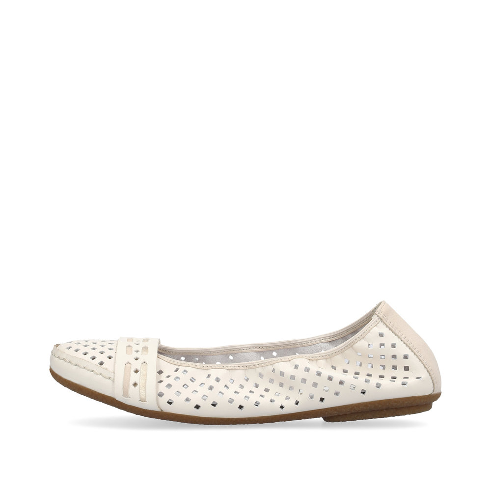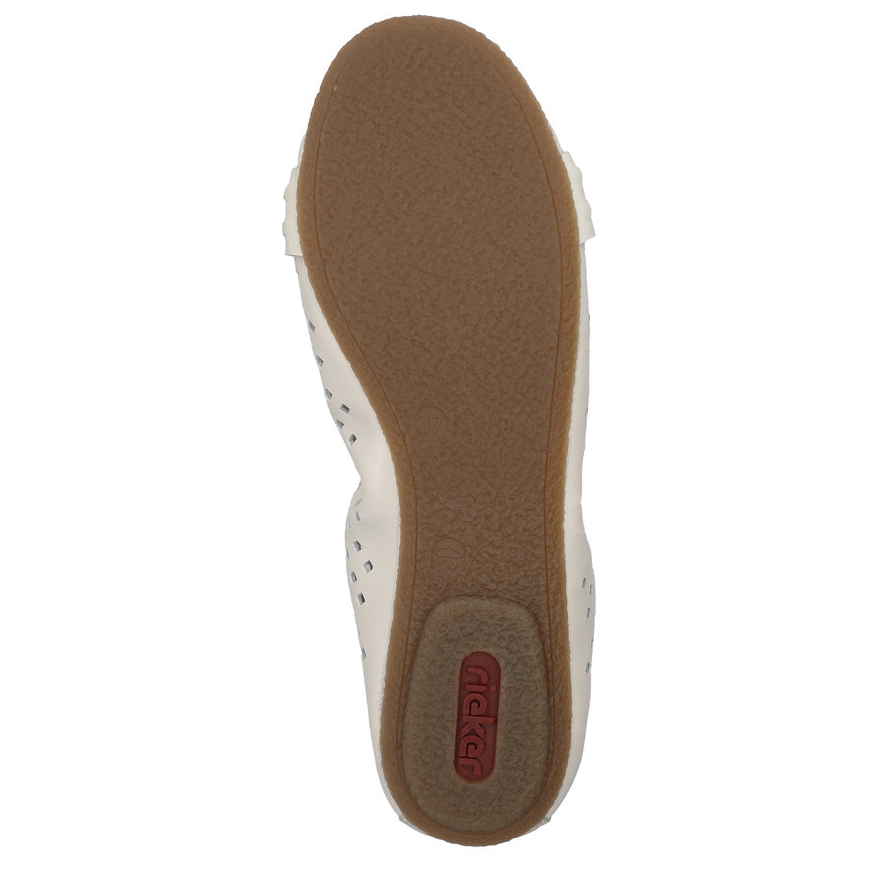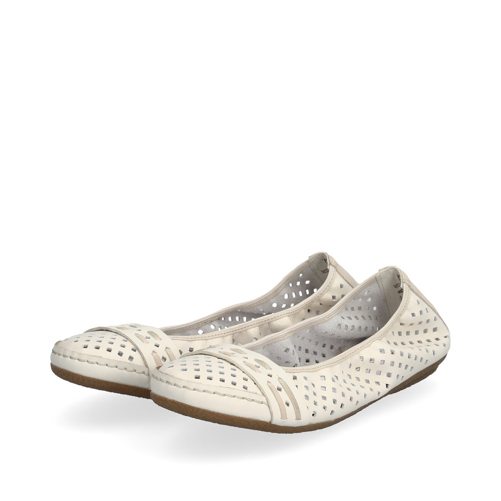 Stylowe letnie baleriny marki Rieker to doskonały wybór na ciepłe dni. Ich oryginalny design z delikatną perforacją zapewnia przewiewność i lekkość, a pasek poprowadzony przez czubek dodaje eleganckiego charakteru. Miękka skórzana wkładka gwarantuje komfort przez cały dzień noszenia. Dzięki wysokiej jakości podeszwie z technologią Antistress, która amortyzuje wstrząsy i dopasowuje się do stopy, każdy krok będzie lekki i wygodny. Te baleriny świetnie komponują się nie tylko z letnimi sukienkami i spódnicami, ale także będą pasować do spodni.