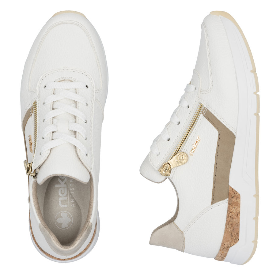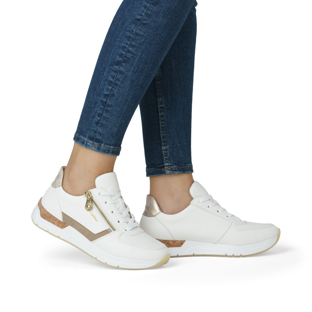 Ten stylowy model tenisówek Rieker szybko stanie się Twoim ulubionym wyborem na co dzień. Cholewka składająca się z kilku materiałowych elementów tworzy niepowtarzalny i nowoczesny wygląd, który doskonale pasuje do różnych stylizacji. Praktyczny suwak po zewnętrznej stronie buta umożliwia szybkie zakładanie i zdejmowanie, a dzięki sznurowadłom dopasujesz obuwie do swoich potrzeb. Miękka, wyjmowana wkładka zapewnia maksymalny komfort przy każdym kroku. Jeśli cenisz sobie styl i wygodę, te tenisówki Rieker będą dla Ciebie idealnym wyborem.