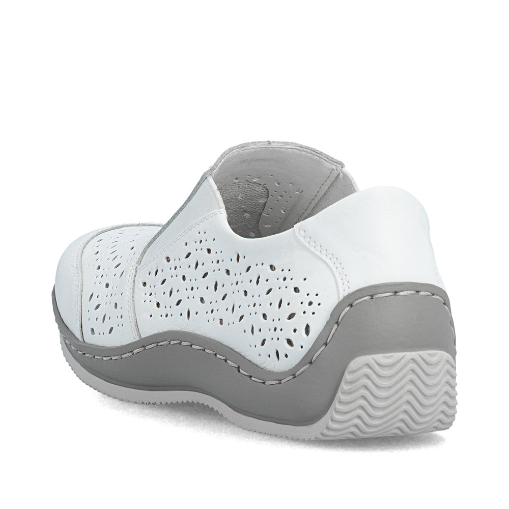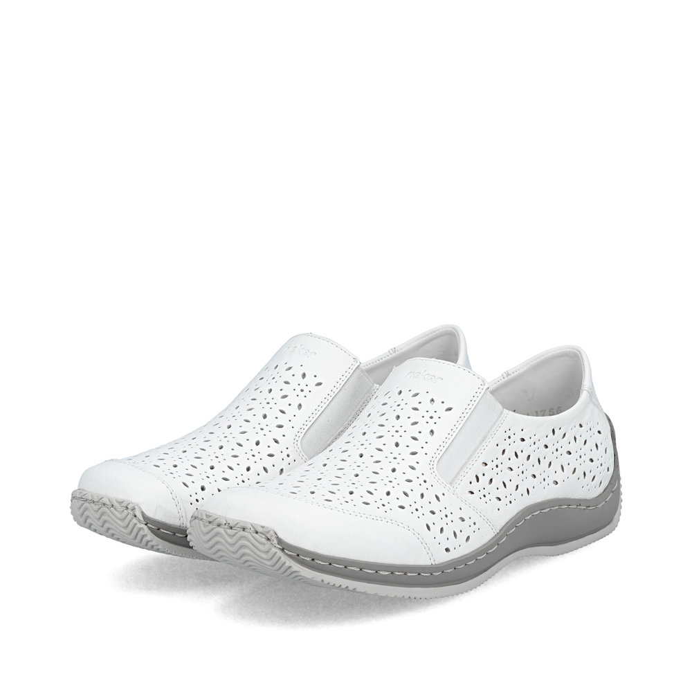 RIEKER L1756-80 białe damskie półbuty, skóra naturalna, podeszwa Antistress