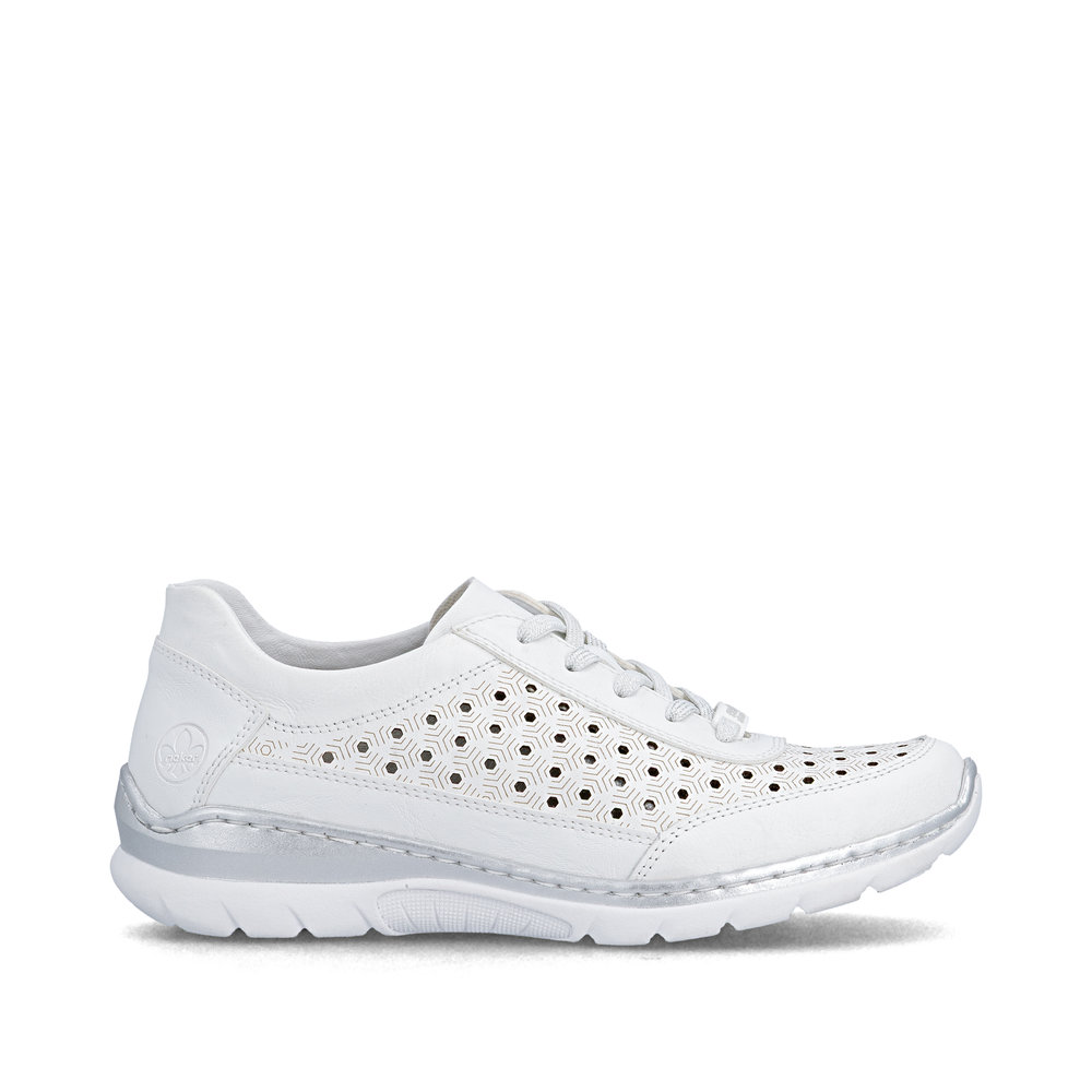 RIEKER L3217-80 białe damskie skórzane sneakersy, przewiewne, podeszwa Antistres