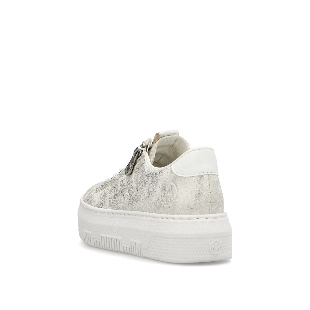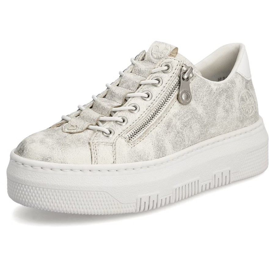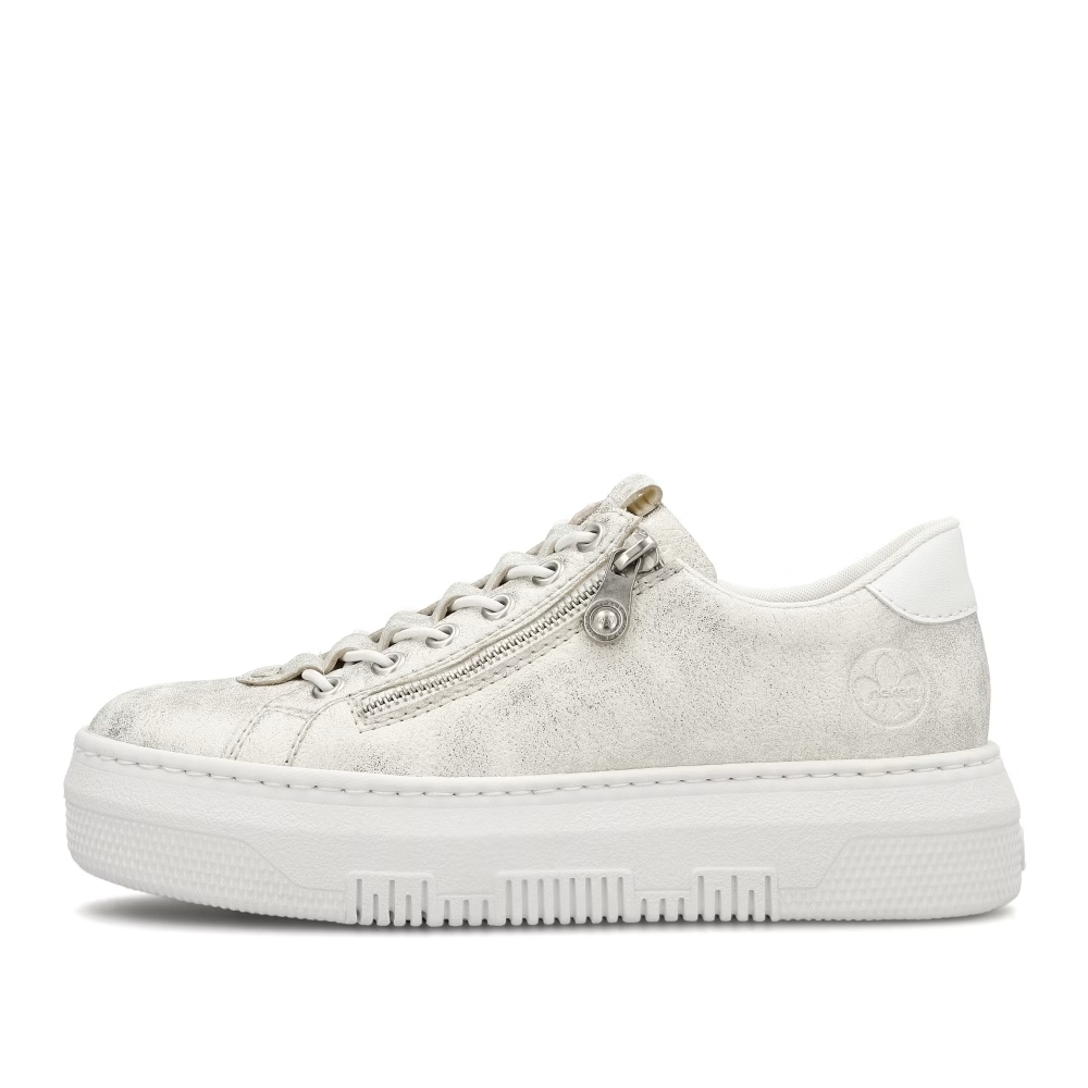 Te damskie sneakersy marki Rieker już na pierwszy rzut oka zachwycają pięknymi refleksami i białym detalem na pięcie, uzupełnionym logo marki. Są idealnym wyborem dla kobiet, które kochają modę i jednocześnie wymagają komfortu. Elastyczne sznurowanie i zamek błyskawiczny na podbiciu nie tylko ozdabiają, ale także ułatwiają zakładanie i pozwalają dopasować but do swoich potrzeb. Wyższa elastyczna podeszwa i miękka wkładka zapewniają maksymalny komfort i wsparcie na każdym kroku. Te sneakersy łączą odważny design z praktycznymi elementami, dzięki czemu są idealnym wyborem do noszenia na co dzień. Technologia: Antistress: Lekka i elastyczna podeszwa, która amortyzuje wstrząsy i dopasowuje się do kształtu stopy, zapewniając maksymalny komfort. Lite'n Soft: Połączenie lekkiej podeszwy i miękkiej wkładki dające wrażenie chodzenia po chmurach.