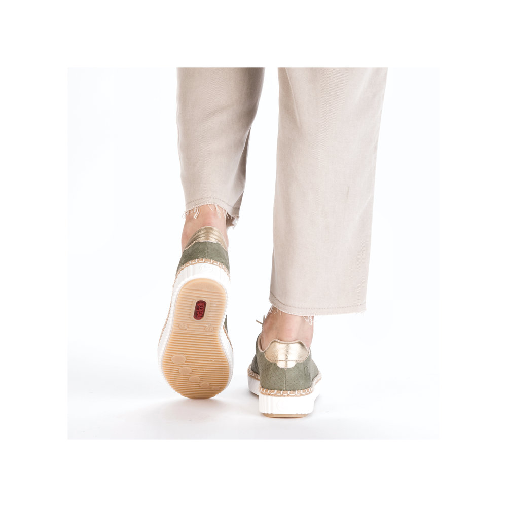 Stylowe i wygodne zielone damskie sneakersy RIEKER M2940-52 to doskonały wybór do codziennego noszenia. Lekka konstrukcja, elastyczna podeszwa i miękka wkładka zapewniają maksymalny komfort nawet podczas całodziennego ruchu. Elegancki, minimalistyczny design umożliwia łatwe łączenie z różnymi stylizacjami, od casualowych po sportowe. Sneakersy wykonane są z trwałych i łatwych w utrzymaniu materiałów, a antypoślizgowa podeszwa zapewnia bezpieczeństwo na różnych nawierzchniach. Idealny towarzysz na spacery, zakupy lub podróże – z modelem RIEKER M2940-52 będziesz wyglądać stylowo i czuć się komfortowo przez cały dzień.