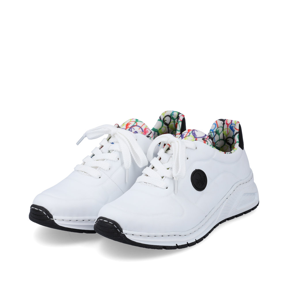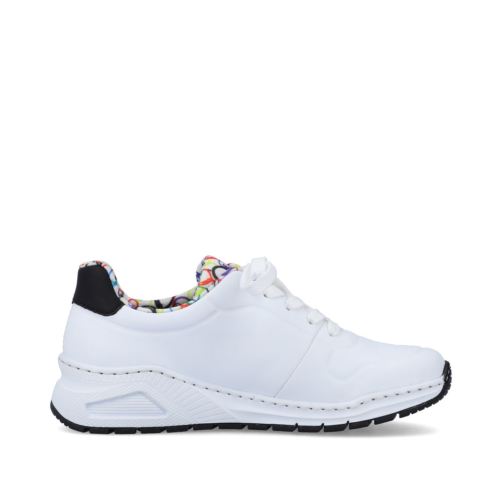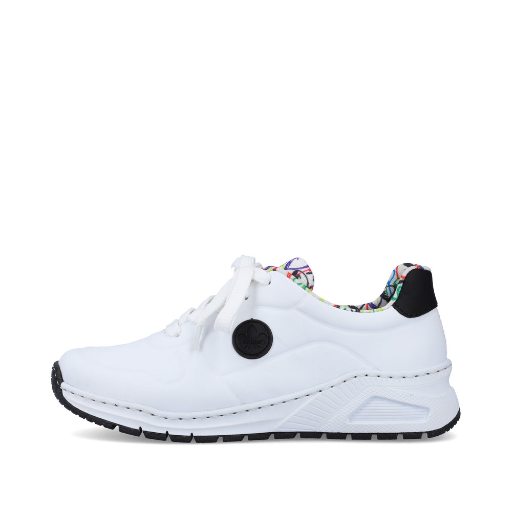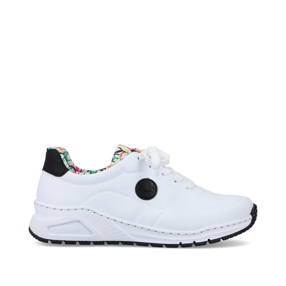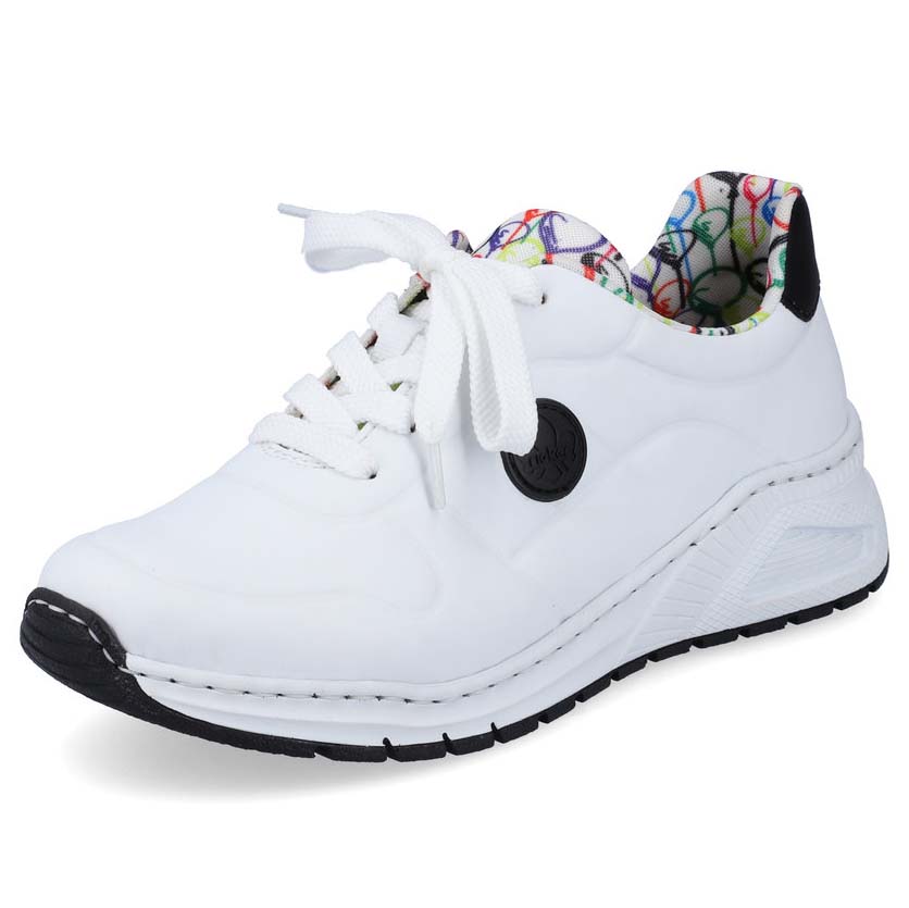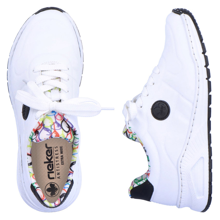 Te oryginalne tenisówki Rieker to wyjątkowy dodatek, który doda Twojemu stylowi świeżości i odrobiny zabawy. Biała cholewka została wzbogacona czarnym logo Rieker po bokach, czarnym detalem na pięcie oraz unikalnym wzorem balonów na tekstylnej wyściółce i języku, przypominającym wesołe miasteczko. W naszej ofercie znajdziesz także czarny plecak z motywem balonów, który doskonale do nich pasuje. Klasyczne sznurowanie pozwala na idealne dopasowanie butów, a wyjmowana wkładka z pianki pamięciowej oraz antystressowa podeszwa gwarantują komfort przez cały dzień. Bez względu na to, czy wybierasz się na spacer, do kina czy na kawę z przyjaciółmi, te tenisówki sprawią, że zawsze będziesz wyglądać stylowo.