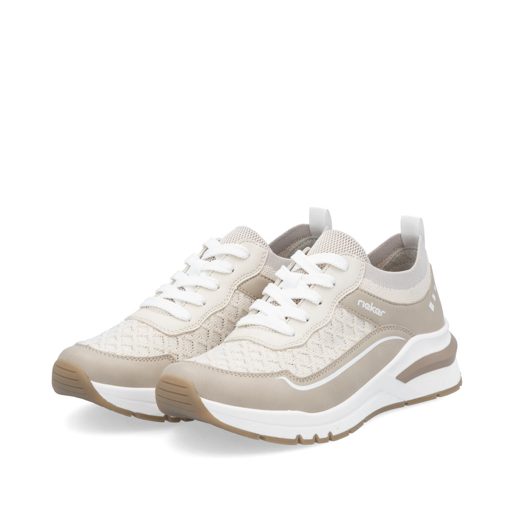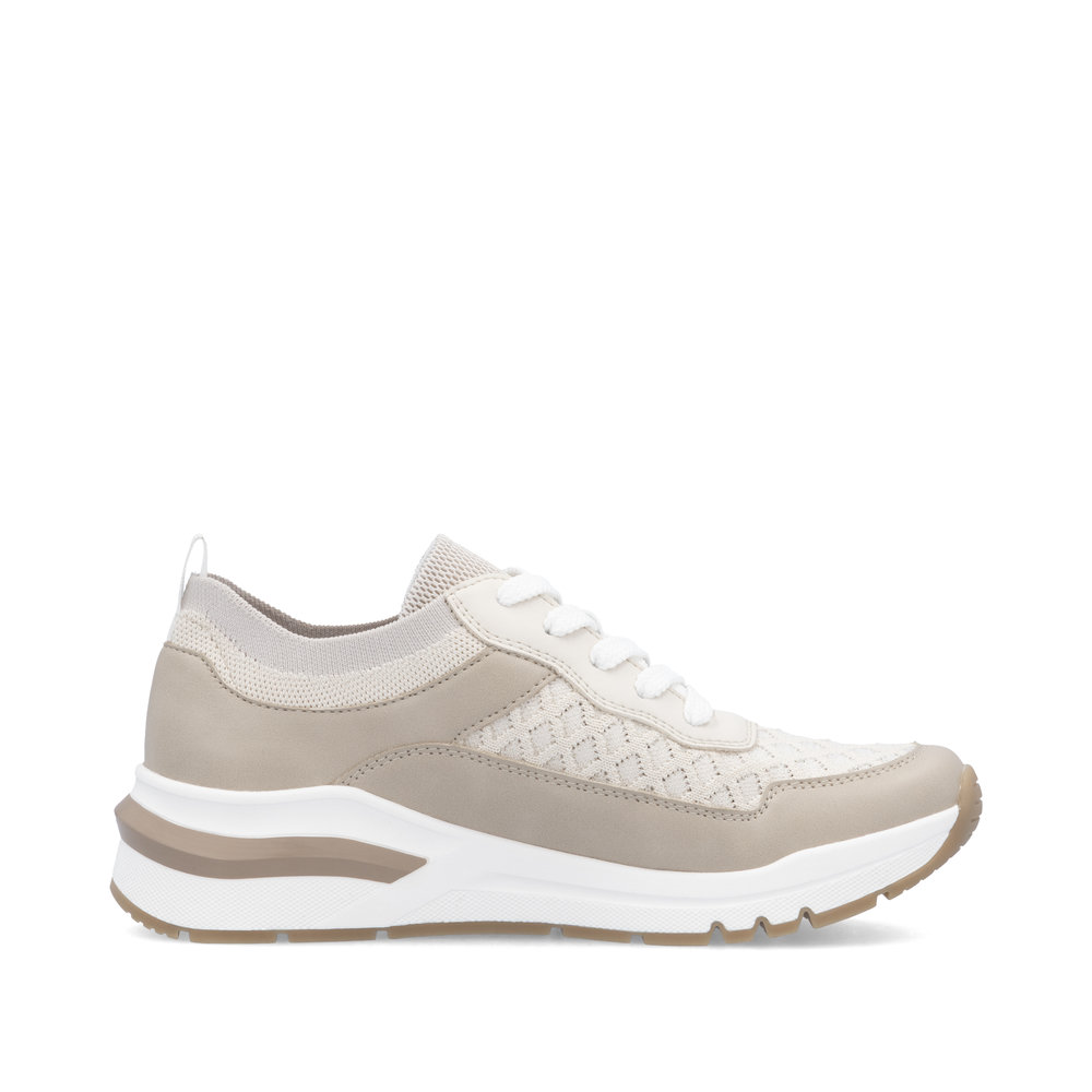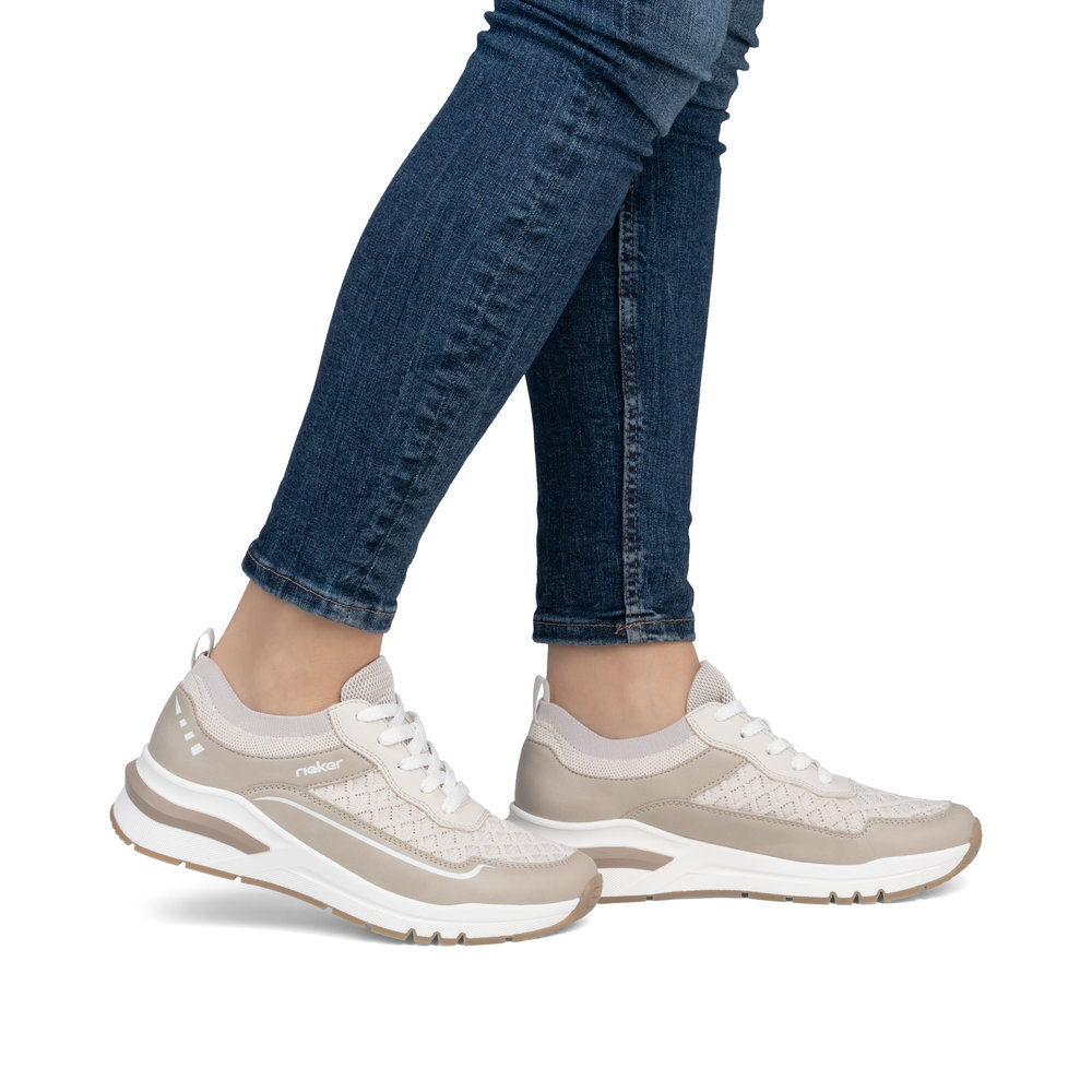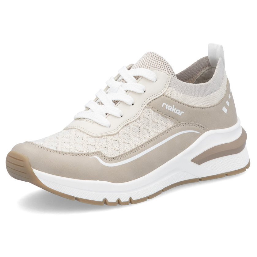 Damskie tenisówki RIEKER M6609-60 w eleganckim beżowym kolorze to doskonały wybór na co dzień, łączący wygodę i styl. Lekkie materiały oraz oddychająca cholewka zapewniają komfort nawet podczas długiego użytkowania. Dzięki praktycznemu sznurowaniu buty idealnie dopasowują się do kształtu stopy, a miękka wkładka z pianki memory amortyzuje każdy krok. Nowoczesny design uzupełnia lekka podeszwa, która nie tylko świetnie wygląda, ale także skutecznie absorbuje wstrząsy i wspiera naturalny ruch stopy. Te tenisówki to idealna propozycja na co dzień – do miasta, pracy czy na spacery, gwarantując styl i maksymalną wygodę.