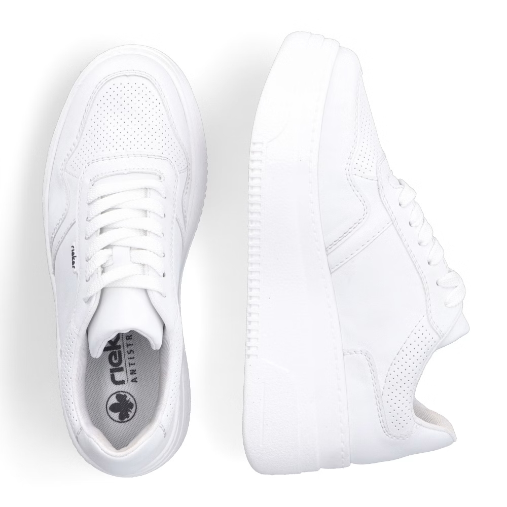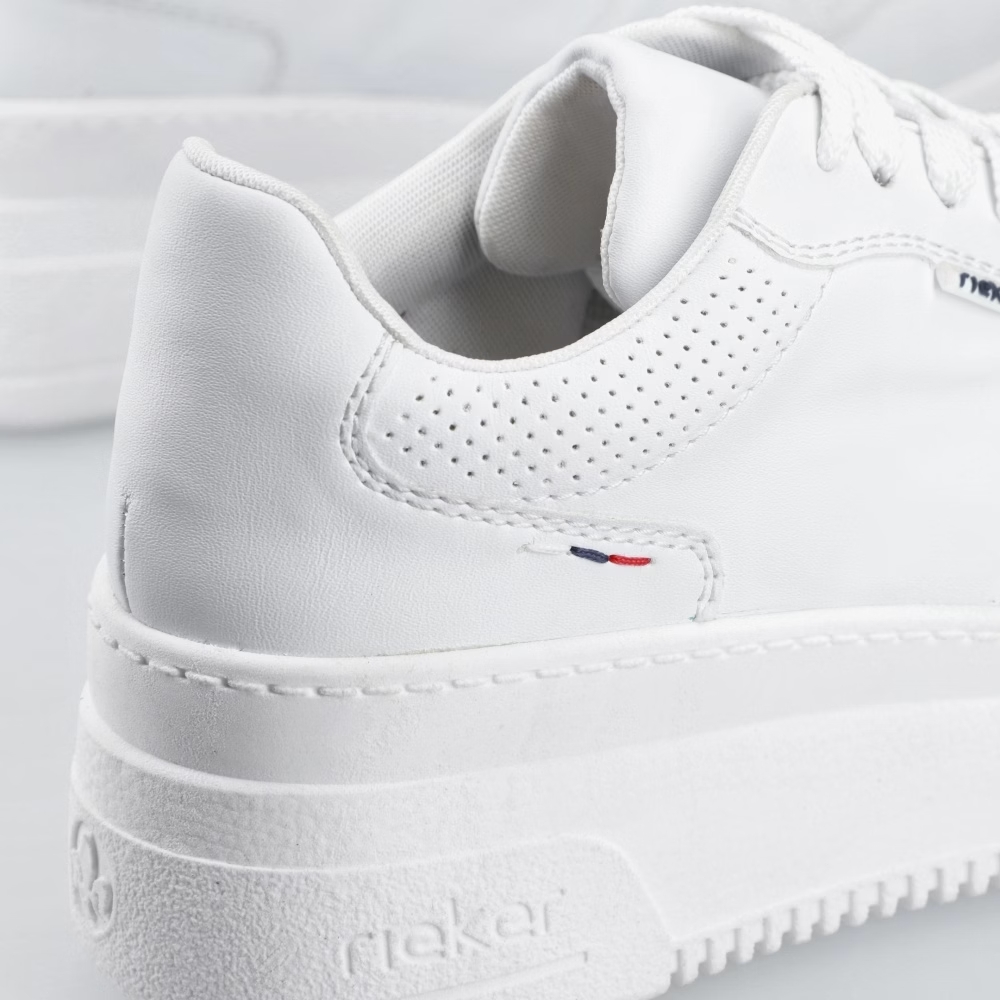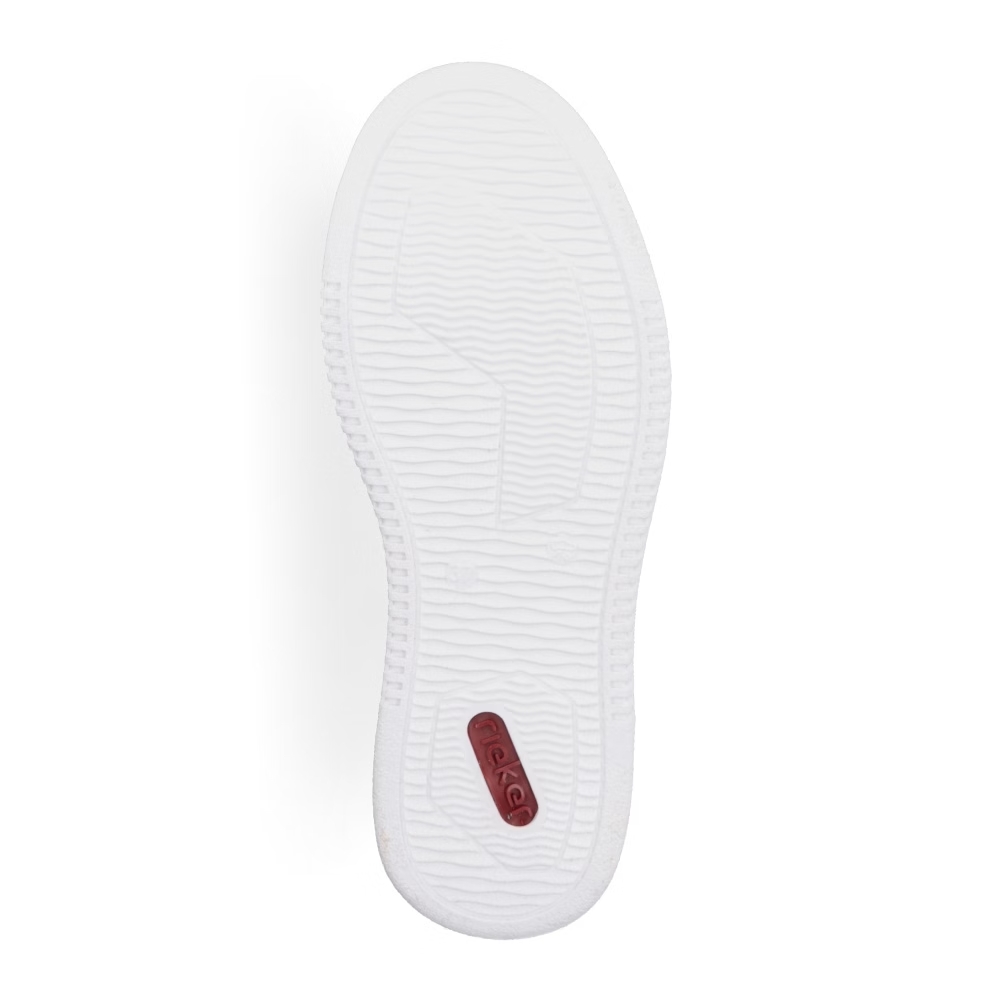 Trampki damskie RIEKER M7811-80 w eleganckim białym kolorze to idealna propozycja dla kobiet, które chcą połączyć nowoczesny styl z wygodą. Te tenisówki wyróżniają się minimalistycznym designem z drobnymi detalami, które nadają butom charakteru i można je łatwo łączyć z różnymi strojami, zarówno sportowymi, jak i swobodnymi. Cholewka wykonana została z wysokiej jakości materiału syntetycznego, który jest łatwy w utrzymaniu i zapewnia lekkość podczas noszenia. Podeszwa jest elastyczna i amortyzująca, co zapewnia przyjemne uczucie podczas chodzenia i długiego noszenia. Trampki RIEKER M7811-80 oferują stylową wygodę podczas codziennego użytkowania.