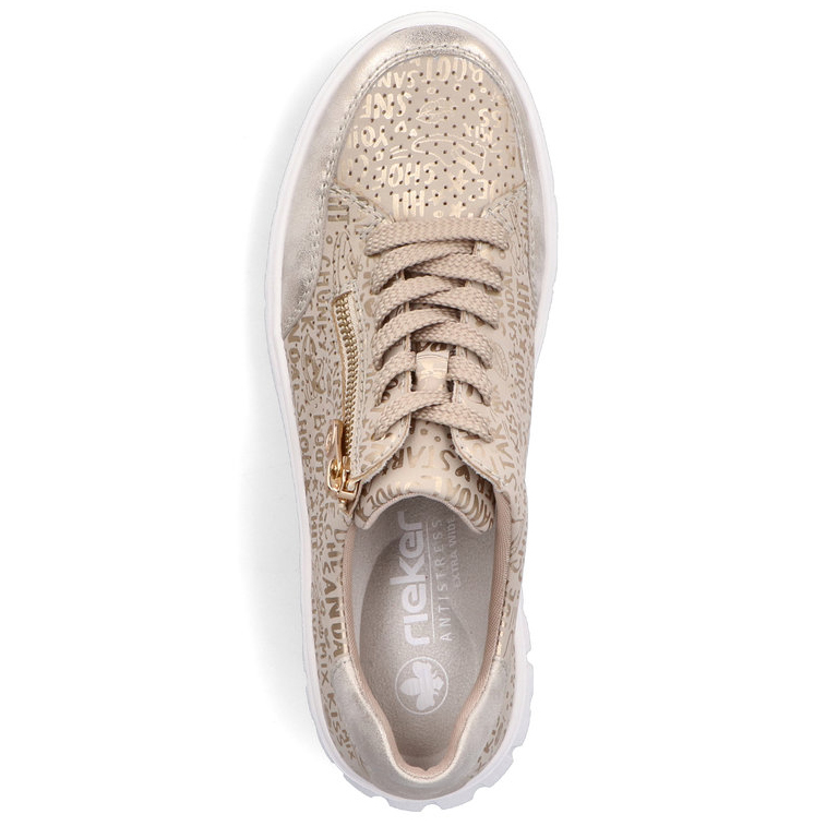 Oryginalny wygląd tych damskich tenisówek RIEKER to efekt niezwykłego połączenia materiałów i kolorowych refleksów, uzupełnionych młodzieżowym nadrukiem, który dodaje butom modnego charakteru. Nowoczesny design idzie w parze z praktycznością – sznurowanie w połączeniu z bocznym zamkiem zapewnia łatwe zakładanie i idealne dopasowanie do stopy. Wyjmowana, miękka wkładka Rieker Soft wykonana z oddychającego materiału gwarantuje komfort przez cały dzień, a podwyższona podeszwa z technologią RIEKER Lite skutecznie amortyzuje wstrząsy i wspiera wygodny chód. Dzięki szerszemu krojowi EXTRA WEIT palce mają więcej przestrzeni, co zwiększa wygodę nawet podczas długiego noszenia. Buty te oferują lekkość, elastyczność i amortyzację dzięki technologii Antistress, a jednocześnie stanowią stylowy dodatek do miejskich i codziennych stylizacji.