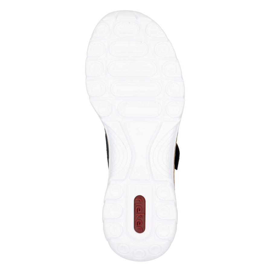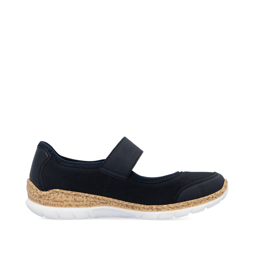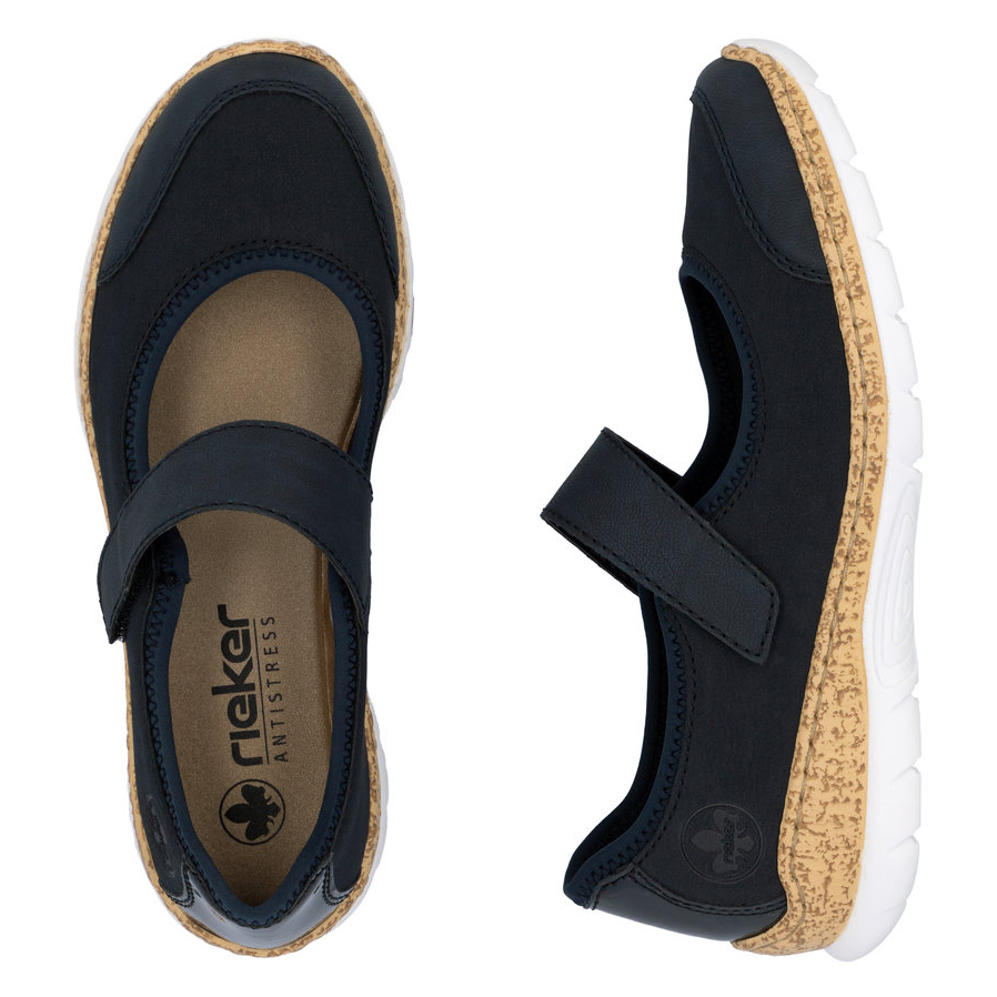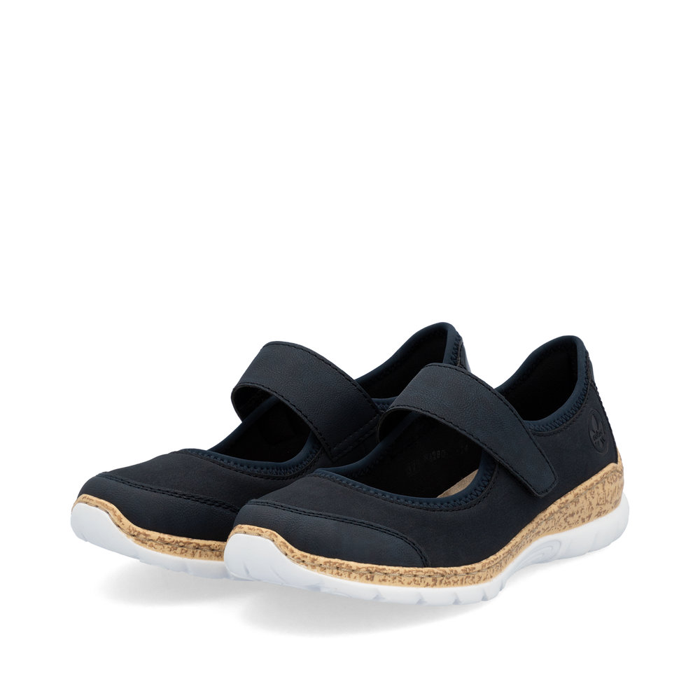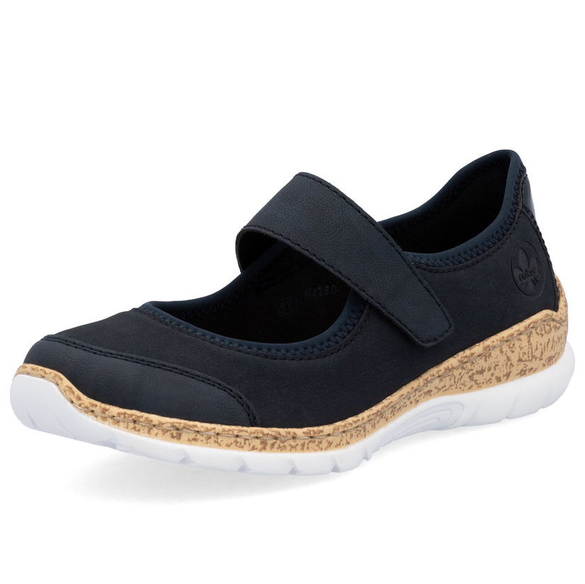 Zapewnij swoim stopom maksymalny komfort dzięki eleganckim balerinom RIEKER, które łączą styl i funkcjonalność. Granatowa cholewka zachwyca subtelną elegancją, a błyszczący detal na pięcie i delikatne logo marki dodają butom wyrafinowanego charakteru. Praktyczny pasek na rzep na podbiciu umożliwia szybkie zakładanie i idealne dopasowanie do stopy. Miękka wkładka gwarantuje wygodę nawet przez cały dzień, a stylowa podeszwa skutecznie amortyzuje wstrząsy i zapewnia stabilność. Te baleriny to doskonały wybór dla kobiet, które szukają stylowego, wygodnego i praktycznego obuwia na co dzień.