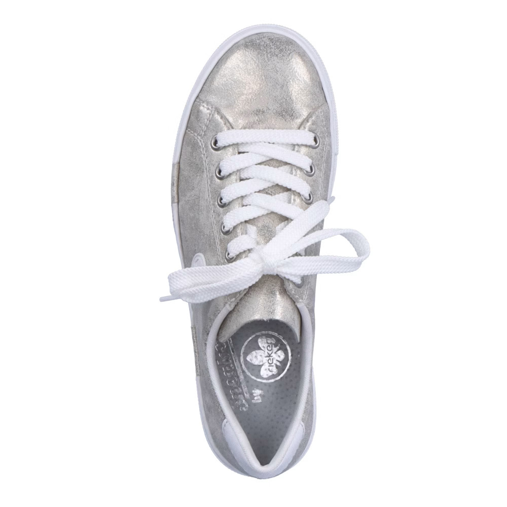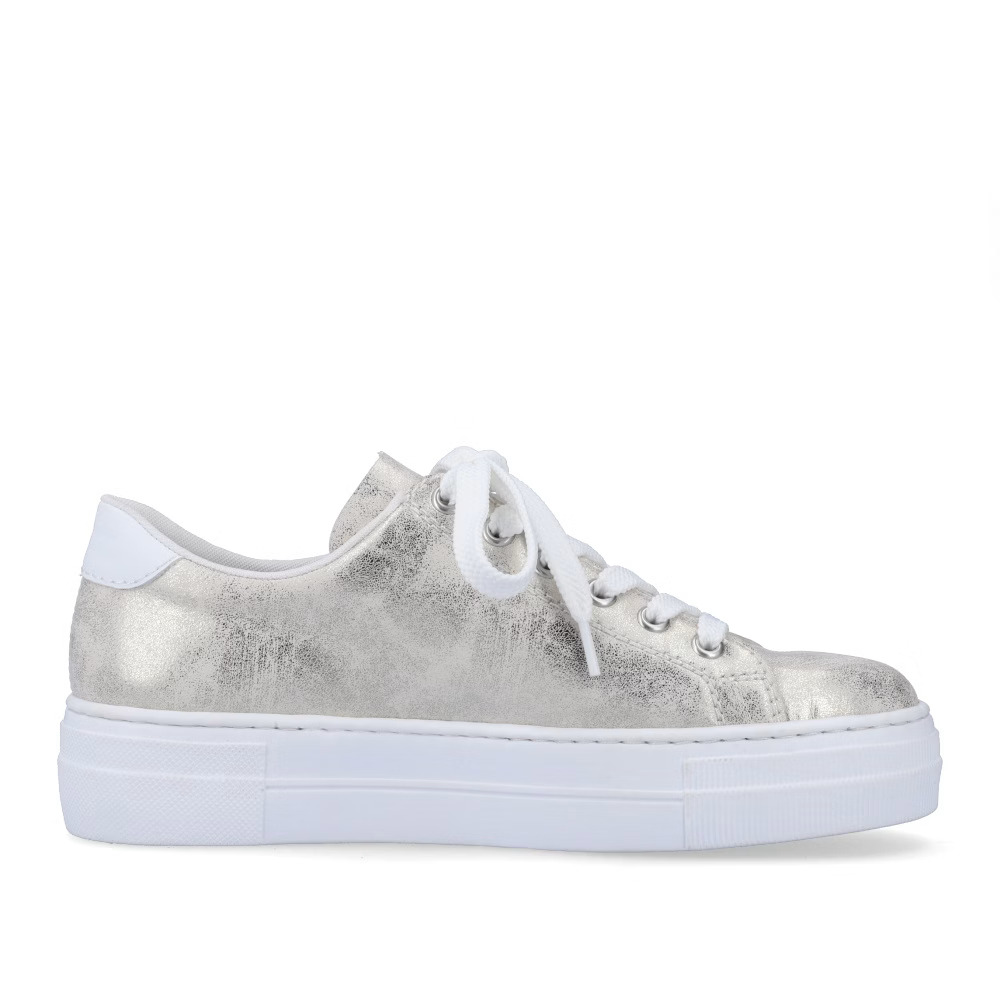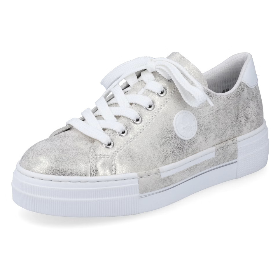 Te stylowe sneakersy Rieker od razu przykują wzrok elegancką błyszczącą cholewką, która idealnie komponuje się z białymi detalami. Klasyczne sznurowanie zapewnia łatwe zakładanie, a miękka wkładka zapewnia wygodę na każdym kroku. Ten wyjątkowy model to uniwersalny wybór, świetnie komponuje się zarówno ze spodniami, jak i spódnicą, zapewniając wygodę i styl w jednym. Technologia: Antistress - podeszwa wykorzystująca technologię Antistress jest lekka, elastyczna, amortyzuje wstrząsy podczas chodzenia i idealnie dopasowuje się do kształtu stopy.