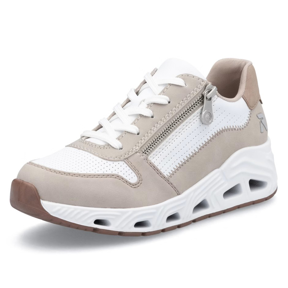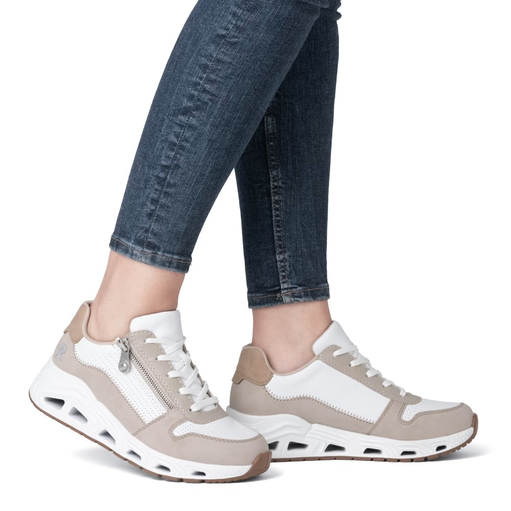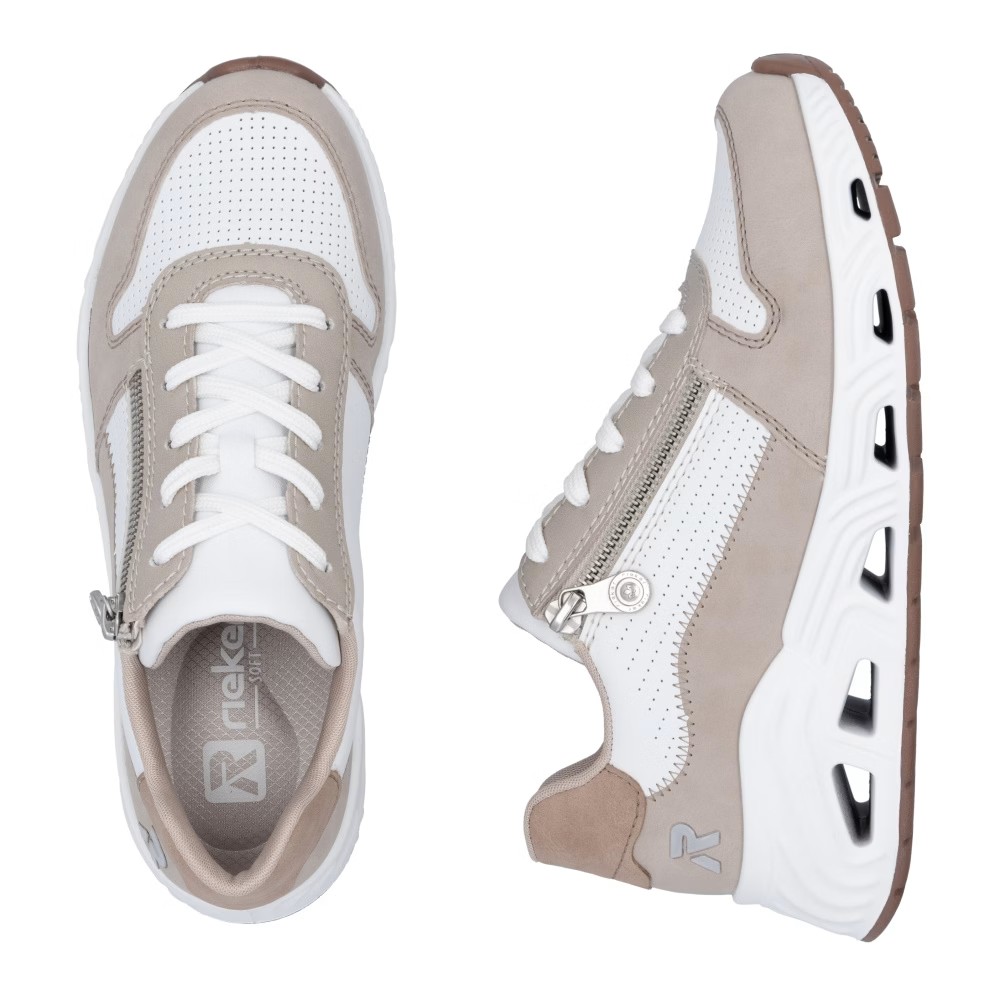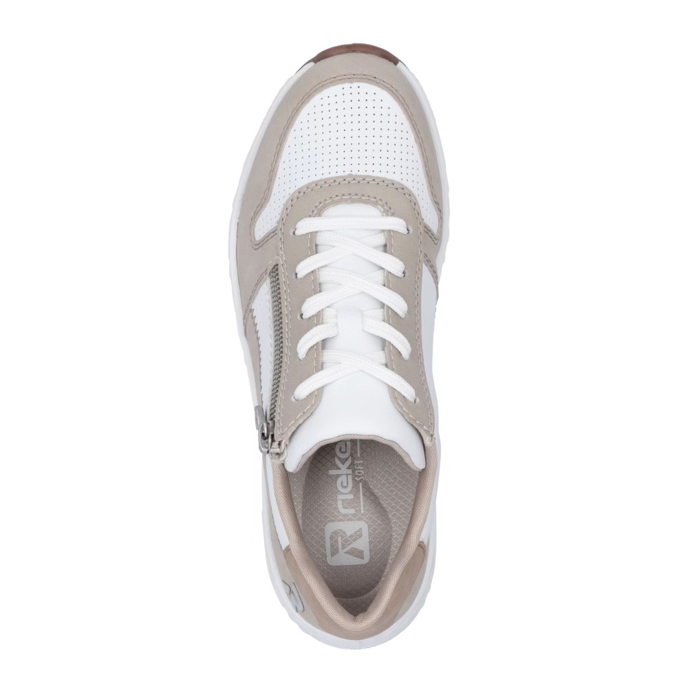 Super stylowe, super modne! Takie właśnie są tenisówki RIEKER, które doskonale wpisują się w najnowsze trendy. Jasna cholewka została elegancko uzupełniona białymi elementami i subtelnym przeszyciem, które nadają butom wyjątkowego charakteru. Praktyczny zamek błyskawiczny w połączeniu ze sznurowaniem zapewnia łatwe zakładanie i idealne dopasowanie do stopy. Unikalna, lekka podeszwa gwarantuje komfortowy krok, a wyjmowana miękka wkładka RiekerSoft dba o wygodę przez cały dzień. Te stylowe tenisówki to doskonały wybór na co dzień – sprawdzą się zarówno w mieście, na spacerach, jak i w czasie wolnych chwil. Połączenie nowoczesnego designu i innowacyjnych technologii czyni je idealnym wyborem dla osób ceniących styl i komfort.