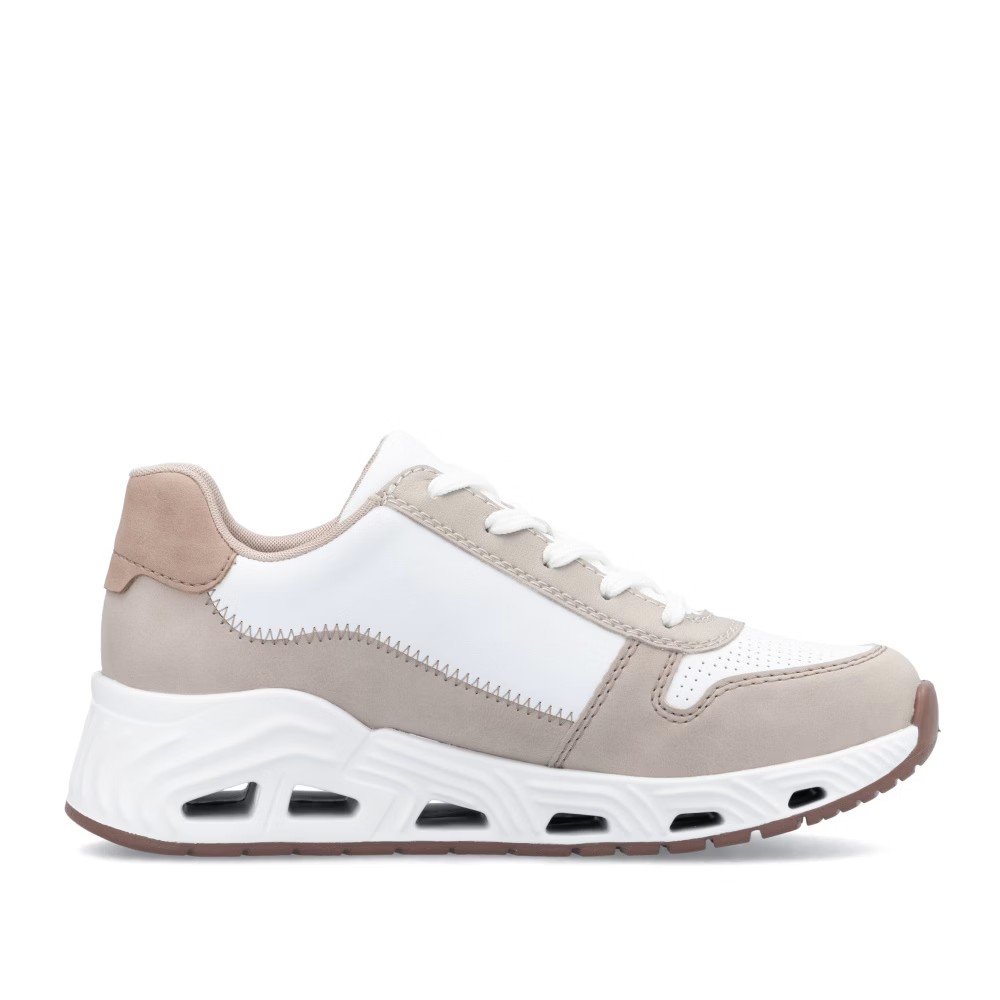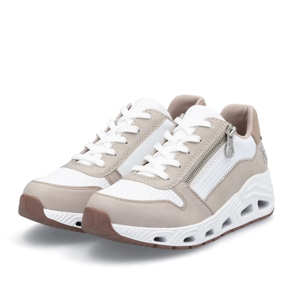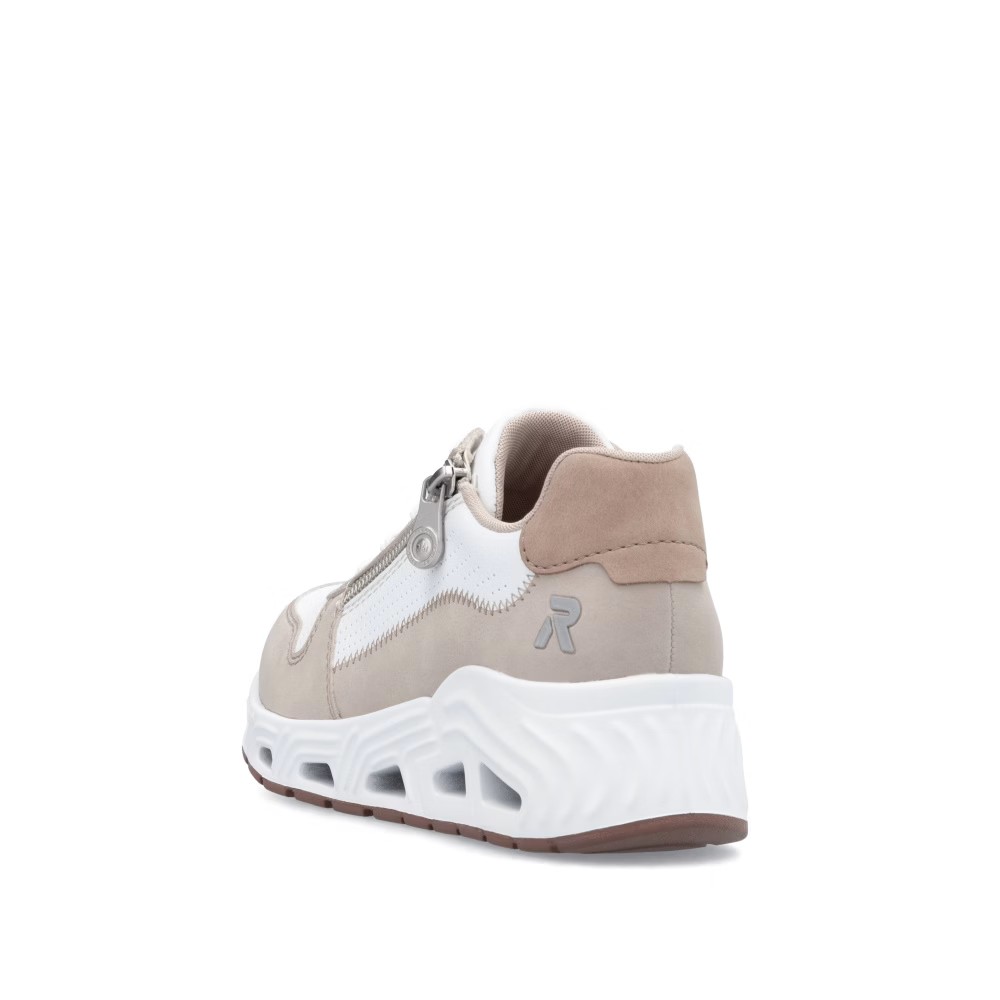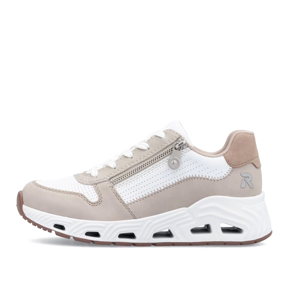Super stylowe, super modne! Takie właśnie są tenisówki RIEKER, które doskonale wpisują się w najnowsze trendy. Jasna cholewka została elegancko uzupełniona białymi elementami i subtelnym przeszyciem, które nadają butom wyjątkowego charakteru. Praktyczny zamek błyskawiczny w połączeniu ze sznurowaniem zapewnia łatwe zakładanie i idealne dopasowanie do stopy. Unikalna, lekka podeszwa gwarantuje komfortowy krok, a wyjmowana miękka wkładka RiekerSoft dba o wygodę przez cały dzień. Te stylowe tenisówki to doskonały wybór na co dzień – sprawdzą się zarówno w mieście, na spacerach, jak i w czasie wolnych chwil. Połączenie nowoczesnego designu i innowacyjnych technologii czyni je idealnym wyborem dla osób ceniących styl i komfort.