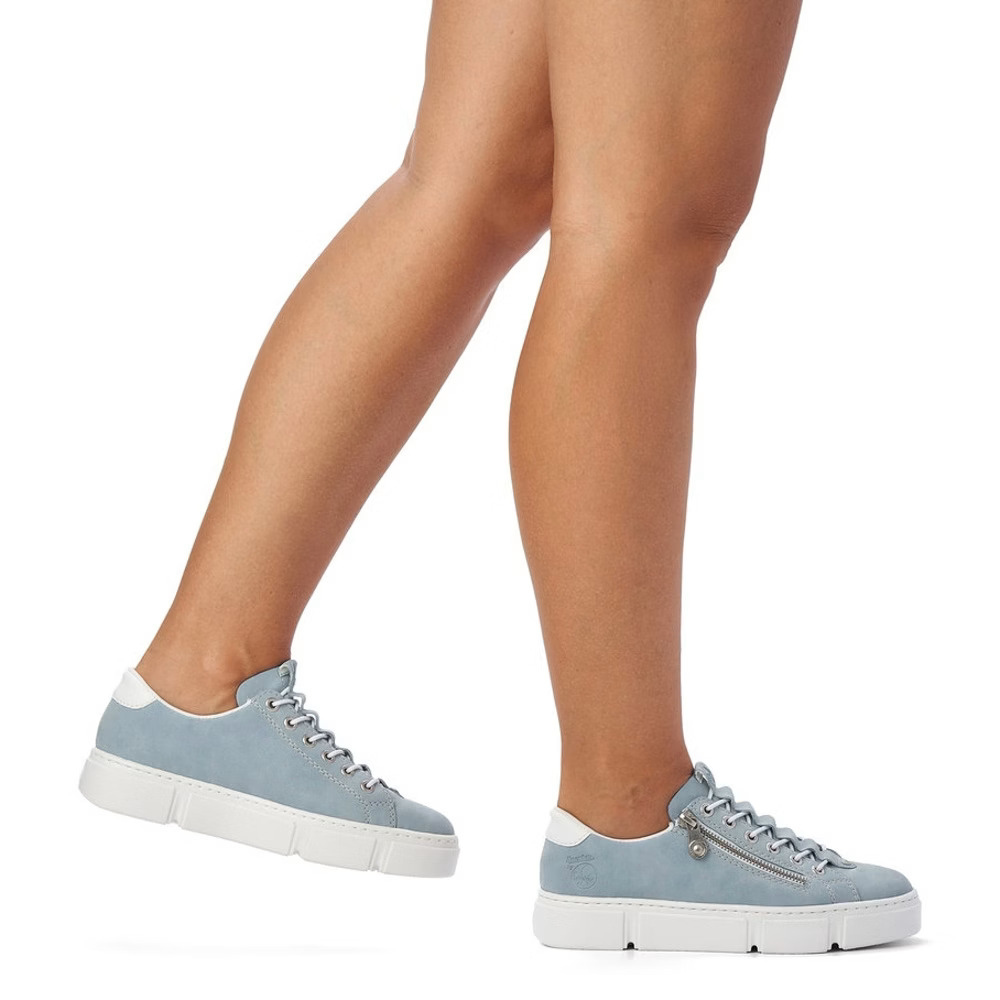 Trampki damskie RIEKER N5952-10 w eleganckim niebieskim kolorze to doskonały wybór do noszenia na co dzień, gdy cenisz sobie połączenie stylu i wygody. Te sneakersy wykonane są z lekkiego i oddychającego materiału, który zapewnia maksymalny komfort przez cały dzień. Dzięki wygodnej wkładce i elastycznej podeszwie sneakersy zapewniają doskonałe wsparcie podczas chodzenia i pomagają zmniejszyć zmęczenie stóp. Nowoczesny design z subtelnymi detalami i praktycznym sznurowaniem sprawiają, że z łatwością dopasowuje się do Twojego stylu i gwarantuje wygodne dopasowanie. Trampki RIEKER N5952-10 to idealny wybór zarówno do użytku w czasie wolnym, jak i w środowisku miejskim, gdzie chcesz wyglądać świetnie i jednocześnie czuć się komfortowo.