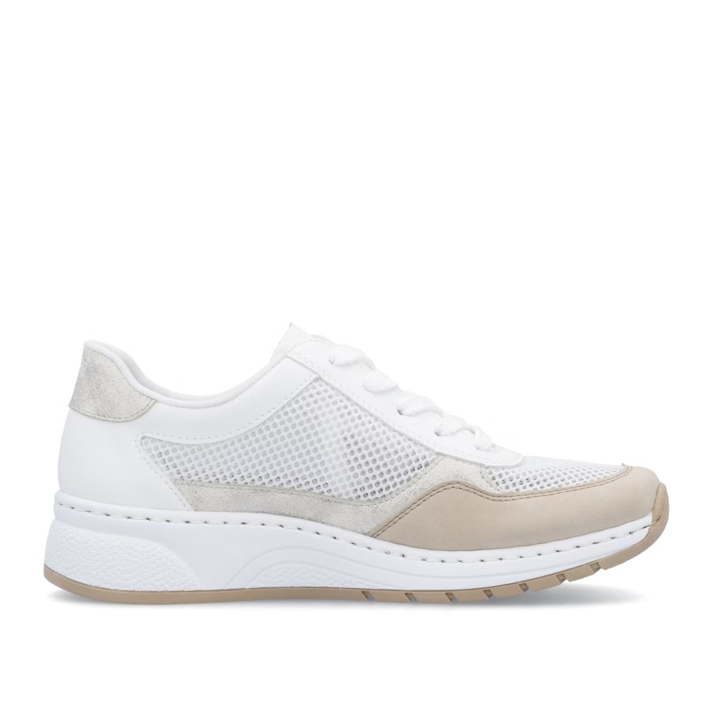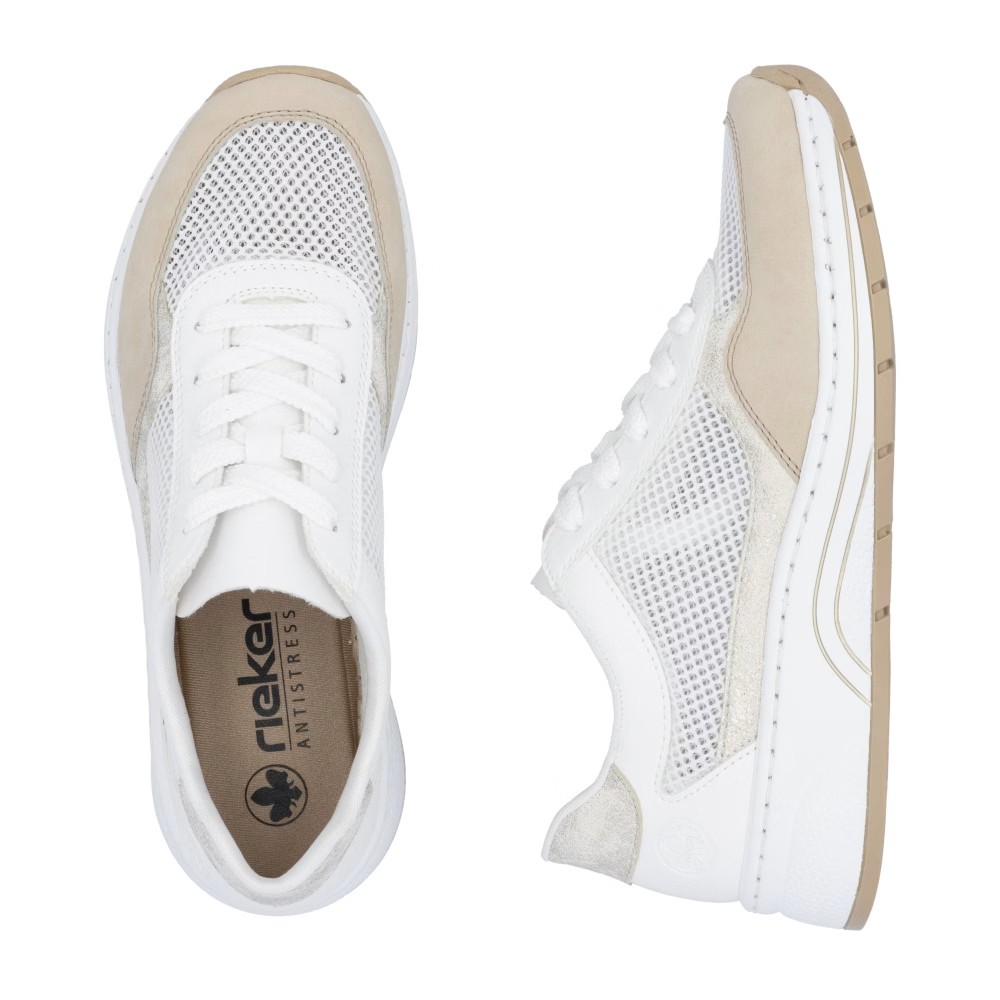 Ten model sneakersów zachwyci Cię nie tylko stonowaną kolorystyką, ale przede wszystkim tekstylnymi panelami, które zapewniają doskonałą wentylację w ciepłe dni. Klasyczne sznurowanie umożliwia idealne dopasowanie do kształtu stopy, a wkładka MemoSoft z pianki pamięciowej gwarantuje miękki i wygodny krok. Technologia Antistress sprawia, że buty są lekkie, elastyczne i doskonale amortyzują wstrząsy, co zapewnia komfort przez cały dzień. Idealny wybór na spacer po mieście, do pracy lub na co dzień – świetnie komponuje się zarówno ze spodniami, jak i spódnicą.