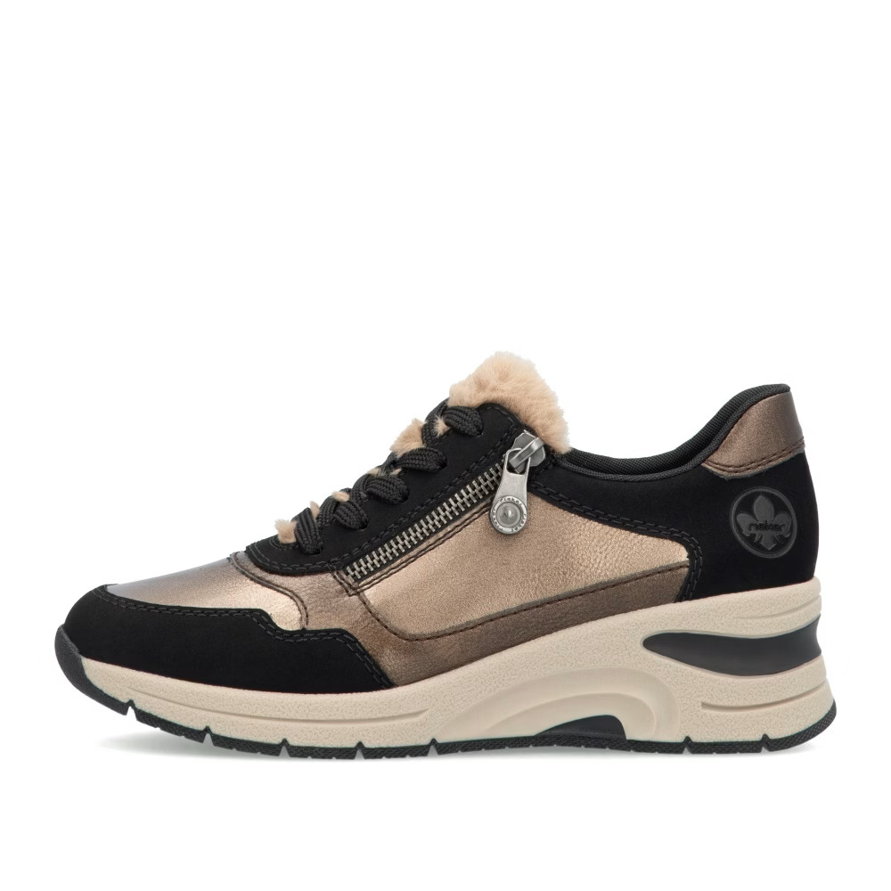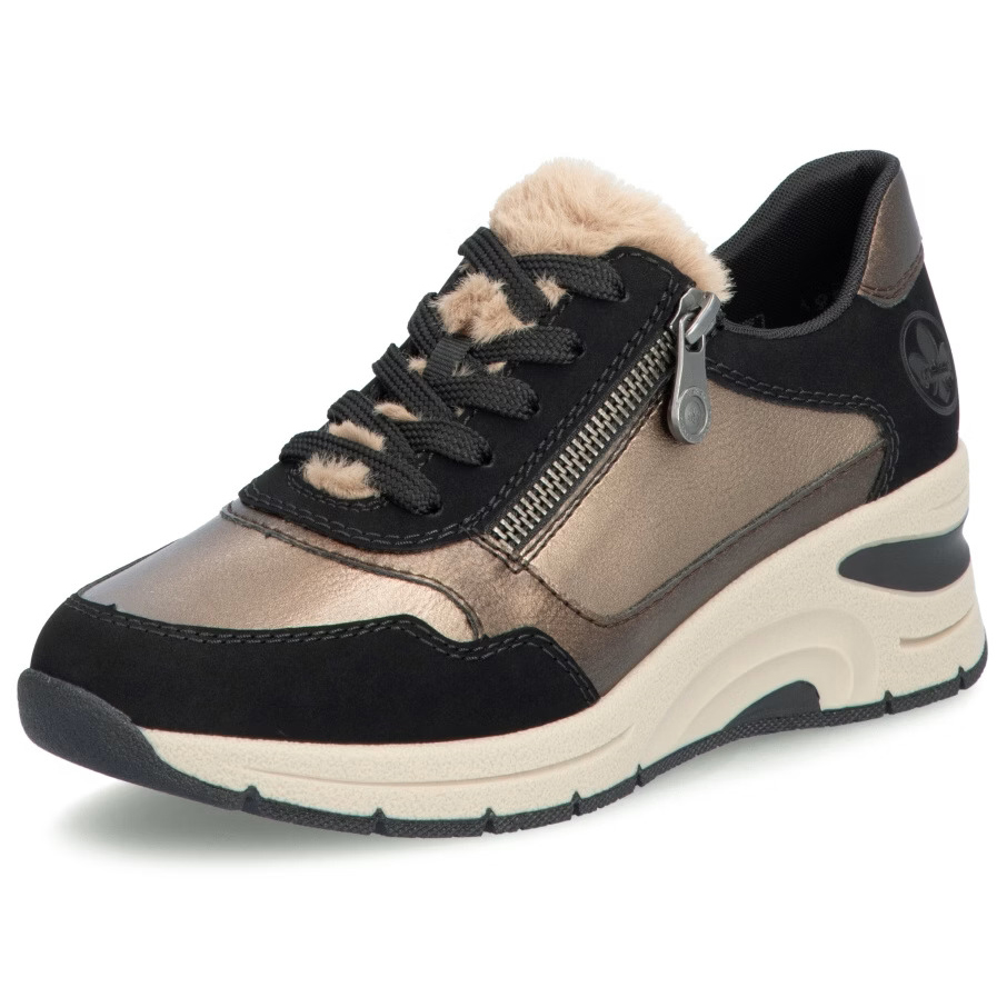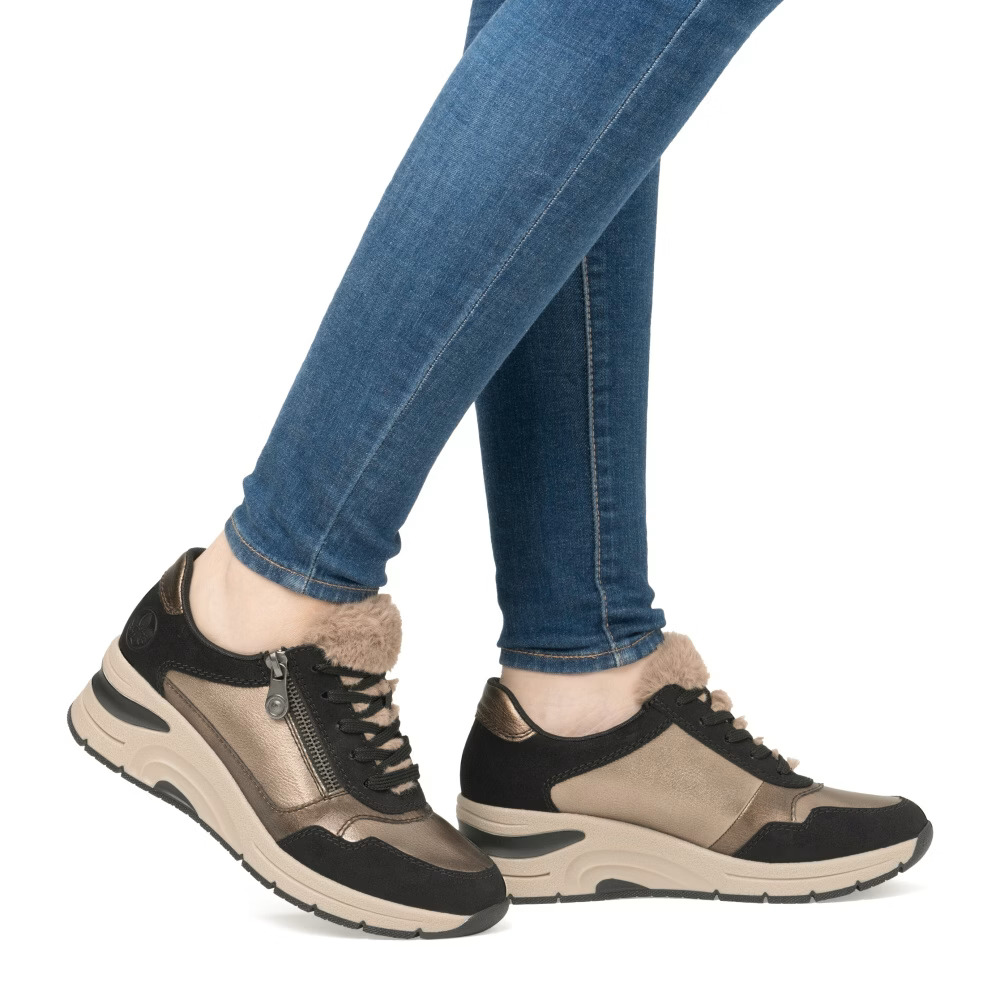 Projekt marki RIEKER wyróżnia się oryginalnym połączeniem kolorów i materiałów, co nadaje butom niepowtarzalny wygląd. Futerko na podbiciu dodaje butom niepowtarzalnego charakteru i stanowi ciekawy dodatek do Twojej stylizacji. Miękka, wyjmowana wkładka zapewnia całodzienny komfort i wsparcie, a stylowa podeszwa nie tylko potęguje wrażenie mody, ale także skutecznie amortyzuje wstrząsy, poprawiając komfort chodzenia i chroniąc stopy. Połączenie sznurowania i zamka ułatwia zakładanie i dopasowanie do własnych potrzeb. Buty te są doskonałym wyborem do noszenia na co dzień ze względu na wygodę i styl.
