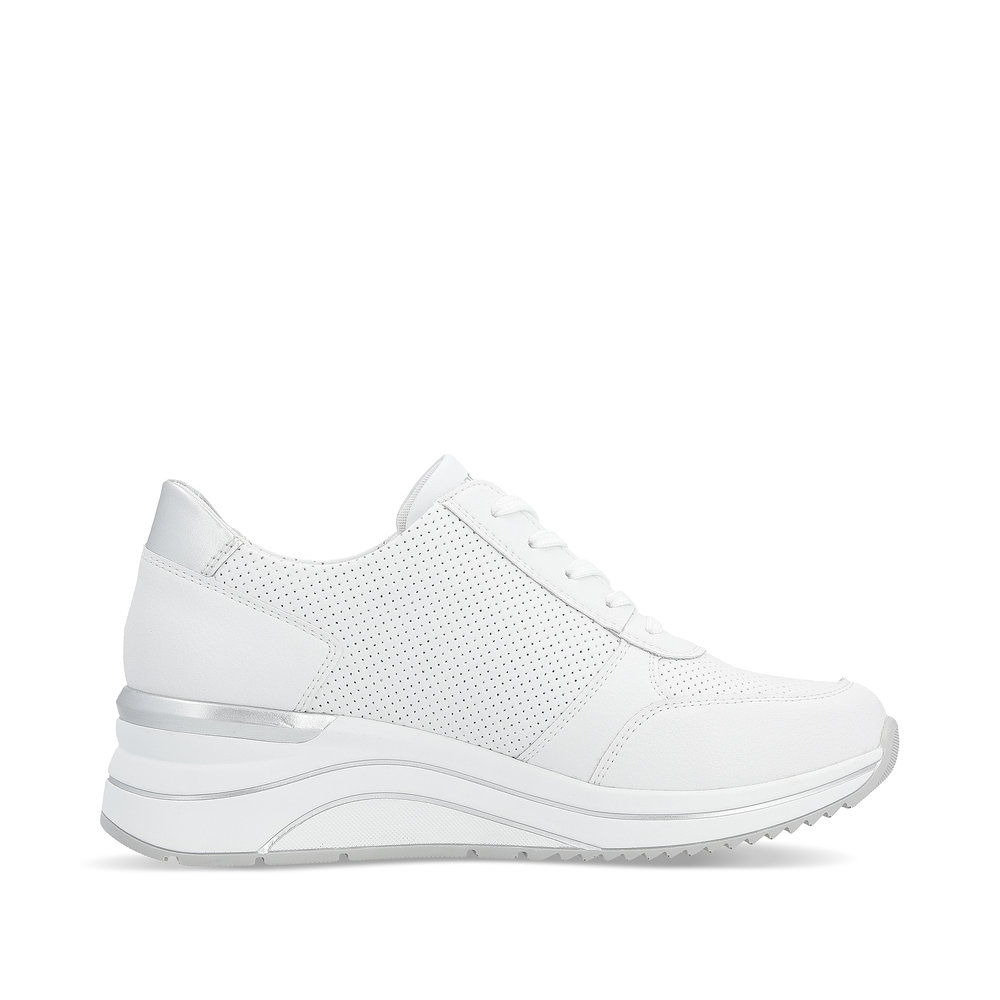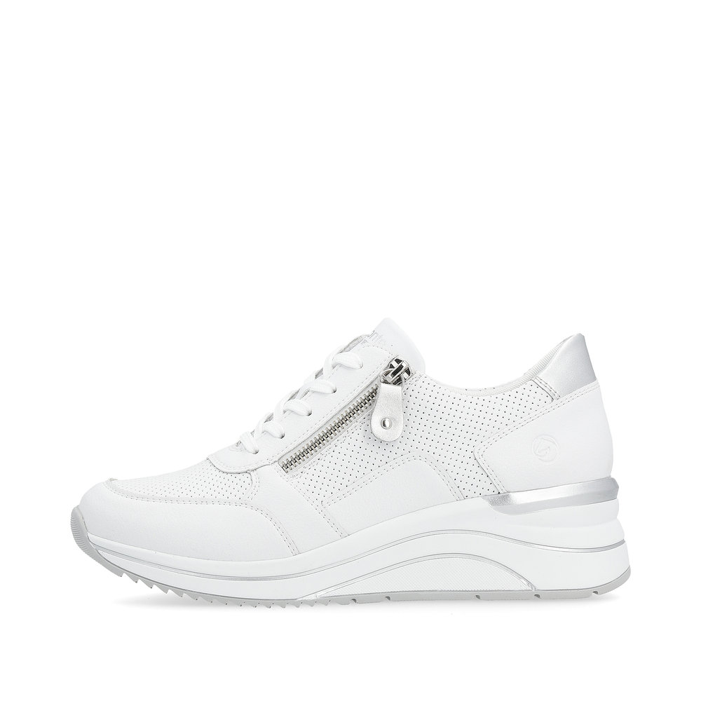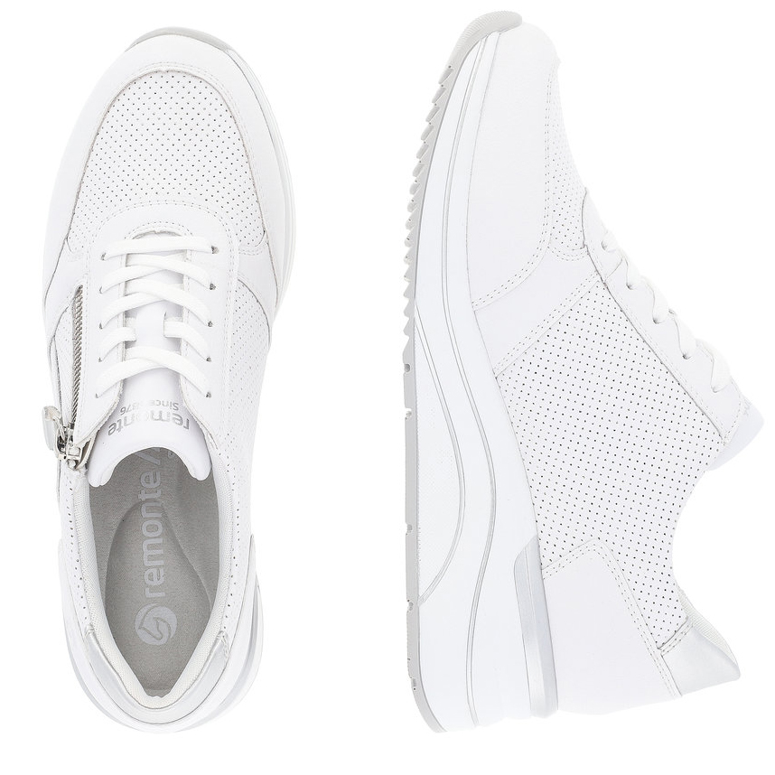Obuwie REMONTE to wyższa linia marki RIEKER, która charakteryzuje się wysoką jakością użytych materiałów. Te wyjątkowe tenisówki RIEKER dzięki ponadczasowemu wyglądowi i starannie wykonanej podeszwie podkreślą kobiecość każdej z Was. Do łatwego zakładania butów służy zamek błyskawiczny na podbiciu oraz sznurowadła, które pozwalają na idealne dopasowanie obuwia do Waszych potrzeb. Dzięki miękkiej, wyjmowanej wkładce oraz wyższej podeszwie poczujecie się komfortowo przez cały dzień. Model ten doskonale sprawdzi się zarówno podczas drogi do pracy, jak i na spacerze po mieście, a jego szerszy krój zapewnia wystarczająco dużo miejsca dla stopy.