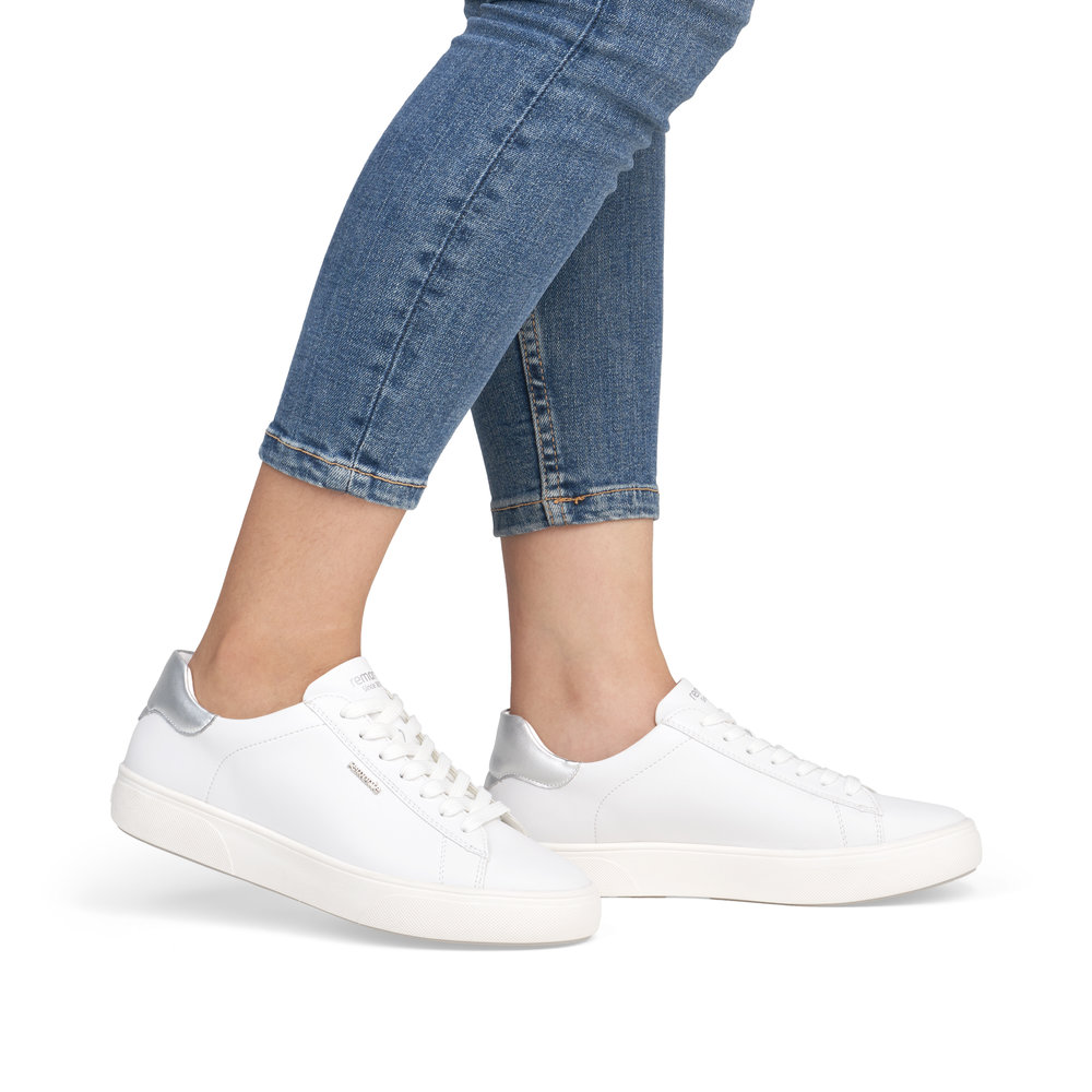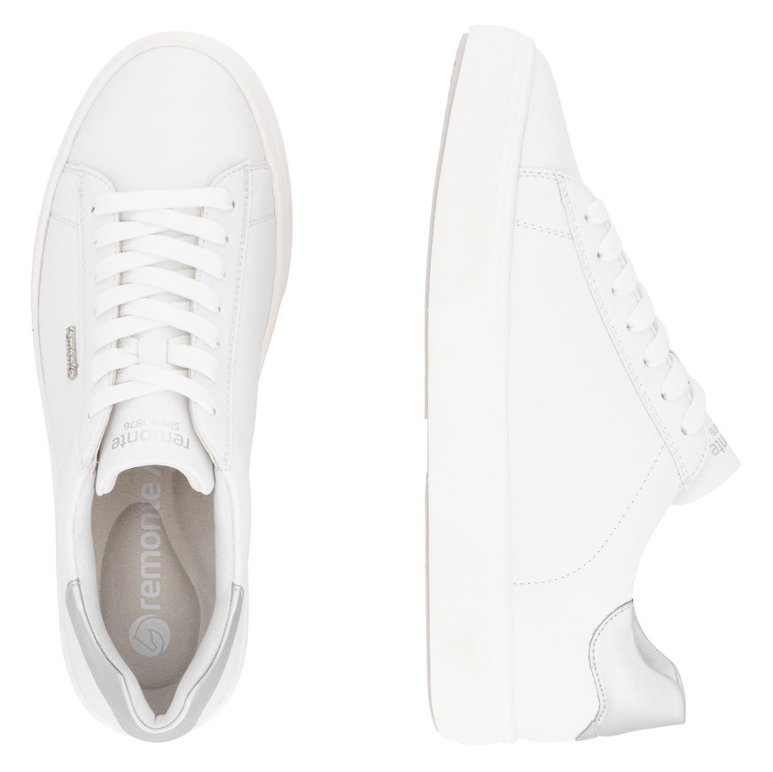 Obuwie REMONTE, ekskluzywna linia marki RIEKER, wyróżnia się starannym doborem wysokiej jakości materiałów wierzchnich oraz precyzyjnym wykonaniem. Te skórzane sneakersy w ponadczasowym białym kolorze wprowadzą do Twojej garderoby świeży, modny wygląd, a elegancki nadruk w delikatnych odcieniach oraz złoty detal na pięcie podkreślają unikalny charakter modelu. Praktyczne sznurowanie umożliwia łatwe dopasowanie do kształtu stopy, a miękka, wyjmowana wkładka zapewnia wyjątkowy komfort przez cały dzień. Podwyższona, lekka podeszwa nie tylko optycznie wydłuża sylwetkę, ale także gwarantuje stabilność i amortyzację podczas chodzenia. Te stylowe i wygodne sneakersy to idealny wybór na co dzień, kiedy chcesz czuć się komfortowo i jednocześnie wyglądać świetnie.