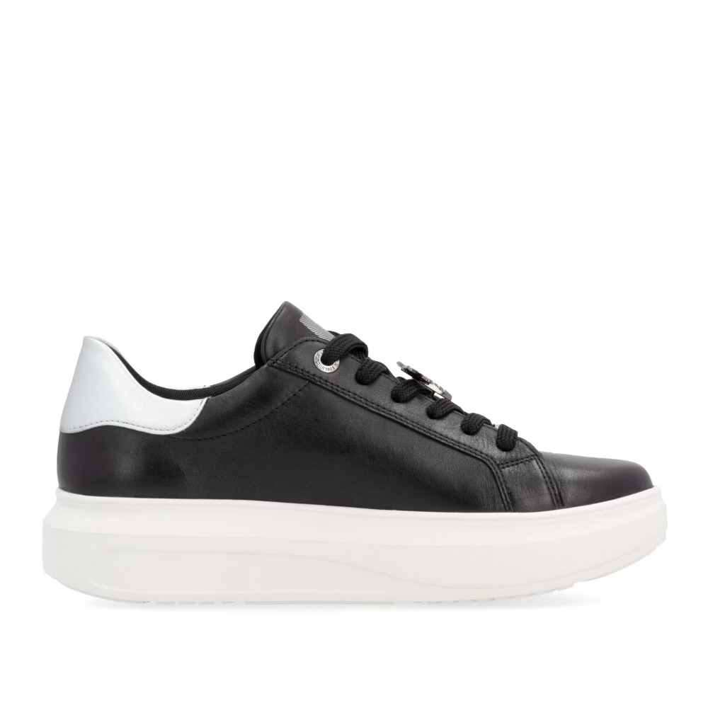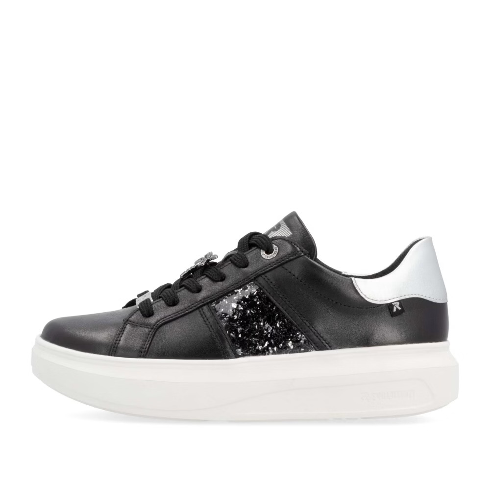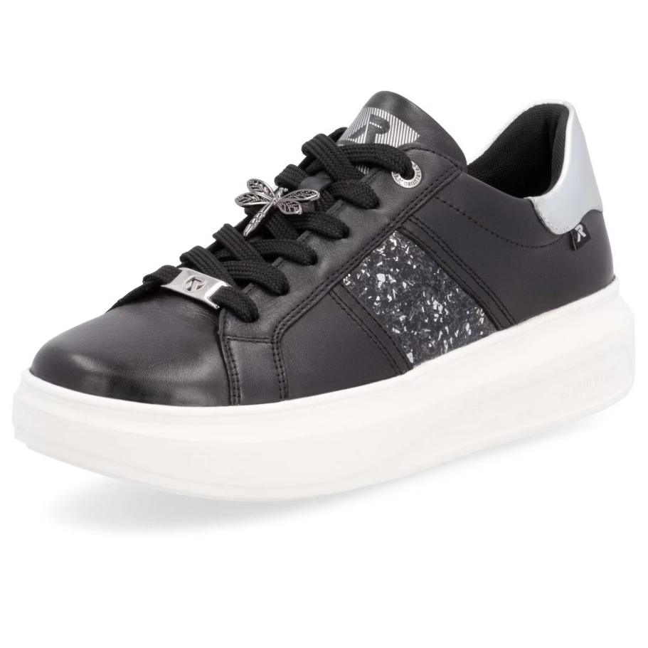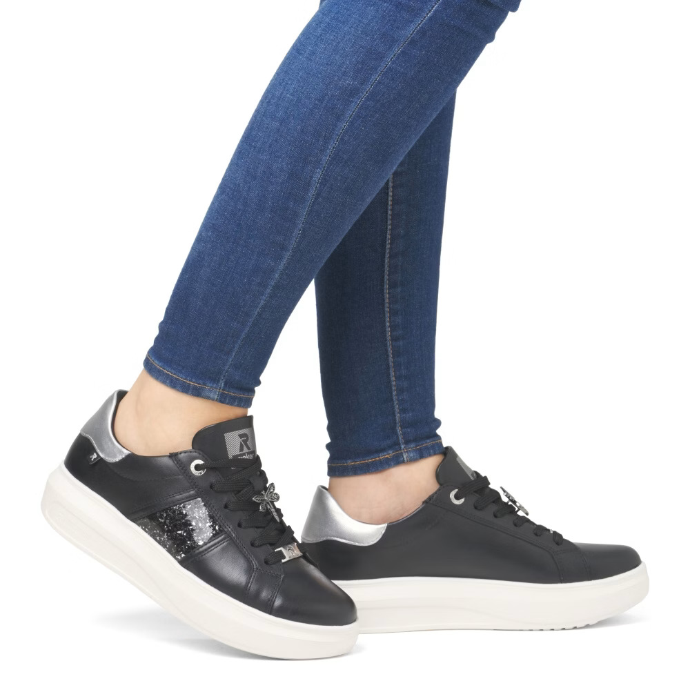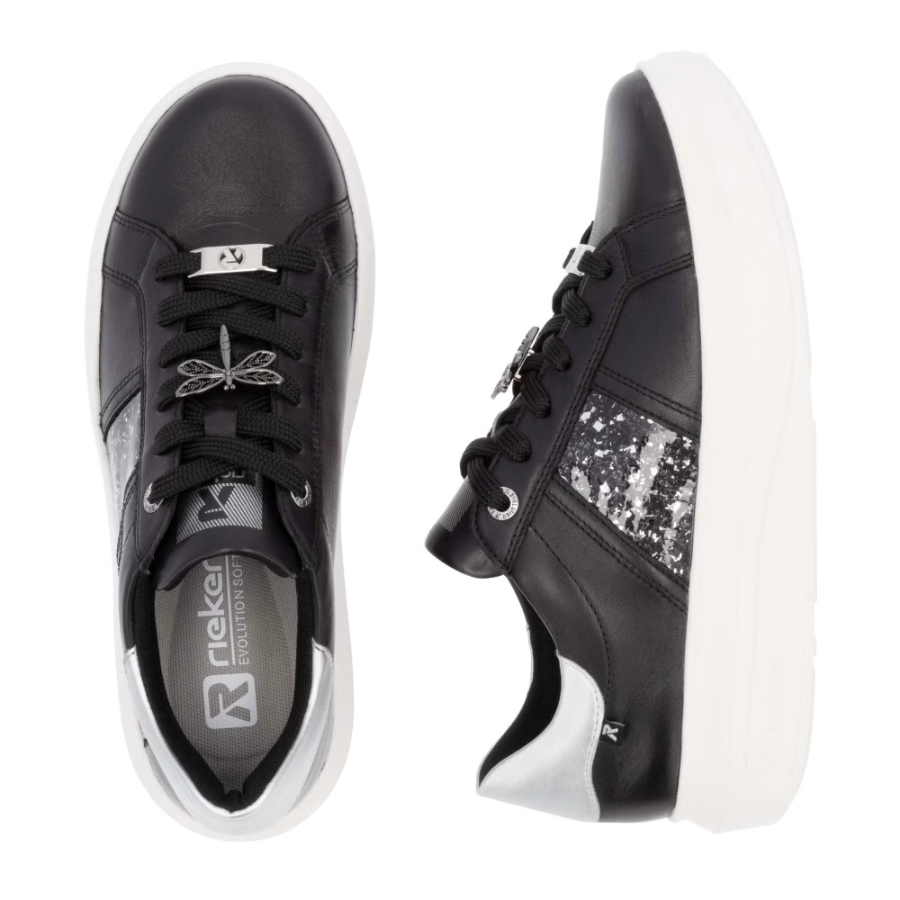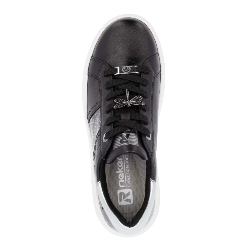 Rieker REVOLUTION przedstawia nową linię nowoczesnych butów sportowych, które kładą szczególny nacisk na komfort i wygodę nawet podczas całodziennego noszenia. Te wyjątkowe trampki podniosą każdą stylizację na wyższy poziom. Czarna skórzana cholewka zachwyca oryginalnym elementem designu z boku, metalicznym srebrnym obcasem i ozdobną ważką na sznurowadłach, dzięki czemu nie można przegapić tych butów. Sznurowanie pozwala dostosować buty do własnych potrzeb. Podczas chodzenia docenisz miękką wyjmowaną wkładkę, która zapewnia wygodę na każdym kroku. Gdziekolwiek się udasz, te buty będą Twoim niezawodnym i wygodnym towarzyszem. Technologia: RevolutionSoft: Unikalna wkładka, która zmiękcza stopę i idealnie dopasowuje się do jej kształtu. Wyjmowana wkładka: dla łatwej konserwacji i większego komfortu.