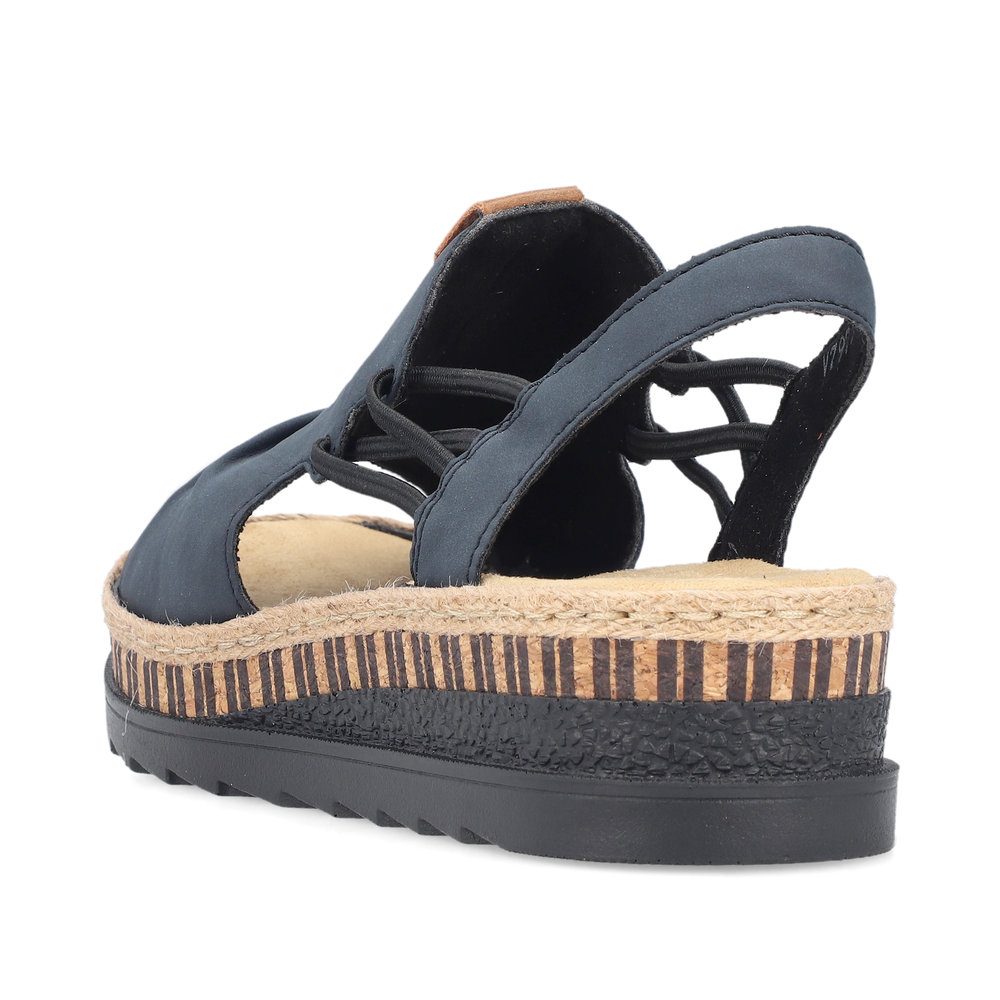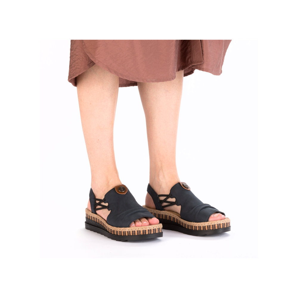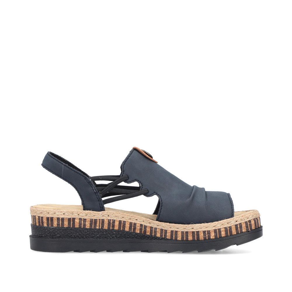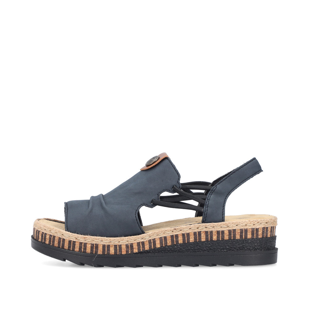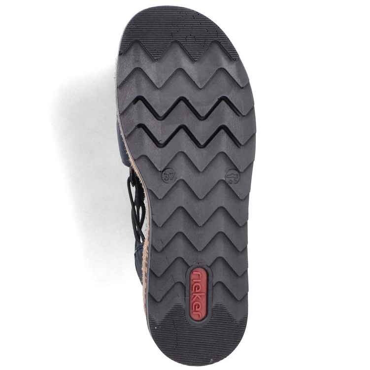Damskie sandały RIEKER V7972-14 w eleganckim odcieniu niebieskiego to doskonały wybór dla kobiet ceniących wygodę i styl. Ich wysokiej jakości cholewka ozdobiona subtelnymi detalami nadaje im nowoczesnego wyglądu, a elastyczne paski na podbiciu ułatwiają zakładanie i idealnie dopasowują się do stopy. Miękka wkładka oraz lekka, elastyczna podeszwa zapewniają komfort przez cały dzień. Te sandały świetnie komponują się zarówno z letnimi sukienkami, jak i casualowymi spodniami, sprawdzając się zarówno na spacery po mieście, jak i podczas wakacyjnych wyjazdów. Technologia Antistress gwarantuje lekkość, elastyczność i skuteczną amortyzację wstrząsów przy chodzeniu.
