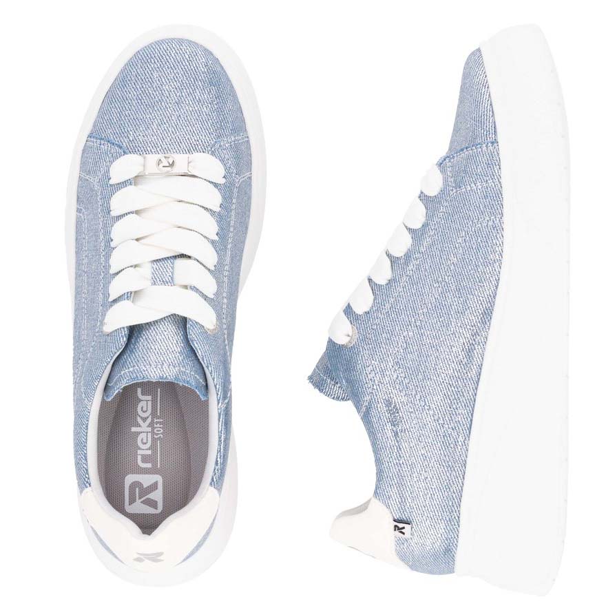 Ciesz się sportowym stylem z butami RIEKER, które łączą wyjątkowy design z maksymalnym komfortem. Elegancki niebieski kolor z subtelnym połyskiem nadaje obuwiu świeży, nowoczesny wygląd, a stylowe sznurowanie z ozdobną aplikacją logo podkreśla jego unikalny charakter. Wyjmowana wkładka zapewnia doskonałą wygodę nawet podczas całodniowego użytkowania, a podwyższona podeszwa gwarantuje stabilne wsparcie i amortyzację. Dzięki nowoczesnym technologiom ten model stanowi idealny wybór na co dzień, harmonijnie łącząc modny wygląd z wyjątkowym komfortem. RIEKER Sport to doskonałe połączenie nowoczesnego stylu i funkcjonalności, które towarzyszyć Ci będzie na każdym kroku.