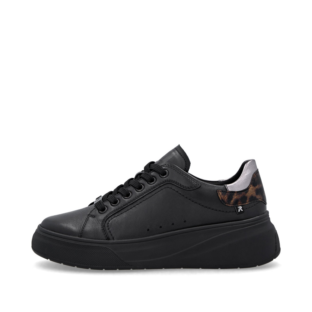 Te stylowe tenisówki RIEKER z kolekcji Sport to niezawodny wybór na każdy dzień – niezależnie od tego, czy wybierasz się do pracy, miasta czy na spacer. Elegancka, czarna cholewka została ozdobiona z tyłu efektowną aplikacją z delikatnym wzorem i metalicznym połyskiem, dzięki czemu buty od razu przyciągają wzrok. Klasyczne sznurowanie pozwala idealnie dopasować but do stopy, a miękka, wyjmowana wkładka Rieker Soft zapewnia komfort przez cały dzień. Technologia Antistress łagodzi wstrząsy i gwarantuje miękki krok, a wyższa podeszwa tłumi uderzenia i daje stabilne oparcie nawet podczas dłuższego noszenia. Dzięki lekkiej konstrukcji i zastosowaniu materiałów w technologii RIEKER Light możesz liczyć na maksymalną wygodę bez kompromisów. Połączenie nowoczesnego stylu i praktycznych rozwiązań sprawia, że te tenisówki to idealna propozycja na co dzień dla każdego, kto ceni wygodę i wygląd.