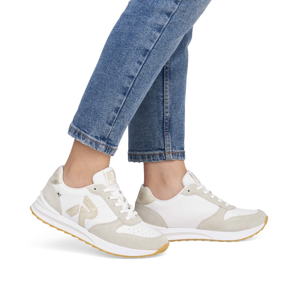 Białe skórzane trampki damskie Rieker W2401-81 łączą w sobie styl, wygodę i jakość. Cholewka wykonana z miękkiej skóry naturalnej zapewnia nie tylko elegancki wygląd, ale także wysoką trwałość i dopasowanie do kształtu stopy. Dzięki lekkiej konstrukcji i przewiewnemu wykończeniu idealnie nadają się do noszenia przez cały dzień, zarówno w mieście, w pracy, jak i podczas aktywności rekreacyjnych. Buty wyposażone są w praktyczne sznurowanie umożliwiające łatwą regulację oraz elastyczną podeszwę, która amortyzuje wstrząsy i zapewnia stabilność na różnych nawierzchniach. Rieker W2401-81 spełnia wysokie standardy komfortu, a technologia antystresowa zapewnia lekki i wygodny krok. Świetny wybór do codziennych eleganckich stylizacji.