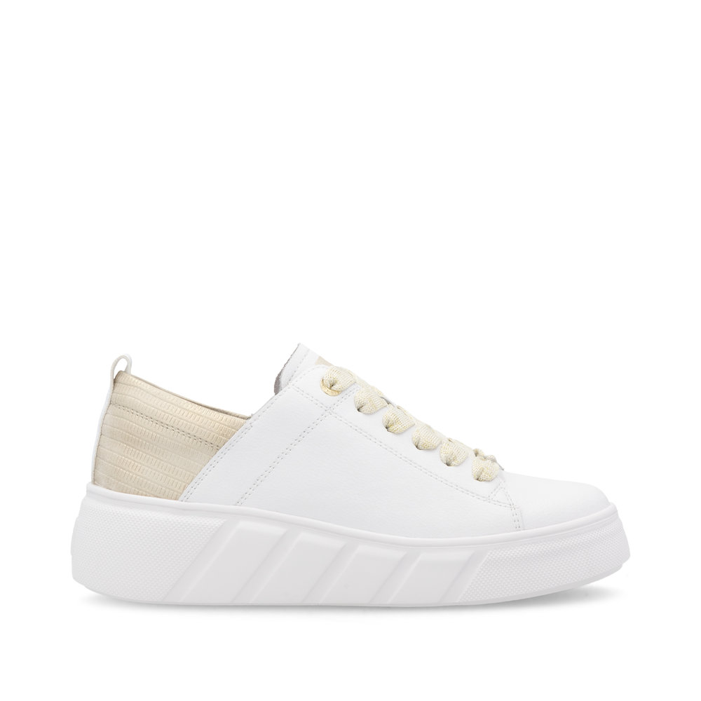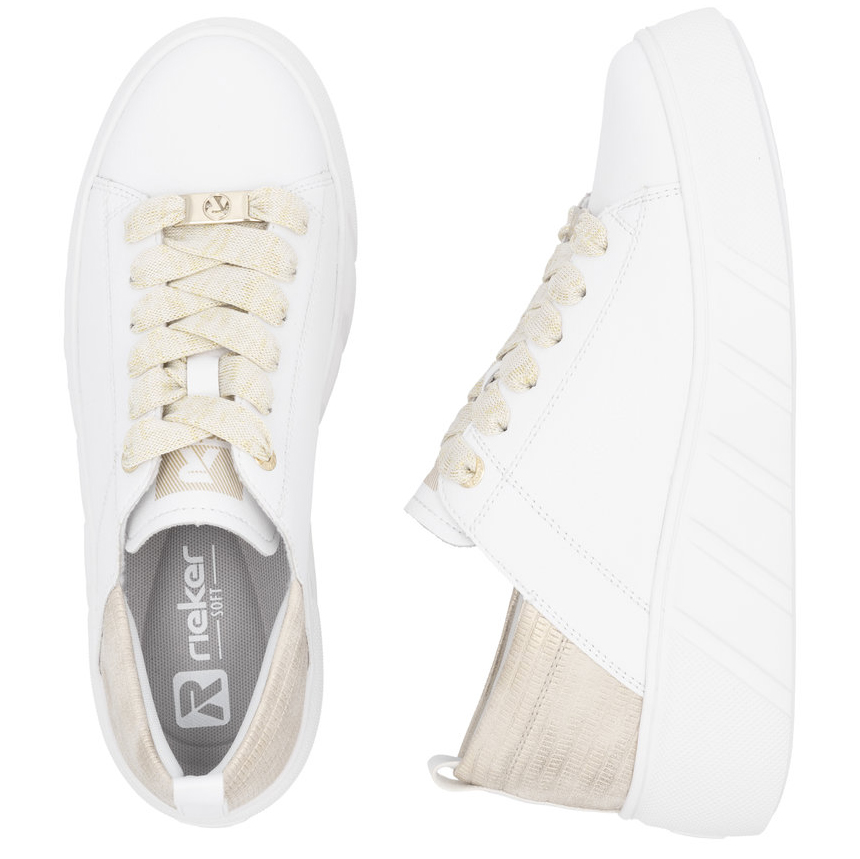 Ciesz się sportowym stylem z butami marki RIEKER, które łączą prostotę z nowoczesnym designem. Te białe tenisówki wyróżniają się stylowym detalem na pięcie, dodającym im niepowtarzalnego charakteru i modnego akcentu. Solidna biała podeszwa nie tylko uzupełnia ich dynamiczny wygląd, ale także skutecznie amortyzuje wstrząsy, zapewniając komfort przy każdym kroku. Sznurowanie z wyrazistą sznurówką gwarantuje stabilne dopasowanie, a miękka, wyjmowana wkładka zwiększa wygodę noszenia. Ten model to idealny wybór na co dzień dla tych, którzy cenią sobie styl i komfort. Połączenie nowoczesnego wyglądu i funkcjonalnych technologii sprawia, że buty RIEKER Sport to doskonała opcja na każdą okazję.
