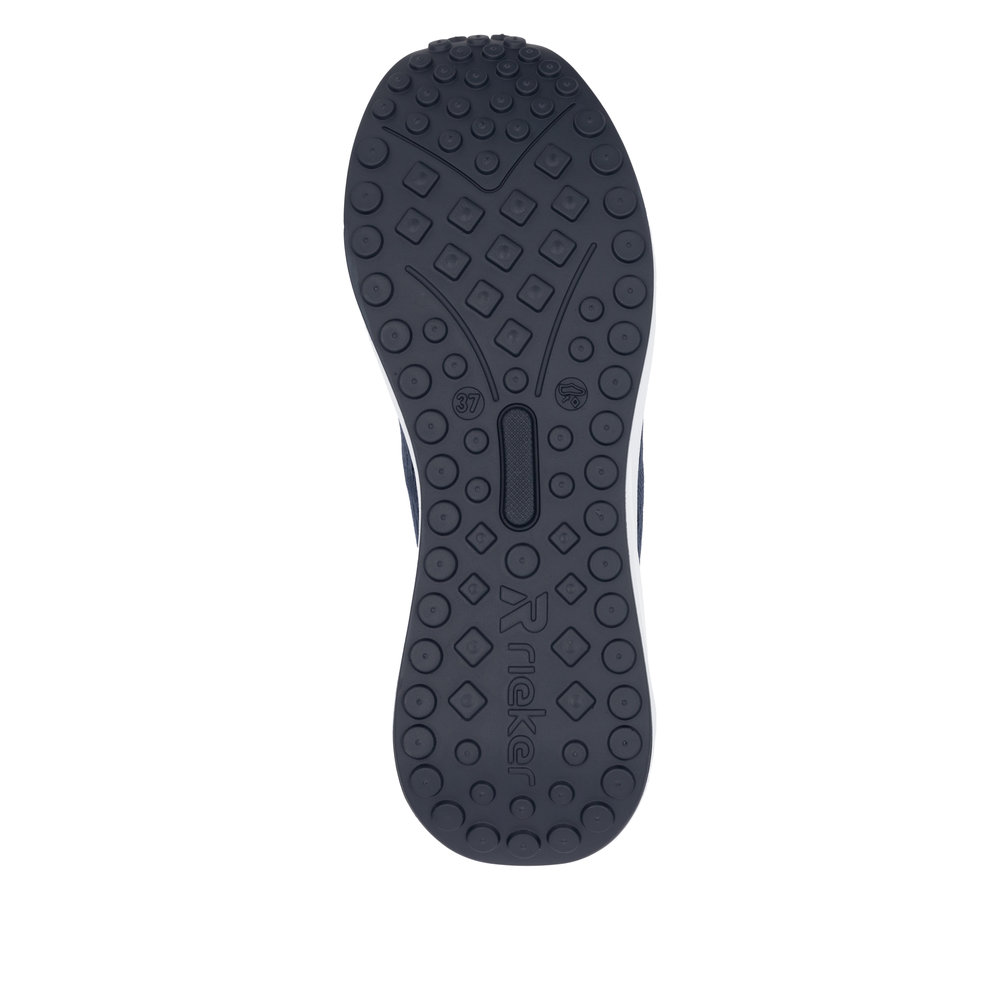 Ciesz się sportowym stylem i funkcjonalnością dzięki niebieskim sneakersom RIEKER, które doskonale łączą nowoczesny wygląd z wygodą na najwyższym poziomie. Przewiewna tekstylna cholewka zapewnia komfort nawet w ciepłe dni, a wyrazista biała podeszwa z amortyzującą wkładką powietrzną gwarantuje stabilność i skuteczne tłumienie wstrząsów podczas chodzenia. Klasyczne sznurowanie zostało uzupełnione designerskim detalem, który podkreśla oryginalny charakter butów. Wyjmowana miękka wkładka Rieker Soft daje dodatkową wygodę i wsparcie. Dzięki technologii Antistress obuwie jest lekkie, elastyczne i doskonale tłumi uderzenia. Dodatkowym atutem jest wykonanie wegańskie – bez użycia materiałów pochodzenia zwierzęcego. Model RIEKER Sport to idealna propozycja na każdy aktywny dzień i swobodne wyjścia.