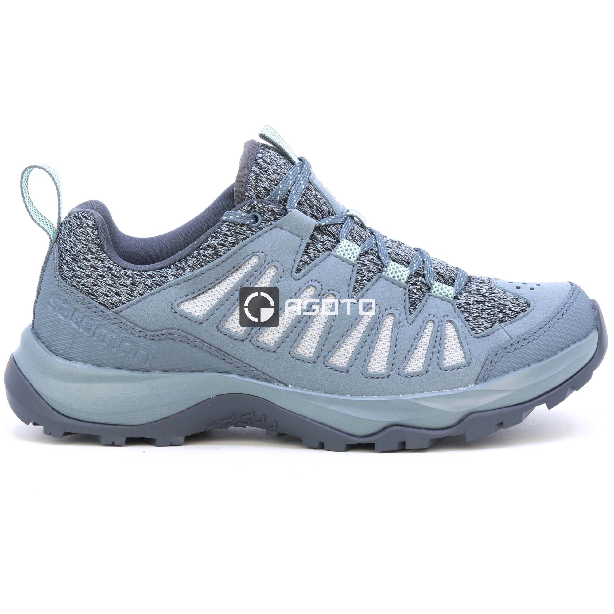 Damskie buty turystyczne Salomon EOS AERO W w stylowym kolorze Stormy Weather to doskonały wybór dla kobiet szukających lekkiego, oddychającego i wygodnego obuwia na piesze wędrówki. Przewiewna cholewka z siateczki zapewnia doskonałą wentylację, a amortyzowana podeszwa środkowa zwiększa komfort na długich trasach. Podeszwa Contagrip® gwarantuje przyczepność na zróżnicowanym terenie – od górskich szlaków po leśne ścieżki. Idealne buty dla aktywnych kobiet, które cenią sobie komfort, funkcjonalność i nowoczesny design od sprawdzonej marki Salomon.