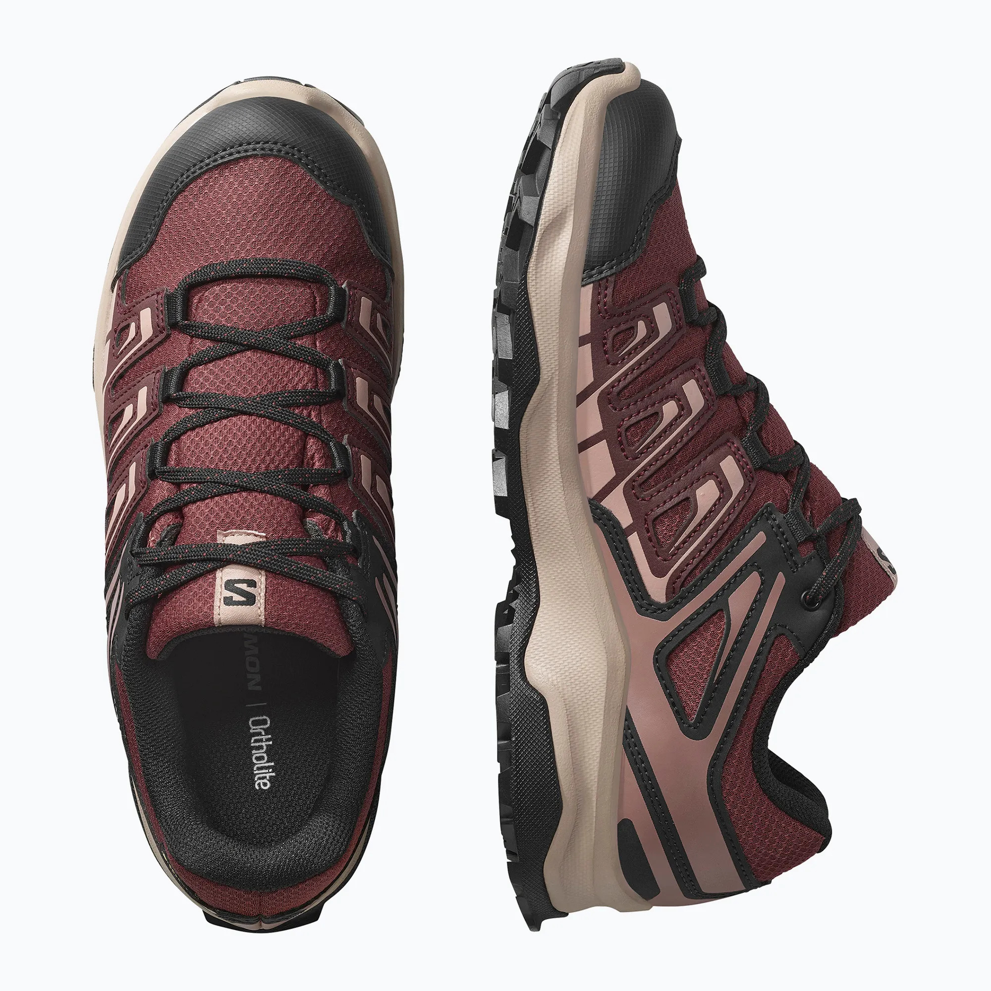 SALOMON Exterga GTX bordowe damskie buty outdoorowe zostały stworzone z myślą o kobietach, które oczekują niezawodności, wydajności i stylu podczas aktywności na świeżym powietrzu. Dzięki membranie Gore-Tex® obuwie jest całkowicie wodoodporne, a jednocześnie bardzo oddychające, co zapewnia suchość i komfort nawet podczas długich wypraw w deszczu lub po mokrym terenie. Podeszwa Contagrip® gwarantuje doskonałą przyczepność i stabilność na różnych nawierzchniach – od skalistych ścieżek po miękkie, leśne drogi. Ergonomiczny krój, wysokiej jakości materiały i solidna konstrukcja zapewniają trwałość i wygodę noszenia. Stylowy bordowy kolor nadaje butom nowoczesny wygląd i doskonale komponuje się z ich funkcjonalnością, dzięki czemu są idealnym wyborem na trekking, piesze wycieczki lub codzienne spacery po naturze.