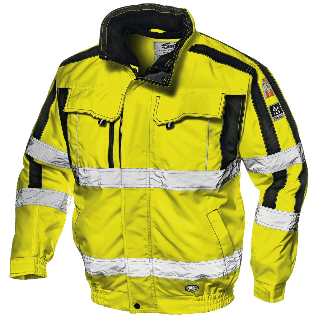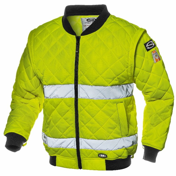 Bunda 4v1 ze 100% polyesteru s polstrováním 180 g / m2. Vnější část má oboustranný zipový uzávěr, větruodolnou klapku se zapínáním na knoflíky a suchý zip, kapuci se stahovací šňůrkou a zapínání na druk se suchým zipem, vnitřní límec v fleecu; rukávní kapsy, vysoce voděodolné kapsy s klopami a suchým zipem, extra náprsní kapsa se zapínáním na zip a skrytý držák na odznaky, elastický pas a elastické nastavitelné manžety se suchým zipem. Vnitřní bunda má odepínací rukávy se zipem a knoflíky, kapsy na rukávy, elastické pletené manžety a černé vložky. EN 343 Odolnost vůči vodě: 3, Odolnost proti vodní páře: 1, EN ISO 20471 Třída: 3