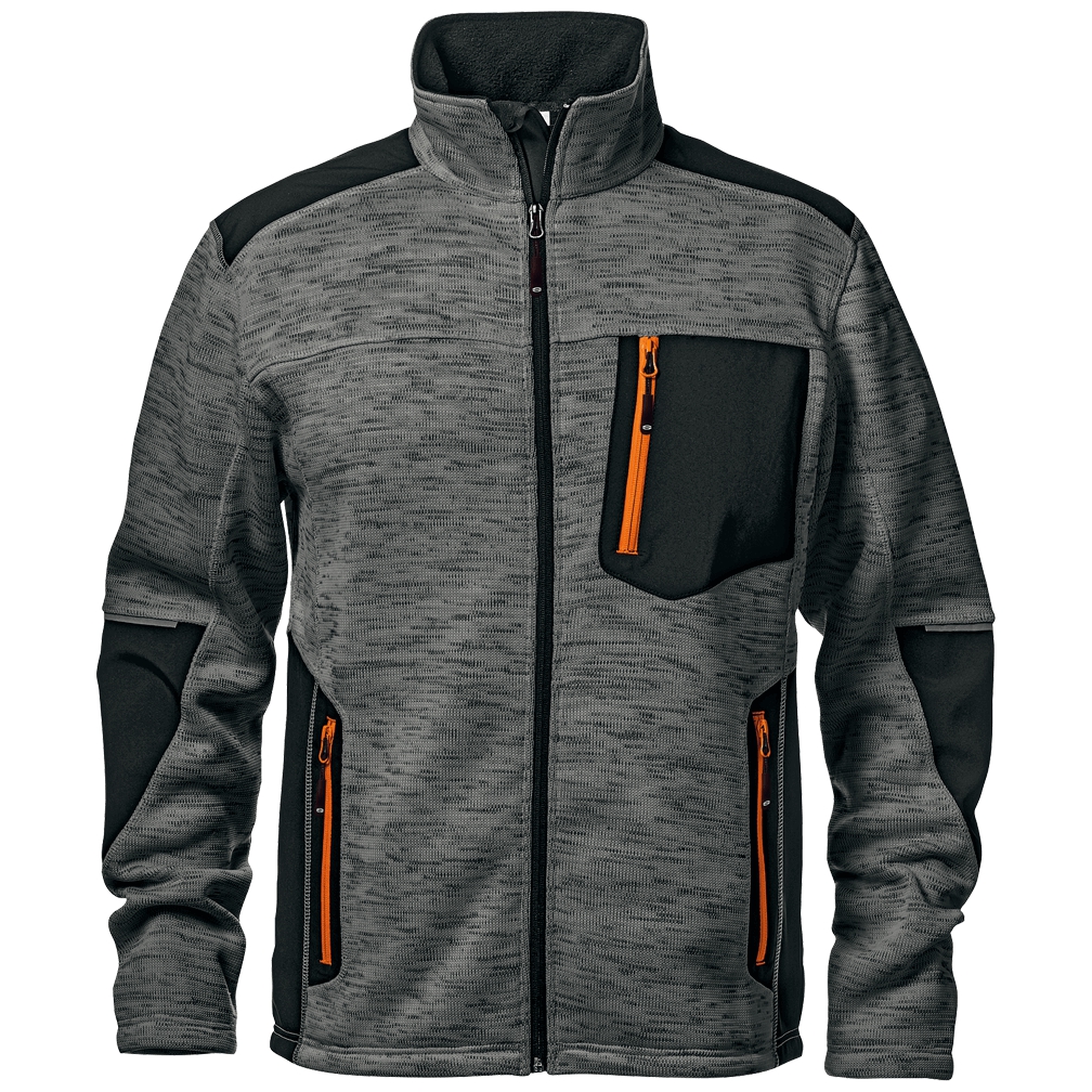 Ta techniczna bluza w formie kurtki została wykonana z wytrzymałego poliestru o gramaturze 550 g/m2, uzupełnionego o wstawki softshellowe, które zwiększają odporność i funkcjonalność odzieży. Centralne zapięcie na zamek zostało wyposażone w wewnętrzną wiatroodporną listwę i klapę, które skutecznie chronią przed przenikaniem chłodu. Praktyczny układ kieszeni obejmuje kieszeń na piersi z tkaniny softshell zapinaną na zamek oraz dwie boczne kieszenie z zamkami zabezpieczonymi przed wplątywaniem, co pozwala bezpiecznie przechowywać drobiazgi także w ruchu. Kołnierz od wewnątrz podszyto ciepłym polarem, co zwiększa komfort noszenia. Elementy odblaskowe umieszczone w newralgicznych miejscach zapewniają lepszą widoczność przy słabym oświetleniu, natomiast ergonomicznie profilowane rękawy oferują większą swobodę ruchów. Dolny brzeg można dopasować za pomocą wewnętrznego ściągacza, dzięki czemu kurtka lepiej przylega i chroni przed wiatrem. Ten model stanowi idealne połączenie funkcjonalności, wygody i elementów bezpieczeństwa do codziennej pracy i aktywności outdoorowych.