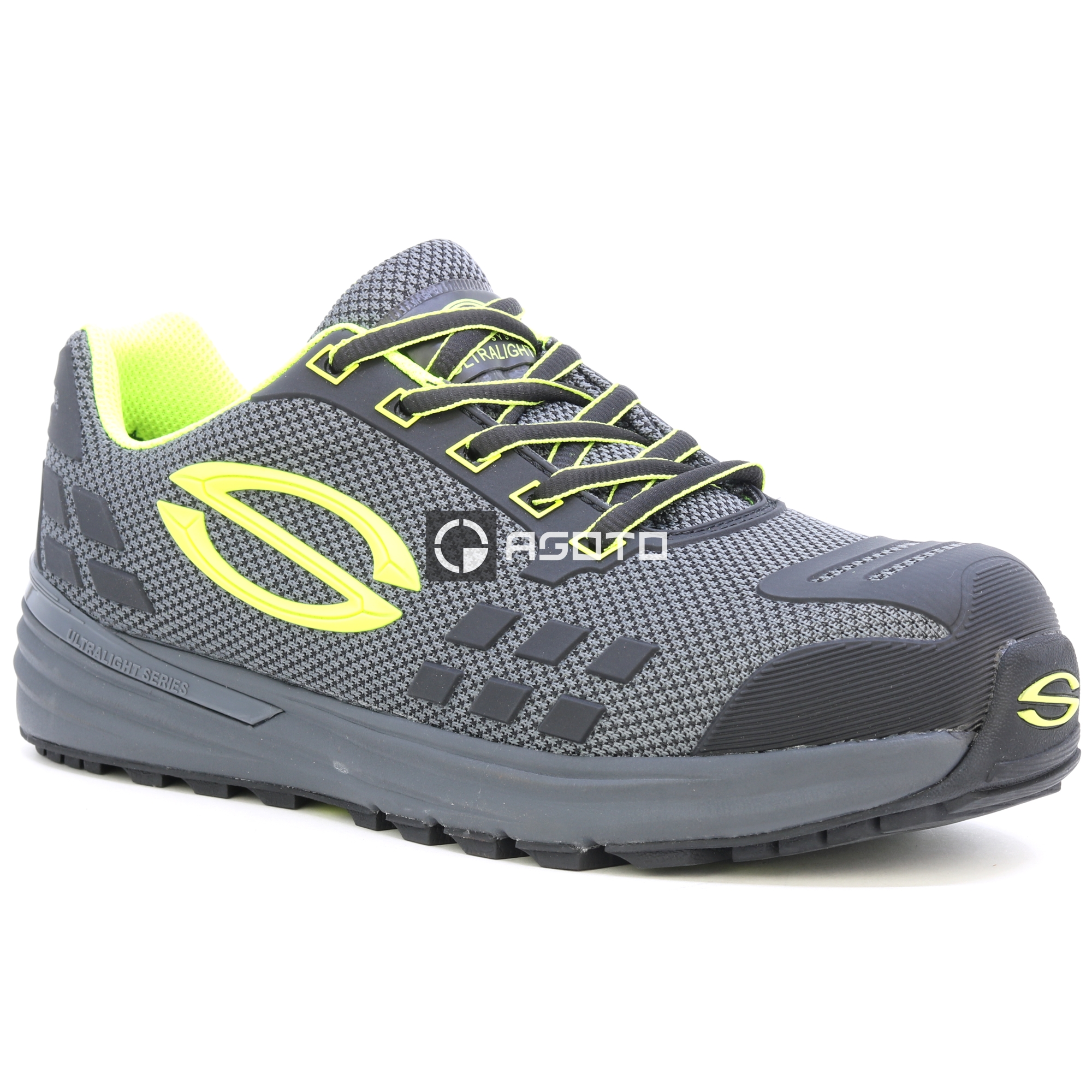 Buty robocze z najwyższej jakości bezszwową cholewką wykonaną z siateczki poliestrowej, odpornej na przetarcia i rozdarcia. Żadnego metalu. Podnosek z włókna szklanego i kompozytowa podeszwa środkowa o stałej grubości 4 mm. S1P.