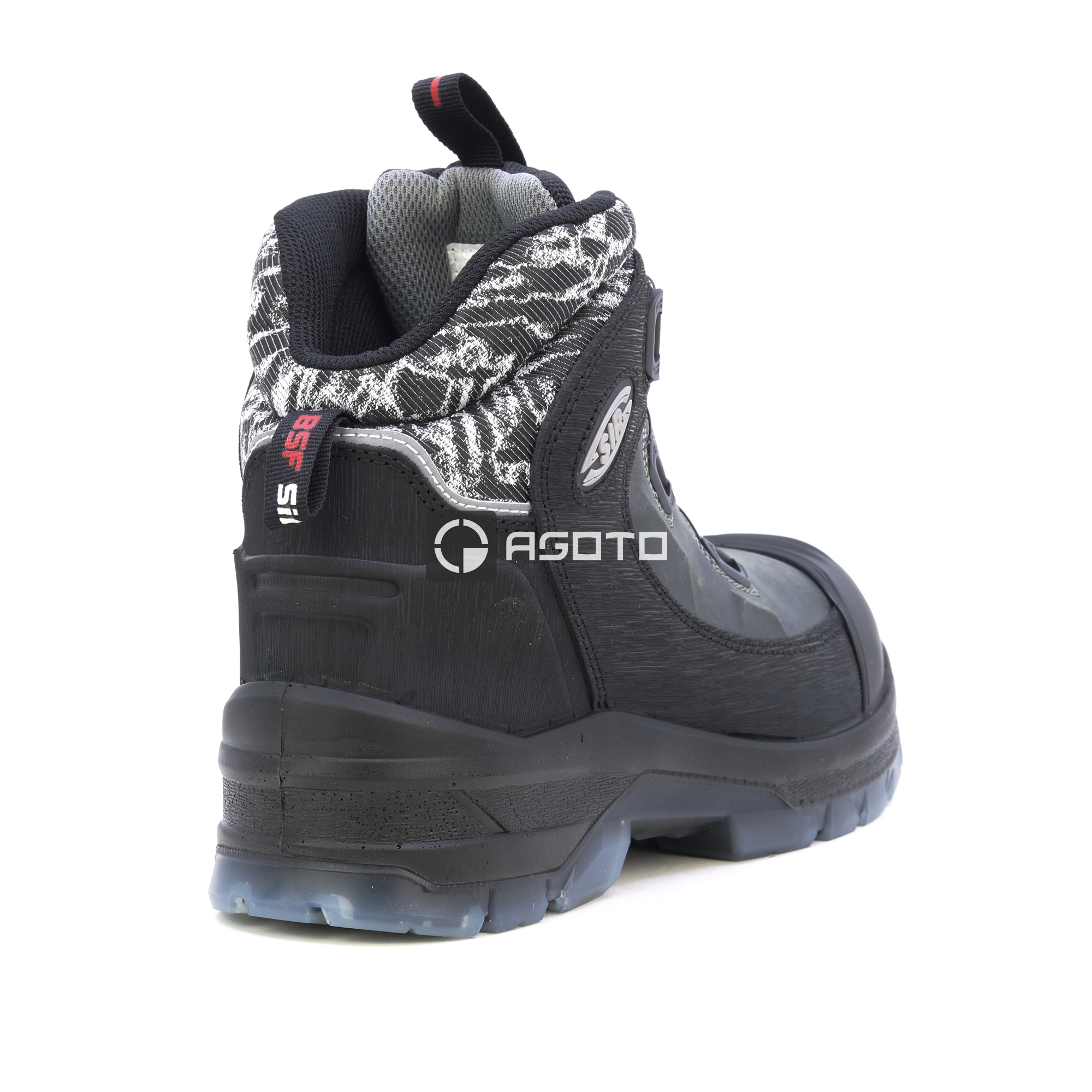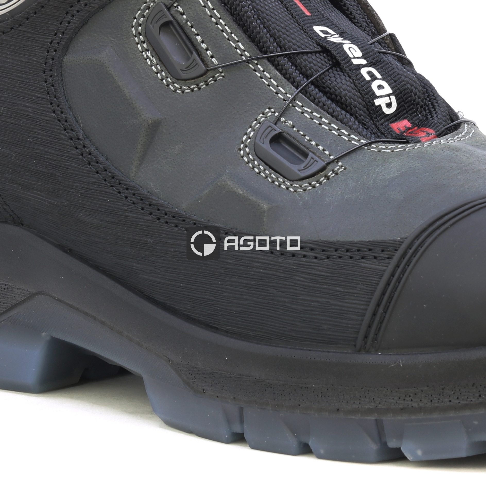 Buty za kostkę z wytrzymałą cholewką wykonaną z bydlęcej skóry Crazy Horse Full Grain i zapięciem Freelock z systemem stalowej linki zostały zaprojektowane z myślą o maksymalnym komforcie i bezpieczeństwie. Pasek na kostkę wykonano z technicznej tkaniny, a język z wytrzymałego materiału oxford z wszytymi klinami bocznymi, które zapewniają doskonałe dopasowanie do stopy. Obuwie wyposażone jest w kompozytowy podnosek z włókna szklanego oraz kompozytową podeszwę środkową typu PS o stałej grubości. Podeszwa PU/TPU została zaprojektowana ze specjalnym samoczyszczącym bieżnikiem, który skutecznie odprowadza płyny, a jej środkowa część z szerokim rowkiem zwiększa stabilność podczas korzystania z drabin. Antypoślizgowe wykończenie SR zapewnia bezpieczeństwo na śliskich powierzchniach. Wkładka Fly Foam z pianki poliuretanowej o właściwościach amortyzujących gwarantuje wygodę nawet podczas długotrwałego użytkowania. Posiada zmienną grubość – 4 mm z przodu i 9 mm w okolicy pięty – i jest laminowana poliestrem z antystatyczną powłoką. Podszewka 3D-TEX z poliestru została specjalnie zaprojektowana, aby umożliwić lepszą wentylację stopy i zmniejszyć efekt pocenia się. Obuwie charakteryzuje się solidnym i nowoczesnym designem, który sprawdzi się w wymagającym terenie i na śliskich powierzchniach, szerokim krojem zapewniającym maksymalny komfort i przestrzeń dla stopy, podeszwą środkową z poliuretanu BASF oferującą wysoką amortyzację, lekkość i wytrzymałość, bieżnikiem TPU od BASF gwarantującym długą żywotność i doskonałą przyczepność oraz nakładką TPU chroniącą przednią część skóry przed uderzeniami. Zapięcie Freelock jest ponadto łatwe w użyciu nawet w rękawicach. Produkt został zaprojektowany i wyprodukowany zgodnie z rozporządzeniem (UE) 2016/425 oraz jego późniejszymi zmianami.