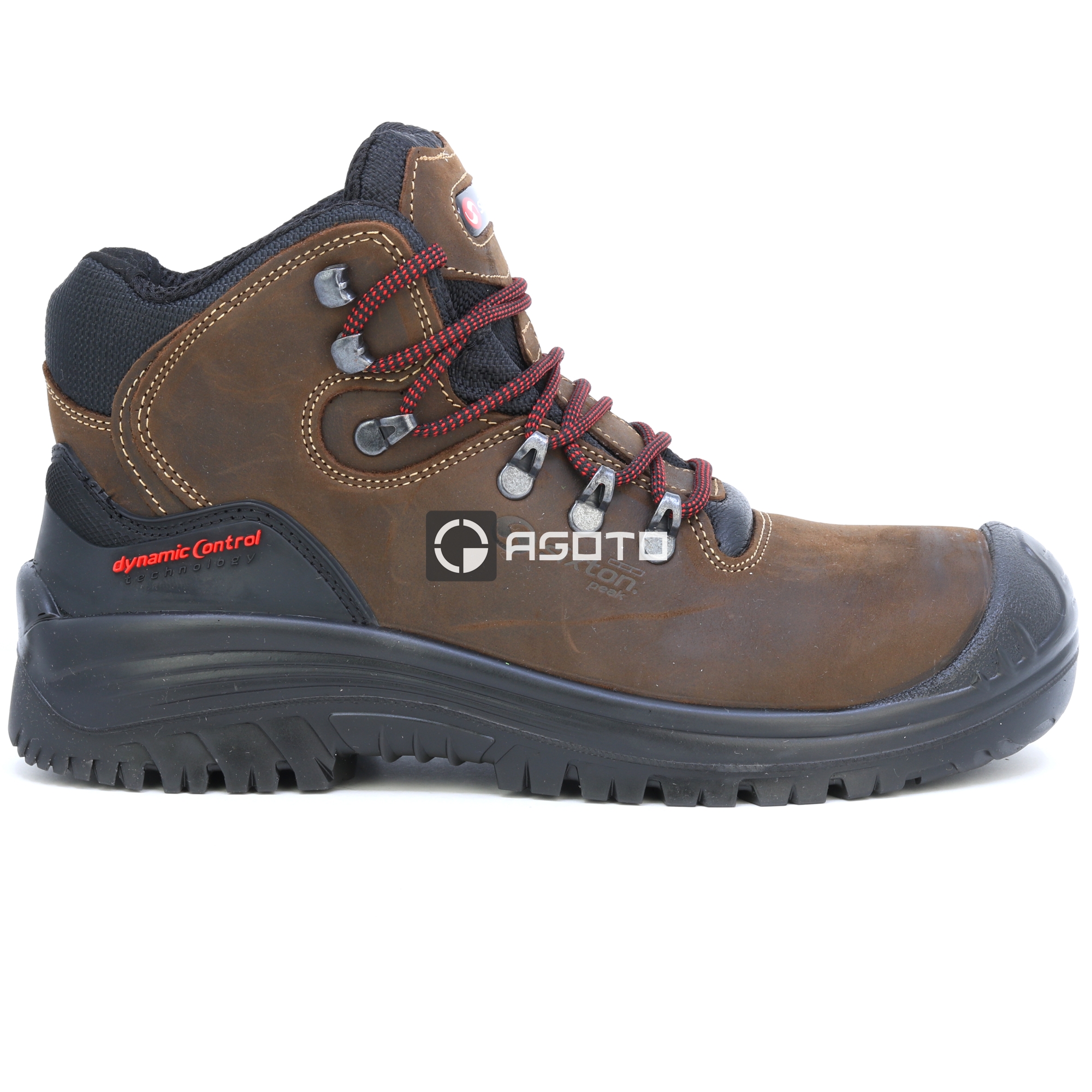 Skórzane buty robocze włoskiej marki Peak o stopniu ochrony S3 zostały zaprojektowane tak, aby spełniać najsurowsze wymagania stawiane obuwiu roboczemu. Czubek buta zawiera but kompozytowy z wkładką kevlarową zapewniającą skuteczną ochronę przed uderzeniami mechanicznymi. Zaletą kasku kompozytowego jest właściwość zapobiegająca przegrzaniu w miesiącach letnich i jednocześnie pozwalająca na utrzymanie komfortu cieplnego w chłodne dni. Wierzchnia część buta wykonana została z wysokiej jakości skóry licowej. Wnętrze buta wykończono oddychającą tkaniną, która pozwala stopie swobodnie oddychać podczas dużych obciążeń. Podeszwa wykonana z materiału antystatycznego i olejoodpornego. Obuwie robocze Peak zachwyci klientów poszukujących jakości i komfortu w obuwiu. Obróbka antystatyczna ESD zapewnia ochronę podczas pracy w miejscach, gdzie istnieje możliwość wystąpienia wyładowań elektrostatycznych. Podeszwa HRO wykonana jest z materiału antystatycznego i olejoodpornego oraz jest odporna na ciepło kontaktowe. EN ISO 20345 – OBUWIE OCHRONNE