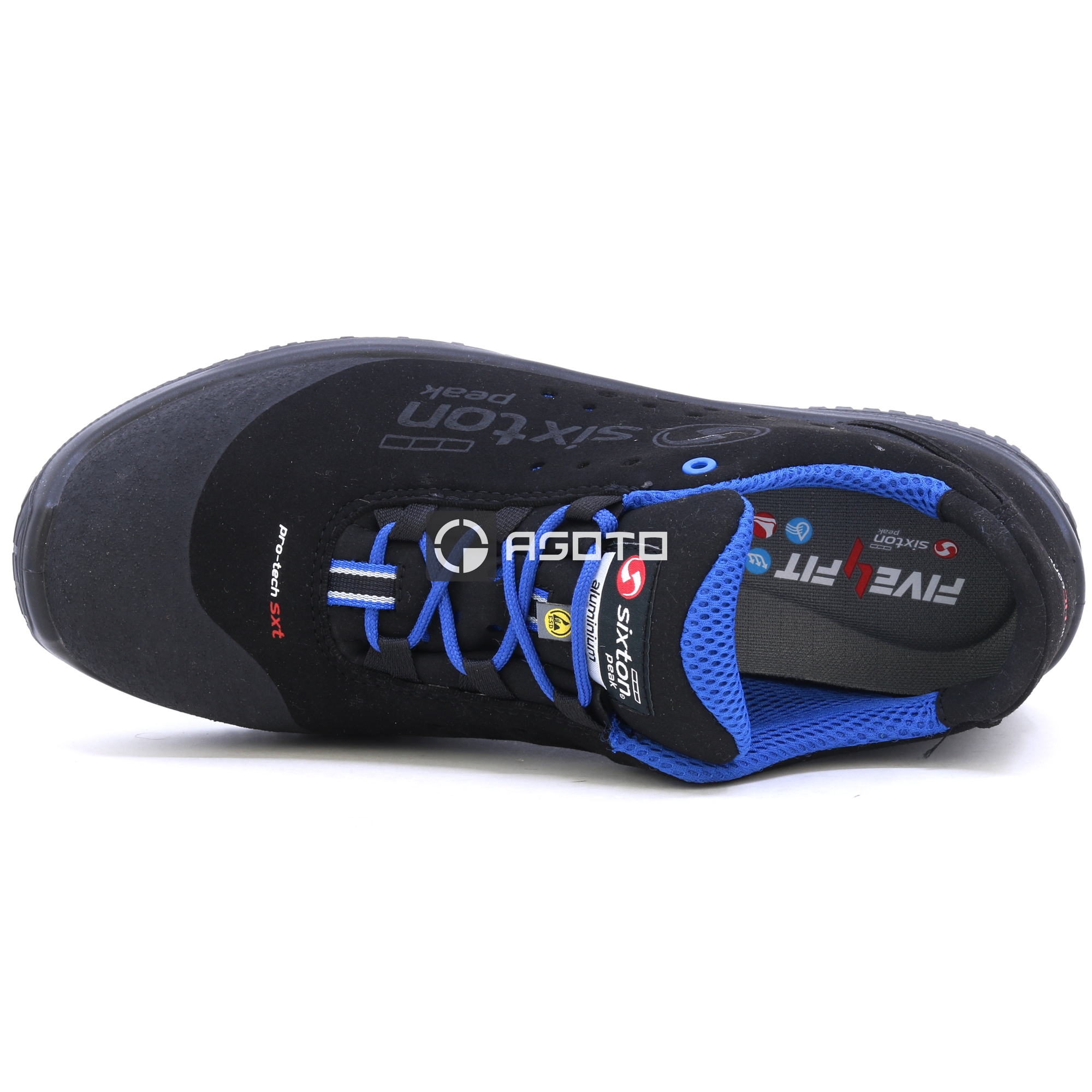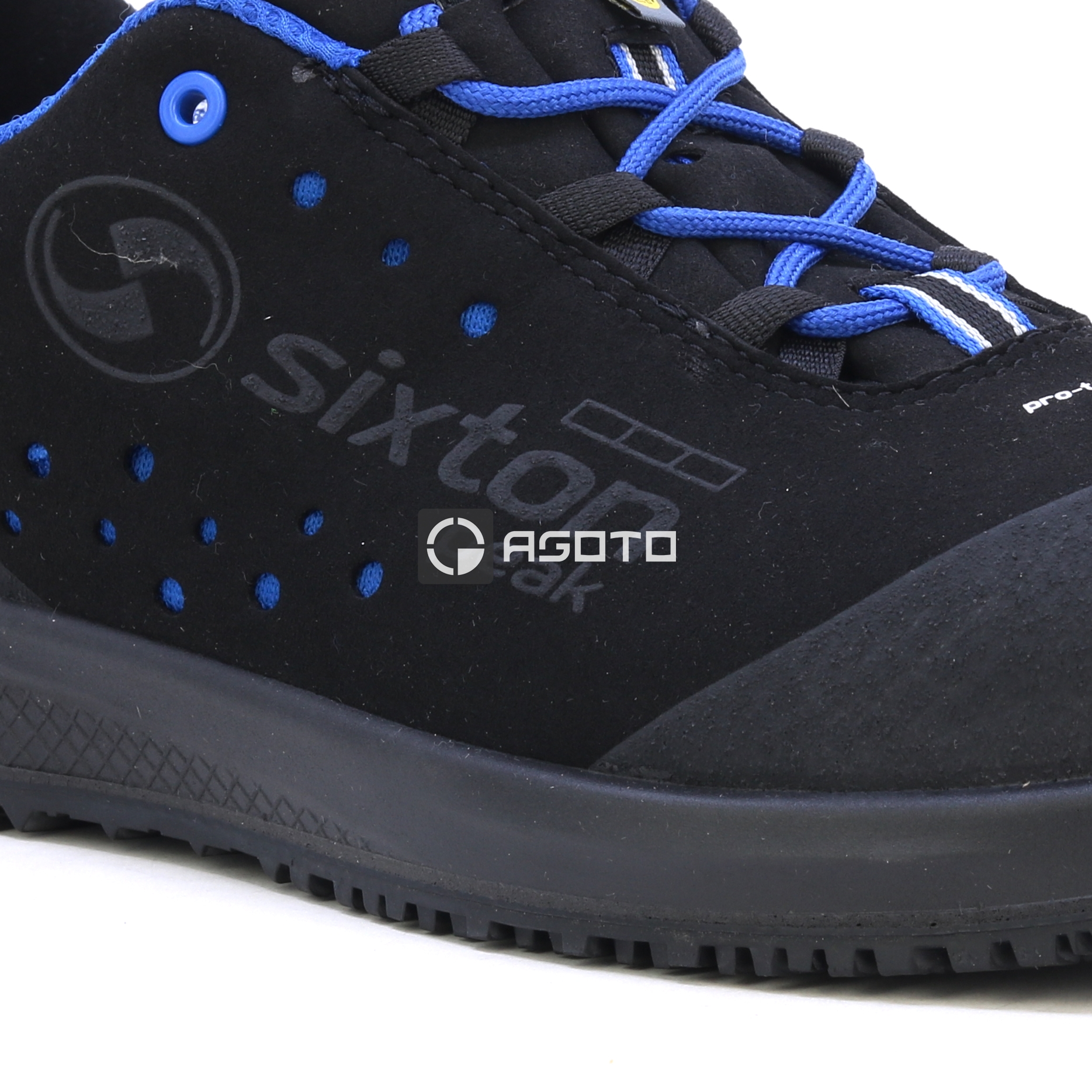 Obuwie ochronne Sixton Cuban S1P ESD oferuje doskonałe połączenie ochrony i komfortu. Wytrzymała cholewka MicroFiber Suede o grubości 1,6-1,8 mm została wyposażona w podwójną antypoślizgową mikrofibrę odporną na 200 000 cykli, która zapewnia stopie stabilność i komfort użytkowania. Technologie świetlne Digitex Airy i Pro-tech SXT przyczyniają się do jego długiej żywotności. Wyściółka 3D Air o wadze 320 gramów zapewnia optymalną oddychalność. Wymienna wkładka Five 4 Fit zapewnia anatomiczne wsparcie i wygodę dzięki wysoce oddychającej, chłonnej wielowarstwowej strukturze i piance z pamięcią kształtu. Końcówka ochronna Alu SXT 2.0 o zmiennej grubości jest odporna na uderzenia do 200 J, natomiast wkładka KX Antiperforation PS chroni przed perforacją z siłą do 1100 N przy gwoździu stożkowym skróconym o 3,0 mm. Podeszwa z lekką podeszwą środkową z PU i gumową podeszwą VIBRAM „COLTELLO DESIGN” zapewnia doskonałą przyczepność na śliskich i mokrych nawierzchniach. Zaawansowane technologie Dynamic HC Control i StabilActive zapewniają stabilność boczną i skrętną, wspierają naturalny ruch stopy i zwiększają komfort. Obuwie zostało zaprojektowane zgodnie z normami IEC EN 61340-5-1:2016, IEC EN 61340-4-3:2018 i IEC EN 61340-4-5:2018, skutecznie rozpraszając elektryczność statyczną i chroniąc wrażliwy sprzęt.