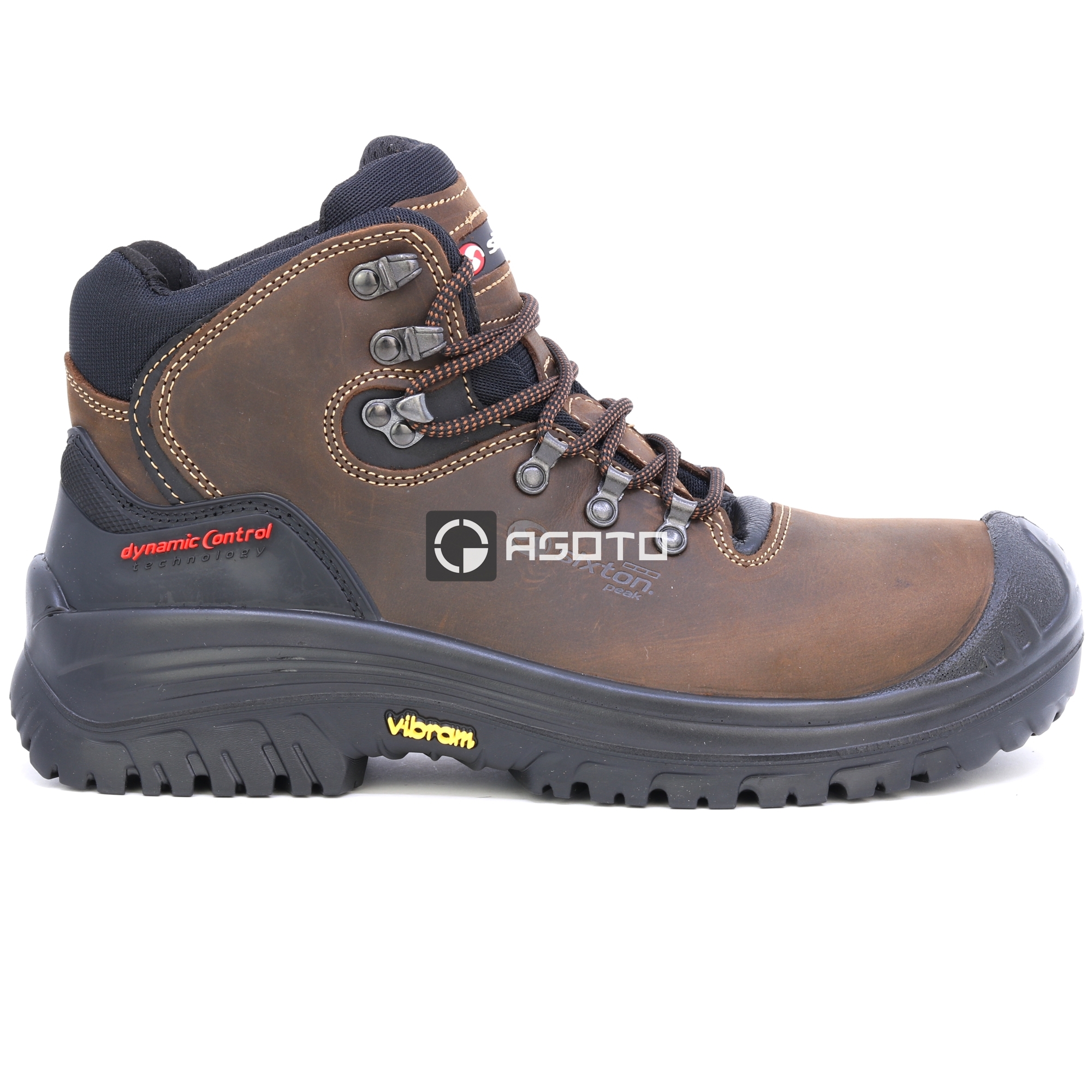 Skórzane buty robocze włoskiej marki Peak o stopniu ochrony S3 zostały zaprojektowane tak, aby sprostać najbardziej rygorystycznym wymaganiom stawianym obuwiu ochronnemu. Czoło buta zawiera kompozytowy podnosek z wkładką kevlarową, zapewniający skuteczną ochronę przed uderzeniami mechanicznymi. Zaletą kompozytowego podnoska jest właściwość zapobiegająca przegrzewaniu się w miesiącach letnich, a jednocześnie utrzymanie komfortu termicznego w chłodne dni. Cholewka buta jest wykonana z wysokiej jakości licowej skóry. Wnętrze obuwia jest wyposażone w oddychającą tkaninę, która umożliwia swobodne oddychanie stopy przy wysokim obciążeniu pracy. Podeszwa jest wykonana z antystatycznego i olejoodpornego materiału. Robocze obuwie Peak sprawi radość klientom poszukującym przede wszystkim jakości i komfortu w obuwiu. Elektrostatyczna obróbka ESD zapewnia ochronę podczas pracy w zakładach z możliwością wystąpienia wyładowań elektrostatycznych. Podeszwa HRO wykonana jest z antystatycznego i olejoodpornego materiału i jest odporna na kontaktowe ciepło. EN ISO 20345 - OBUWIE OCHRONNE.