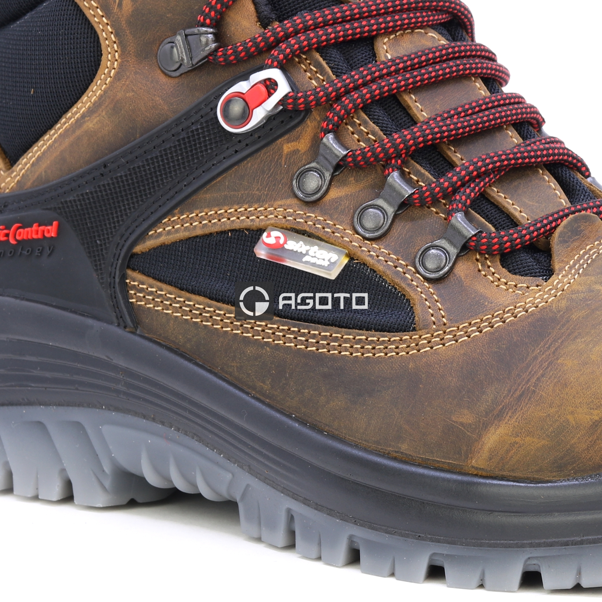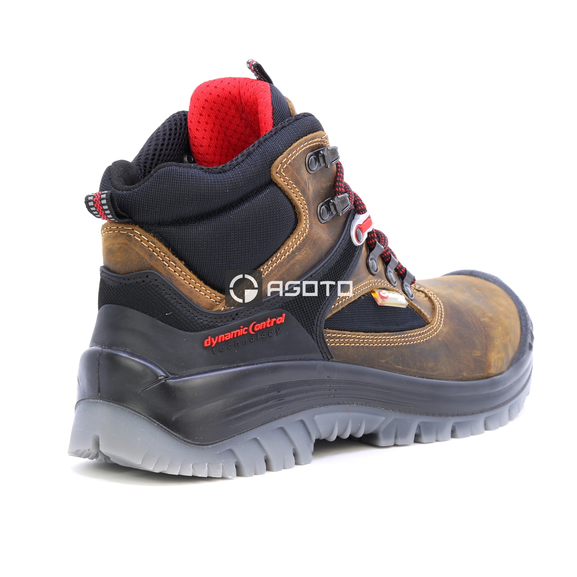 Skórzane buty robocze włoskiej marki Peak o stopniu ochrony S3 zostały zaprojektowane tak, aby sprostać najbardziej rygorystycznym wymaganiom stawianym obuwiu ochronnemu. Czoło buta zawiera kompozytowy podnosek z wkładką kevlarową, zapewniający skuteczną ochronę przed uderzeniami mechanicznymi. Zaletą kompozytowego podnoska jest właściwość zapobiegająca przegrzewaniu się w miesiącach letnich, a jednocześnie utrzymanie komfortu termicznego w chłodne dni. Cholewka buta jest wykonana z wysokiej jakości licowej skóry. Wnętrze obuwia jest wyposażone w oddychającą tkaninę, która umożliwia swobodne oddychanie stopy przy wysokim obciążeniu pracy. Podeszwa jest wykonana z antystatycznego i olejoodpornego materiału. Robocze obuwie Peak sprawi radość klientom poszukującym przede wszystkim jakości i komfortu w obuwiu. Elektrostatyczna obróbka ESD zapewnia ochronę podczas pracy w zakładach z możliwością wystąpienia wyładowań elektrostatycznych. Podeszwa HRO wykonana jest z antystatycznego i olejoodpornego materiału i jest odporna na kontaktowe ciepło. EN ISO 20345 - OBUWIE OCHRONNE.