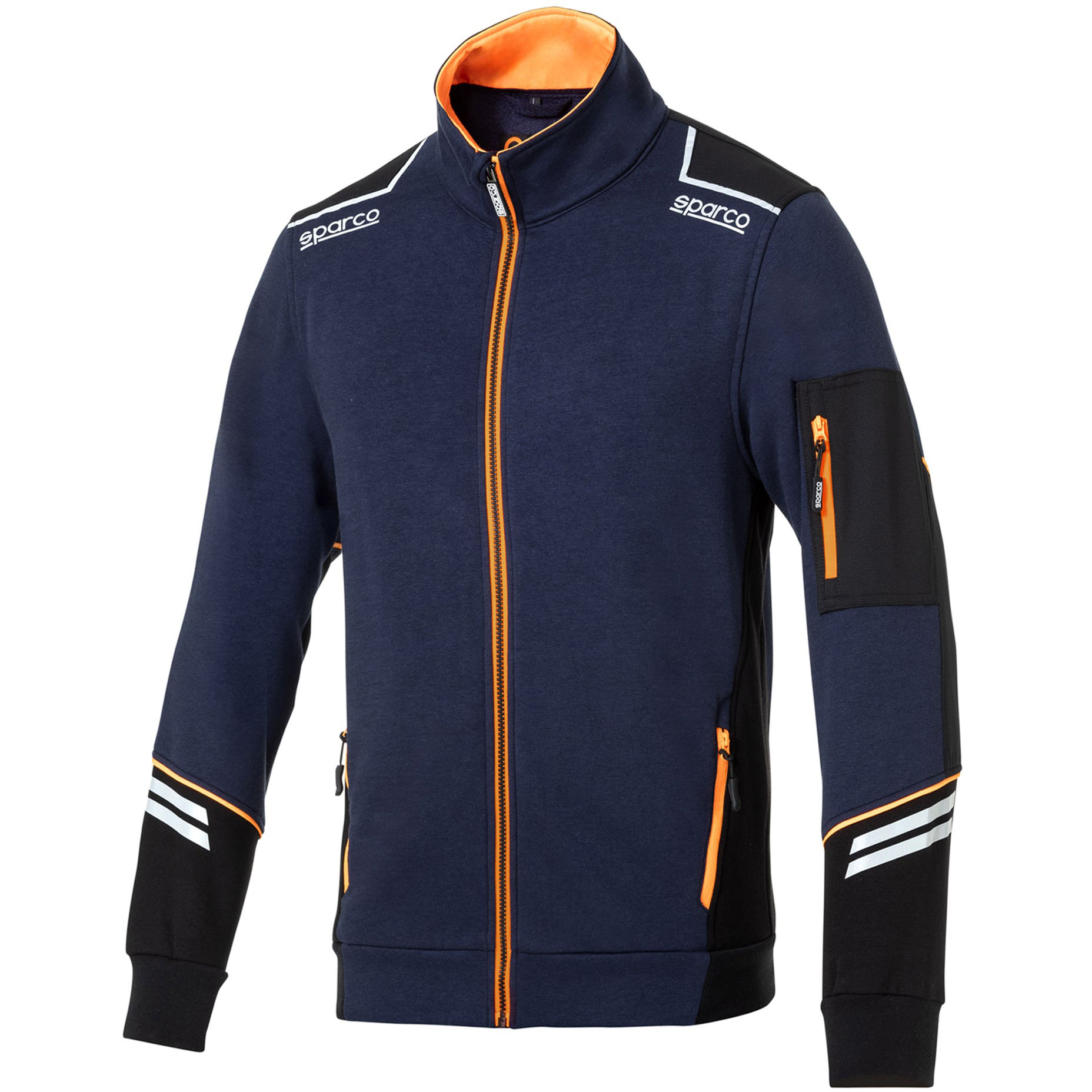 80% bawełna - 20% poliester / 280 g/m2 Odblaskowe logo Sparco, wzmocnione rękawy ze wstawkami zapobiegającymi otarciom i odblaskowe paski o dużej widoczności. Wzmocnione wstawki na ramionach, ultra rozsuwany zamek boczny na kieszeni na piersi.
